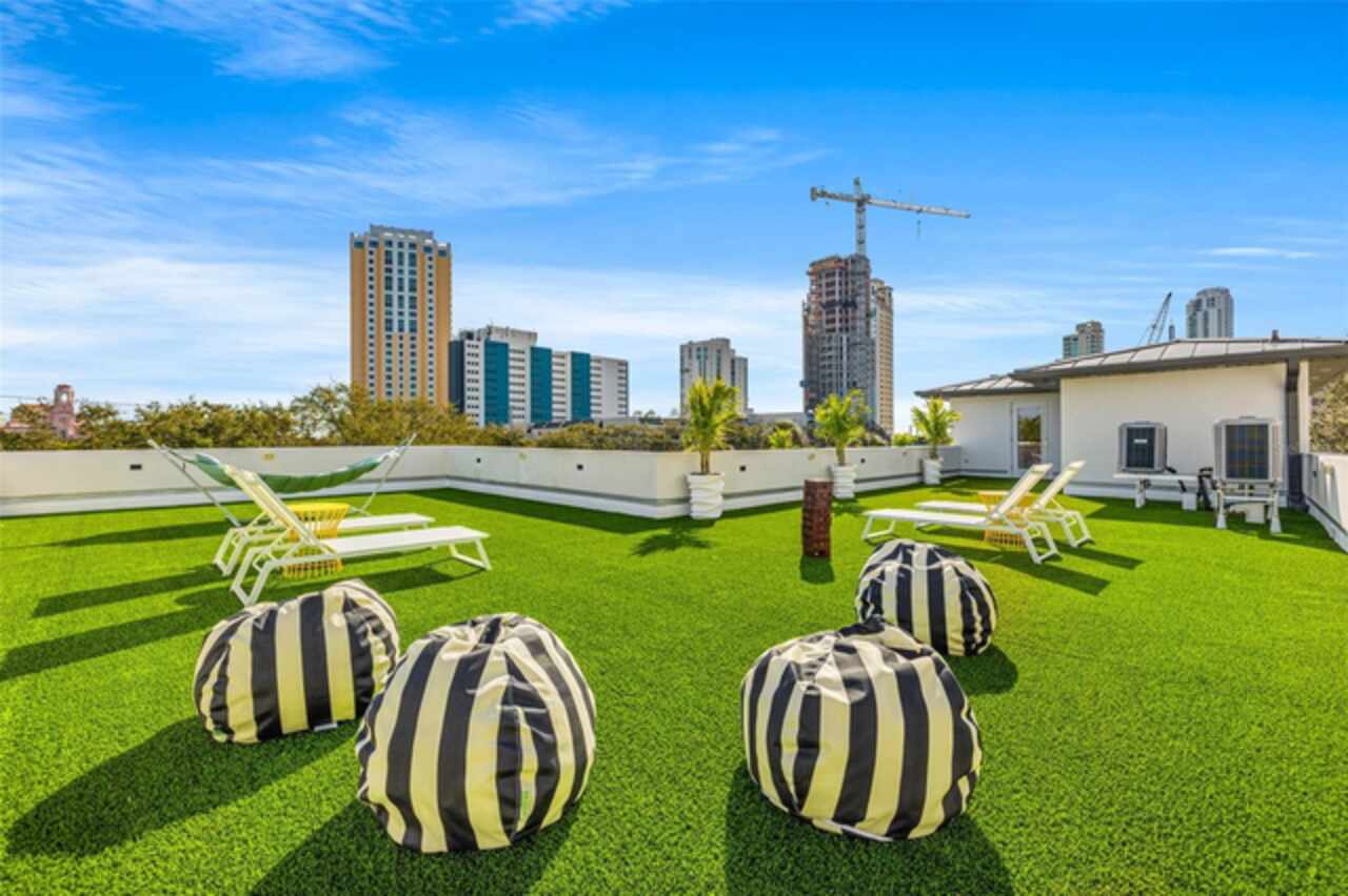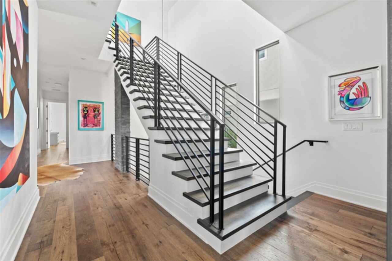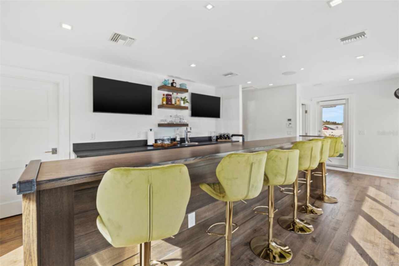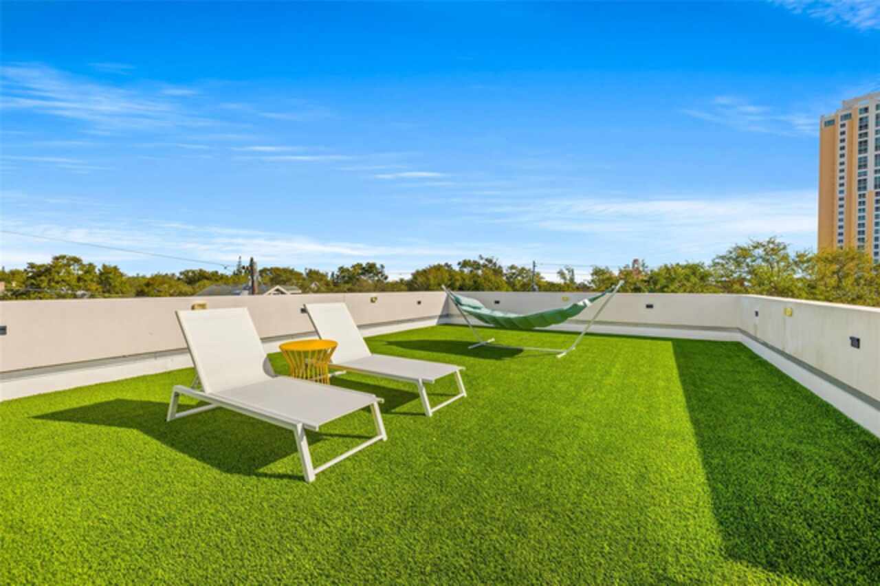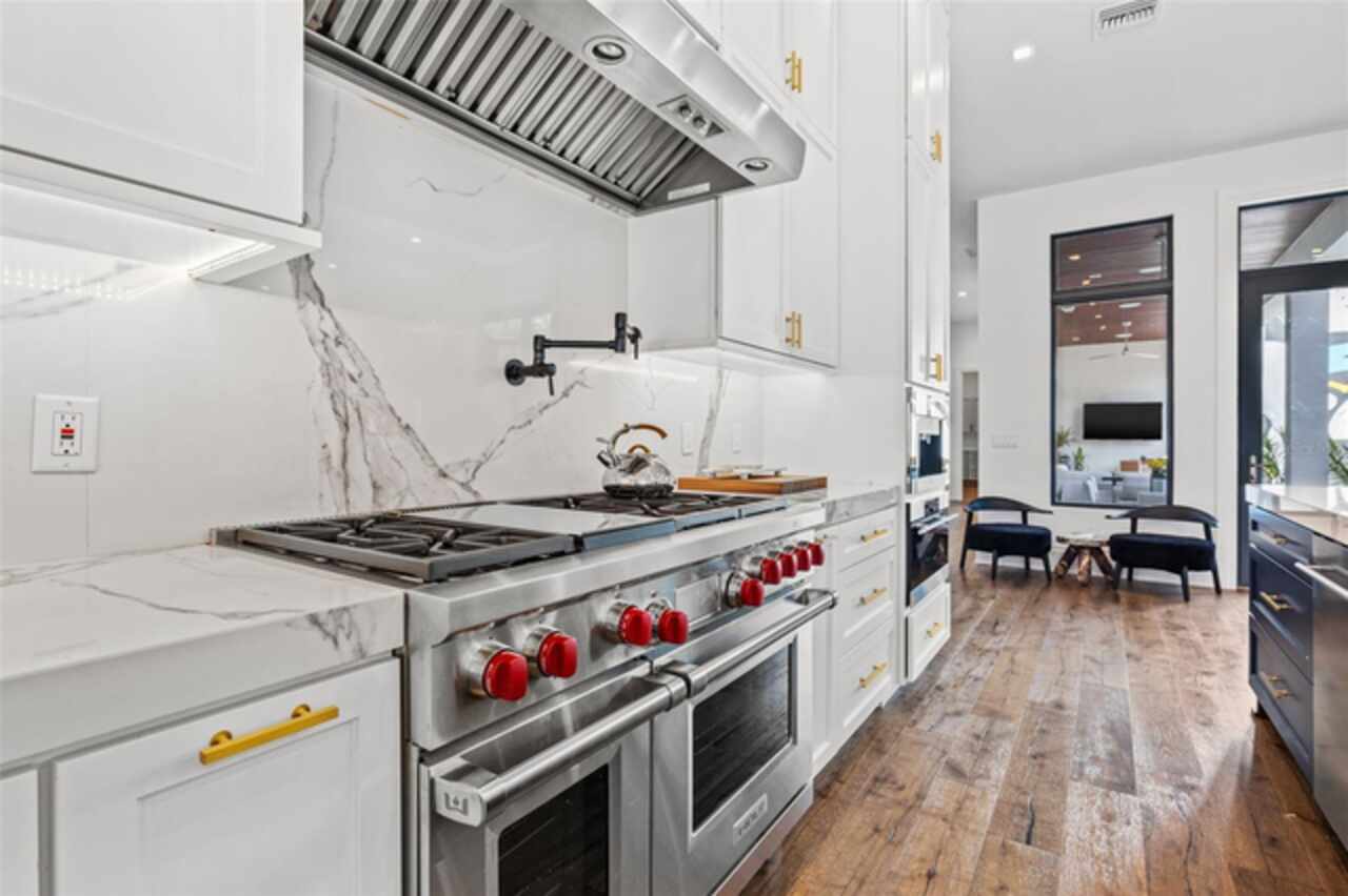 A dazzling masterpiece of engineering and design, this single-family home, completed in 2019, stands as the crown jewel of downtown St. Pete. Both smart and stylish, this spacious home features 6, 617 SqFt of interior magnificence including 5 bedrooms, 7 bathrooms, a 328 bottle wine cellar, office, gym, bonus room & safe room, complemented by an additional 2, 500 SqFt of rooftop terrace, presenting an unparalleled fusion of technology, style, & extravagance. As you step through the oversized, custom Jeld-Wen Aurora front door, a world of sophistication unfolds. The clean & contemporary aesthetic of the hand-scraped wood floors, high ceilings, and exquisite finishes serves as a testament to the meticulous craftsmanship that went into this architectural marvel. The kitchen is a culinary & entertaining paradise, featuring an ensemble of top-tier Sub Zero and Wolf appliances & an expansive island that serves as a beautiful focal point. The culinary arsenal includes a Wolf 6-burner gas range, oven, steamer/cooker & warming drawer, and a Sub Zero refrigerator/freezer that elevates storage to an art form. Delight in the convenience of Sub Zero refrigerator drawers discreetly tucked into the kitchen island, ensuring freshness at your fingertips. Porcelain Calcutta countertops & floor-to-ceiling soft-close cabinets, adorned with under-cabinet lighting, exude a modern elegance that seamlessly integrates form and function. The retractable sliding floor-to-ceiling glass wall merges indoor & outdoor spaces, opening to a utopian oasis featuring a saltwater pool and spa, outdoor dining area, and putting greens. Head on up to the rooftop terrace, a sublime sanctuary, that hosts a fire pit, putting green, indoor wet bar & spacious seating area, making it an enchanting spot to hang out and savor panoramic views of the cityscape. The whole house is a tech enthusiast's dream, where cutting-edge innovation integrates into the fabric of daily living. The home is powered by a CONTROL4 full house automation system, orchestrating audio, TVs, select lighting, front door camera/doorbell, and security cameras at the touch of your fingertips. Three CONTROL4 touchscreens & remote access ensure effortless control over every facet of this smart ecosystem. The perimeter is guarded by 12 exterior Hikvision HD dome cameras & 1 garage camera, all feeding into a 4TB camera system hard drive for seamless playback and storage. Immerse yourself in an immersive auditory experience, with 7.1 surround sound in the great room & 5.1 surround sound in the bonus room, both powered by Yamaha receivers. Connectivity is king with 21 hard-wired Cat 6 media outlets, professionally installed TV mount & 7 prewired media outlets strategically placed for potential future TVs. This home also boasts a package network system, including a cloud-managed power distribution unit, Gigabit VPN router, wireless controller, 2 24-port Gigabit switches & 6 WiFi access points throughout the house for a robust and reliable signal. A dedicated entertainment rack and center in the downstairs office closet ensure that all audio-visual elements are seamlessly wired. Ready for any eventuality, the home is generator-ready with both natural gas and electric hookups outside, offering peace of mind in the face of unforeseen circumstances. This home is the next era of living, where the fusion of state-of-the-art smart home technologies meets the elegance of design and style in perfect harmony.