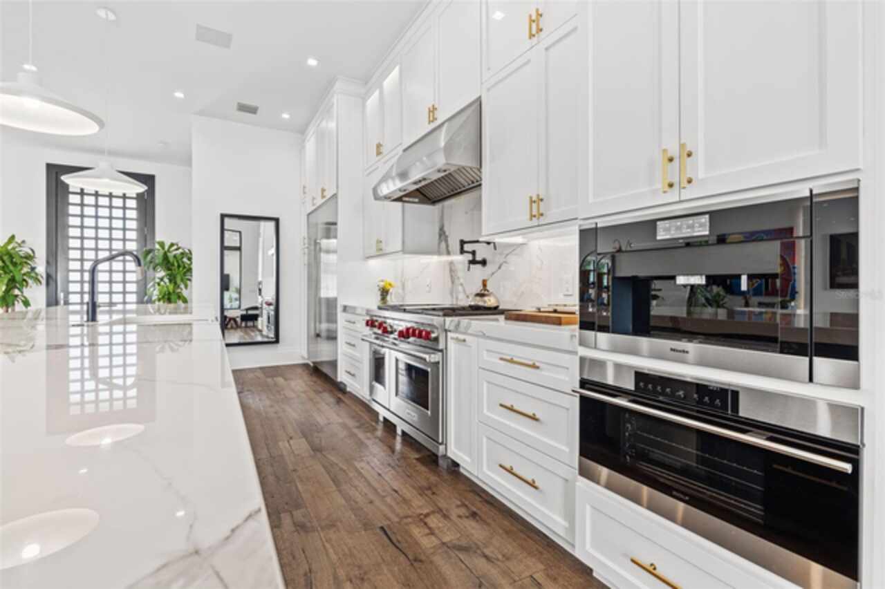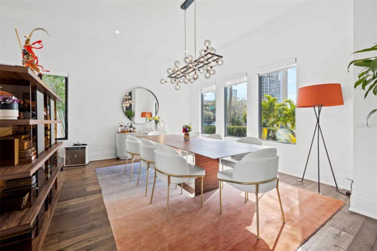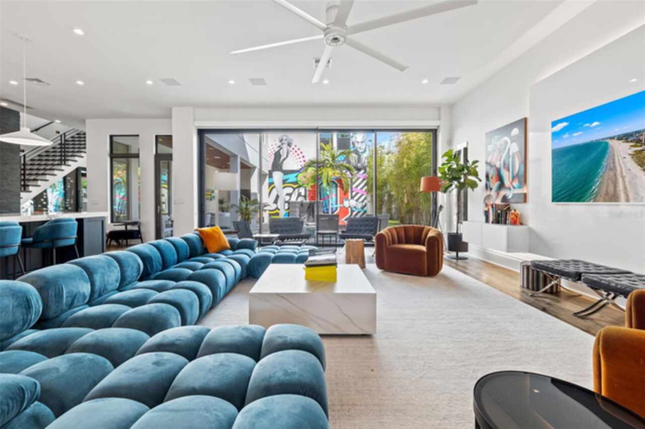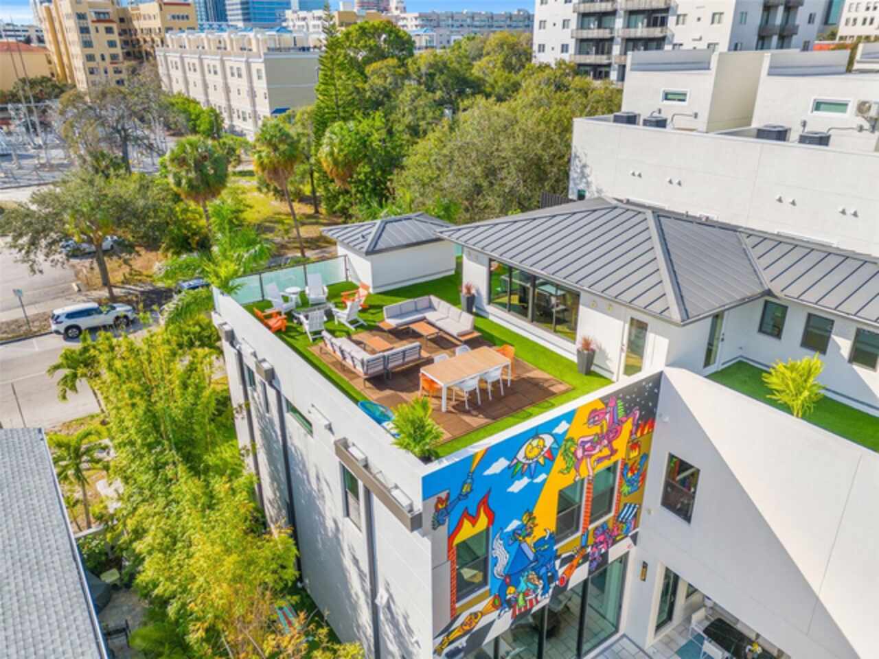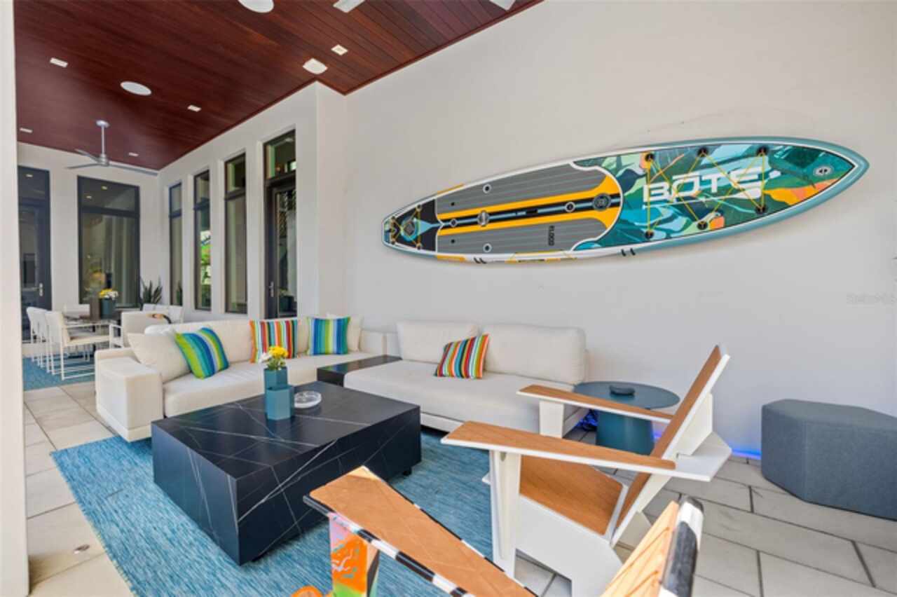 A dazzling masterpiece of engineering and design, this single-family home, completed in 2019, stands as the crown jewel of downtown St. Pete. Both smart and stylish, this spacious home features 6, 617 SqFt of interior magnificence including 5 bedrooms, 7 bathrooms, a 328 bottle wine cellar, office, gym, bonus room & safe room, complemented by an additional 2, 500 SqFt of rooftop terrace, presenting an unparalleled fusion of technology, style, & extravagance. As you step through the oversized, custom Jeld-Wen Aurora front door, a world of sophistication unfolds. The clean & contemporary aesthetic of the hand-scraped wood floors, high ceilings, and exquisite finishes serves as a testament to the meticulous craftsmanship that went into this architectural marvel. The kitchen is a culinary & entertaining paradise, featuring an ensemble of top-tier Sub Zero and Wolf appliances & an expansive island that serves as a beautiful focal point. The culinary arsenal includes a Wolf 6-burner gas range, oven, steamer/cooker & warming drawer, and a Sub Zero refrigerator/freezer that elevates storage to an art form. Delight in the convenience of Sub Zero refrigerator drawers discreetly tucked into the kitchen island, ensuring freshness at your fingertips. Porcelain Calcutta countertops & floor-to-ceiling soft-close cabinets, adorned with under-cabinet lighting, exude a modern elegance that seamlessly integrates form and function. The retractable sliding floor-to-ceiling glass wall merges indoor & outdoor spaces, opening to a utopian oasis featuring a saltwater pool and spa, outdoor dining area, and putting greens. Head on up to the rooftop terrace, a sublime sanctuary, that hosts a fire pit, putting green, indoor wet bar & spacious seating area, making it an enchanting spot to hang out and savor panoramic views of the cityscape. The whole house is a tech enthusiast's dream, where cutting-edge innovation integrates into the fabric of daily living. The home is powered by a CONTROL4 full house automation system, orchestrating audio, TVs, select lighting, front door camera/doorbell, and security cameras at the touch of your fingertips. Three CONTROL4 touchscreens & remote access ensure effortless control over every facet of this smart ecosystem. The perimeter is guarded by 12 exterior Hikvision HD dome cameras & 1 garage camera, all feeding into a 4TB camera system hard drive for seamless playback and storage. Immerse yourself in an immersive auditory experience, with 7.1 surround sound in the great room & 5.1 surround sound in the bonus room, both powered by Yamaha receivers. Connectivity is king with 21 hard-wired Cat 6 media outlets, professionally installed TV mount & 7 prewired media outlets strategically placed for potential future TVs. This home also boasts a package network system, including a cloud-managed power distribution unit, Gigabit VPN router, wireless controller, 2 24-port Gigabit switches & 6 WiFi access points throughout the house for a robust and reliable signal. A dedicated entertainment rack and center in the downstairs office closet ensure that all audio-visual elements are seamlessly wired. Ready for any eventuality, the home is generator-ready with both natural gas and electric hookups outside, offering peace of mind in the face of unforeseen circumstances. This home is the next era of living, where the fusion of state-of-the-art smart home technologies meets the elegance of design and style in perfect harmony.