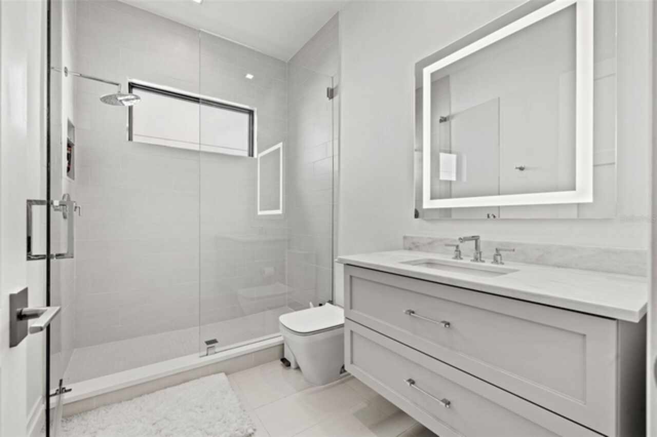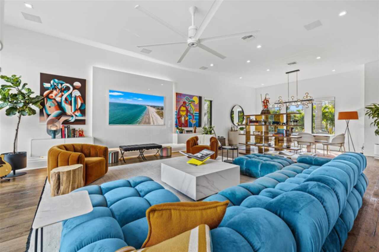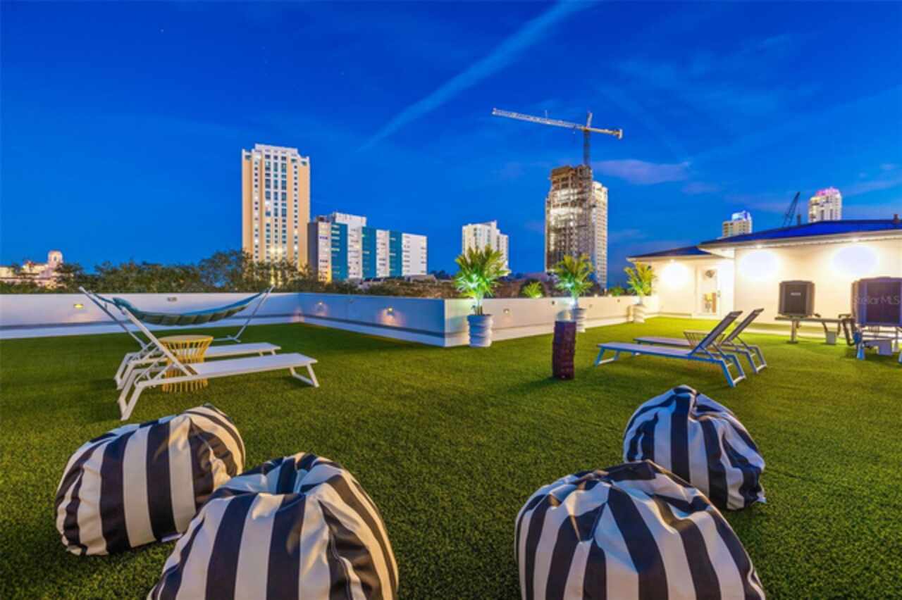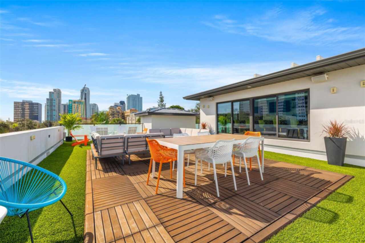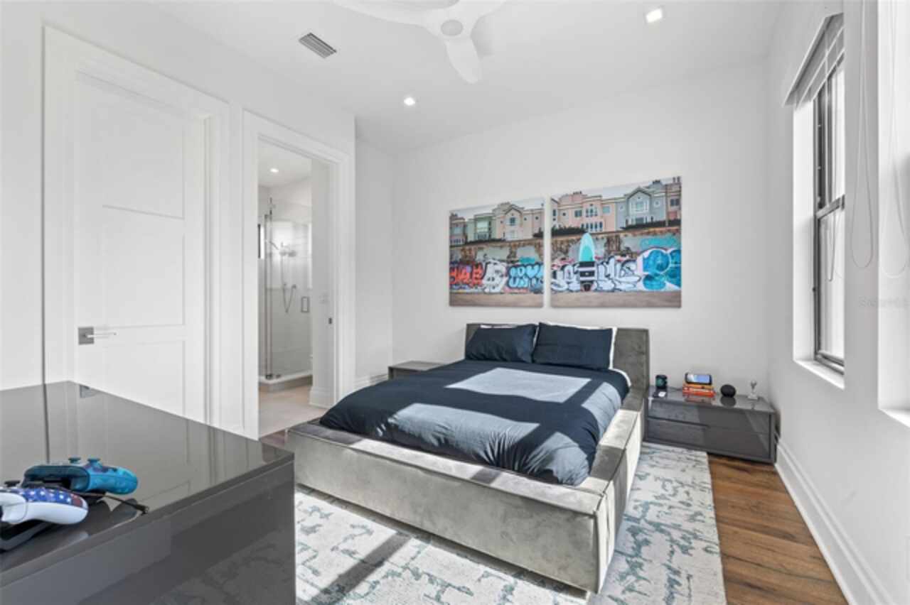 A dazzling masterpiece of engineering and design, this single-family home, completed in 2019, stands as the crown jewel of downtown St. Pete. Both smart and stylish, this spacious home features 6, 617 SqFt of interior magnificence including 5 bedrooms, 7 bathrooms, a 328 bottle wine cellar, office, gym, bonus room & safe room, complemented by an additional 2, 500 SqFt of rooftop terrace, presenting an unparalleled fusion of technology, style, & extravagance. As you step through the oversized, custom Jeld-Wen Aurora front door, a world of sophistication unfolds. The clean & contemporary aesthetic of the hand-scraped wood floors, high ceilings, and exquisite finishes serves as a testament to the meticulous craftsmanship that went into this architectural marvel. The kitchen is a culinary & entertaining paradise, featuring an ensemble of top-tier Sub Zero and Wolf appliances & an expansive island that serves as a beautiful focal point. The culinary arsenal includes a Wolf 6-burner gas range, oven, steamer/cooker & warming drawer, and a Sub Zero refrigerator/freezer that elevates storage to an art form. Delight in the convenience of Sub Zero refrigerator drawers discreetly tucked into the kitchen island, ensuring freshness at your fingertips. Porcelain Calcutta countertops & floor-to-ceiling soft-close cabinets, adorned with under-cabinet lighting, exude a modern elegance that seamlessly integrates form and function. The retractable sliding floor-to-ceiling glass wall merges indoor & outdoor spaces, opening to a utopian oasis featuring a saltwater pool and spa, outdoor dining area, and putting greens. Head on up to the rooftop terrace, a sublime sanctuary, that hosts a fire pit, putting green, indoor wet bar & spacious seating area, making it an enchanting spot to hang out and savor panoramic views of the cityscape. The whole house is a tech enthusiast's dream, where cutting-edge innovation integrates into the fabric of daily living. The home is powered by a CONTROL4 full house automation system, orchestrating audio, TVs, select lighting, front door camera/doorbell, and security cameras at the touch of your fingertips. Three CONTROL4 touchscreens & remote access ensure effortless control over every facet of this smart ecosystem. The perimeter is guarded by 12 exterior Hikvision HD dome cameras & 1 garage camera, all feeding into a 4TB camera system hard drive for seamless playback and storage. Immerse yourself in an immersive auditory experience, with 7.1 surround sound in the great room & 5.1 surround sound in the bonus room, both powered by Yamaha receivers. Connectivity is king with 21 hard-wired Cat 6 media outlets, professionally installed TV mount & 7 prewired media outlets strategically placed for potential future TVs. This home also boasts a package network system, including a cloud-managed power distribution unit, Gigabit VPN router, wireless controller, 2 24-port Gigabit switches & 6 WiFi access points throughout the house for a robust and reliable signal. A dedicated entertainment rack and center in the downstairs office closet ensure that all audio-visual elements are seamlessly wired. Ready for any eventuality, the home is generator-ready with both natural gas and electric hookups outside, offering peace of mind in the face of unforeseen circumstances. This home is the next era of living, where the fusion of state-of-the-art smart home technologies meets the elegance of design and style in perfect harmony.