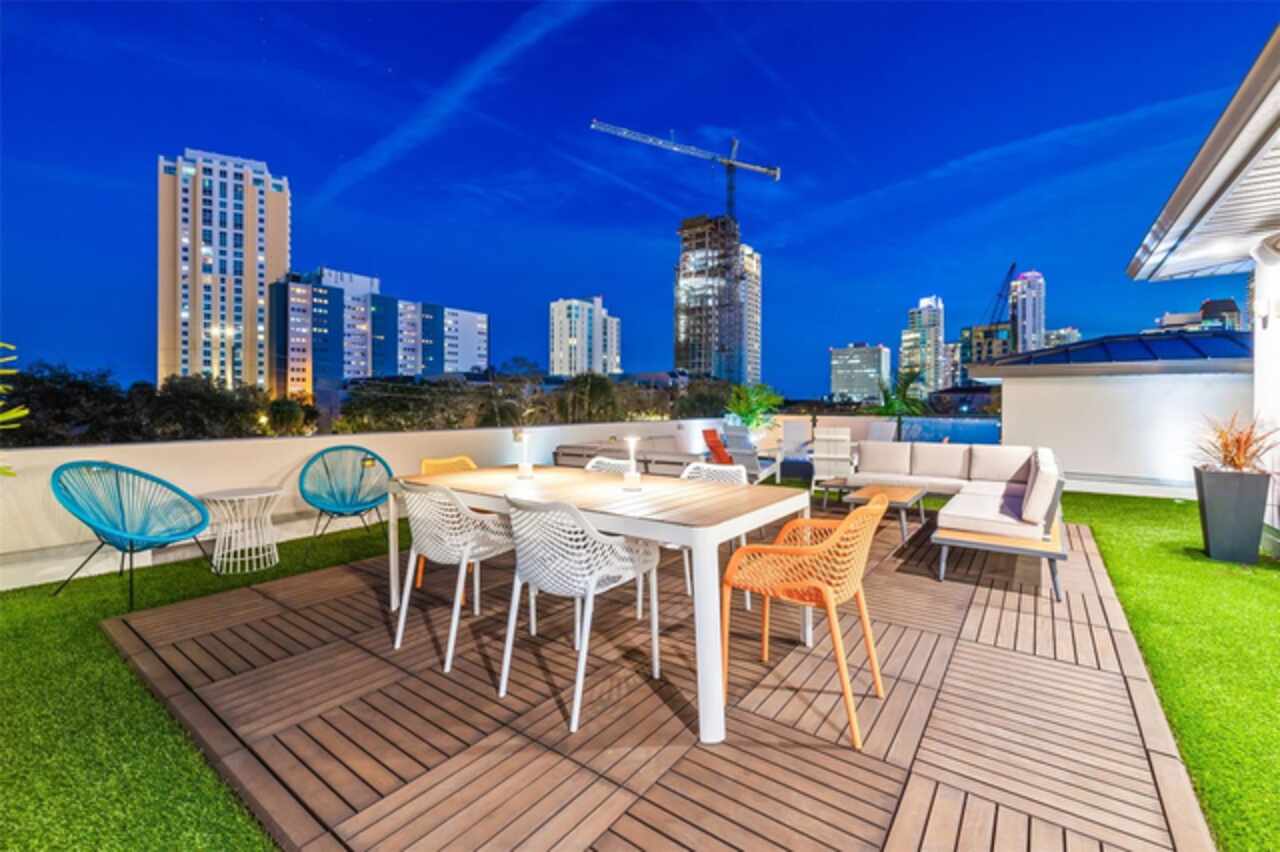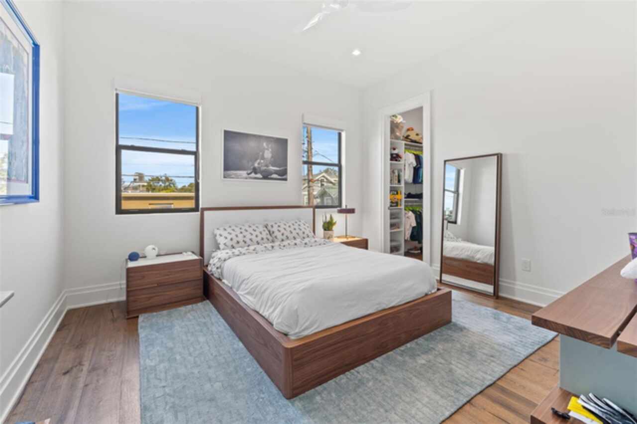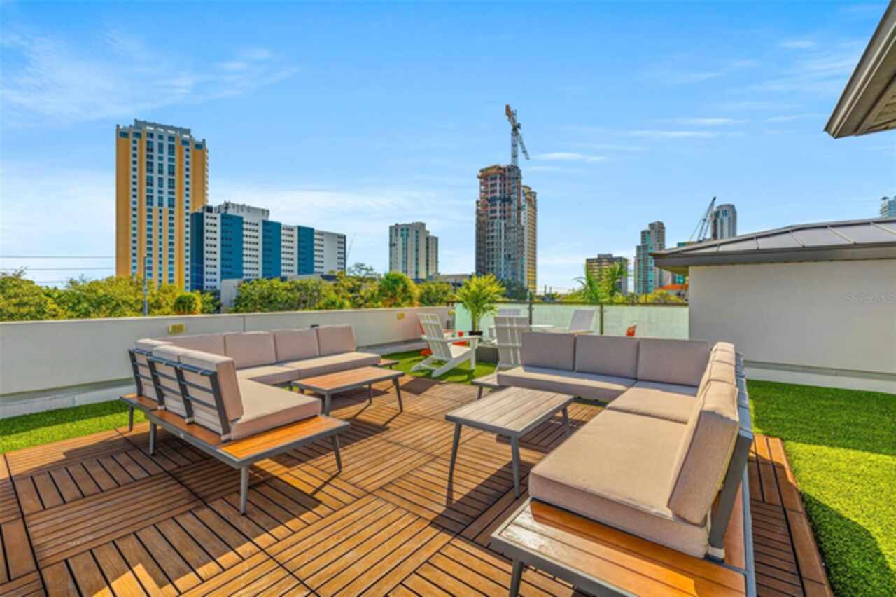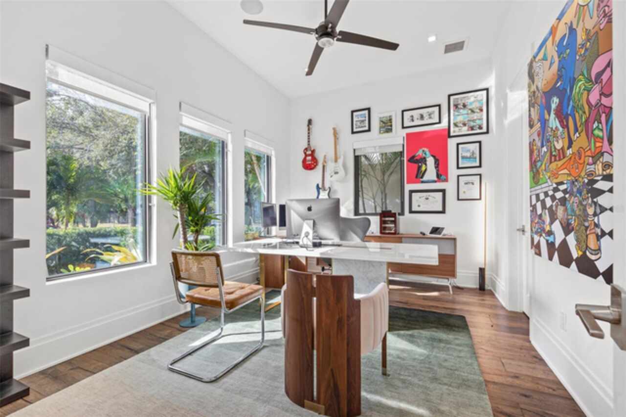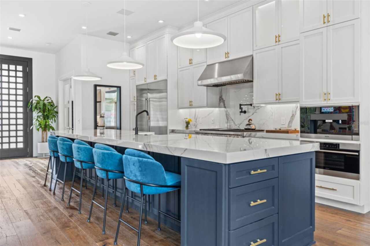 A dazzling masterpiece of engineering and design, this single-family home, completed in 2019, stands as the crown jewel of downtown St. Pete. Both smart and stylish, this spacious home features 6, 617 SqFt of interior magnificence including 5 bedrooms, 7 bathrooms, a 328 bottle wine cellar, office, gym, bonus room & safe room, complemented by an additional 2, 500 SqFt of rooftop terrace, presenting an unparalleled fusion of technology, style, & extravagance. As you step through the oversized, custom Jeld-Wen Aurora front door, a world of sophistication unfolds. The clean & contemporary aesthetic of the hand-scraped wood floors, high ceilings, and exquisite finishes serves as a testament to the meticulous craftsmanship that went into this architectural marvel. The kitchen is a culinary & entertaining paradise, featuring an ensemble of top-tier Sub Zero and Wolf appliances & an expansive island that serves as a beautiful focal point. The culinary arsenal includes a Wolf 6-burner gas range, oven, steamer/cooker & warming drawer, and a Sub Zero refrigerator/freezer that elevates storage to an art form. Delight in the convenience of Sub Zero refrigerator drawers discreetly tucked into the kitchen island, ensuring freshness at your fingertips. Porcelain Calcutta countertops & floor-to-ceiling soft-close cabinets, adorned with under-cabinet lighting, exude a modern elegance that seamlessly integrates form and function. The retractable sliding floor-to-ceiling glass wall merges indoor & outdoor spaces, opening to a utopian oasis featuring a saltwater pool and spa, outdoor dining area, and putting greens. Head on up to the rooftop terrace, a sublime sanctuary, that hosts a fire pit, putting green, indoor wet bar & spacious seating area, making it an enchanting spot to hang out and savor panoramic views of the cityscape. The whole house is a tech enthusiast's dream, where cutting-edge innovation integrates into the fabric of daily living. The home is powered by a CONTROL4 full house automation system, orchestrating audio, TVs, select lighting, front door camera/doorbell, and security cameras at the touch of your fingertips. Three CONTROL4 touchscreens & remote access ensure effortless control over every facet of this smart ecosystem. The perimeter is guarded by 12 exterior Hikvision HD dome cameras & 1 garage camera, all feeding into a 4TB camera system hard drive for seamless playback and storage. Immerse yourself in an immersive auditory experience, with 7.1 surround sound in the great room & 5.1 surround sound in the bonus room, both powered by Yamaha receivers. Connectivity is king with 21 hard-wired Cat 6 media outlets, professionally installed TV mount & 7 prewired media outlets strategically placed for potential future TVs. This home also boasts a package network system, including a cloud-managed power distribution unit, Gigabit VPN router, wireless controller, 2 24-port Gigabit switches & 6 WiFi access points throughout the house for a robust and reliable signal. A dedicated entertainment rack and center in the downstairs office closet ensure that all audio-visual elements are seamlessly wired. Ready for any eventuality, the home is generator-ready with both natural gas and electric hookups outside, offering peace of mind in the face of unforeseen circumstances. This home is the next era of living, where the fusion of state-of-the-art smart home technologies meets the elegance of design and style in perfect harmony.