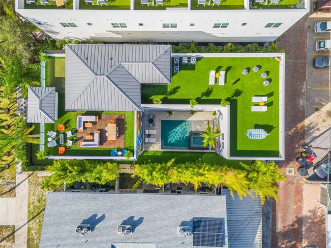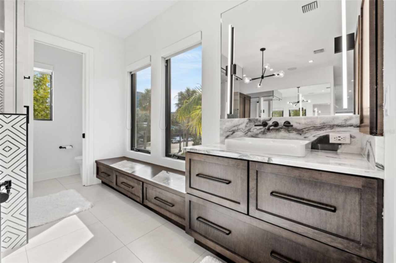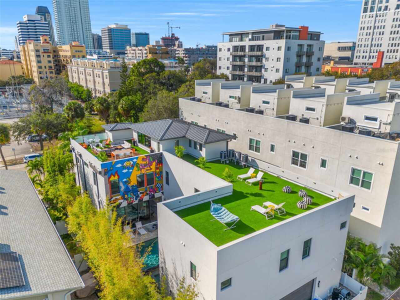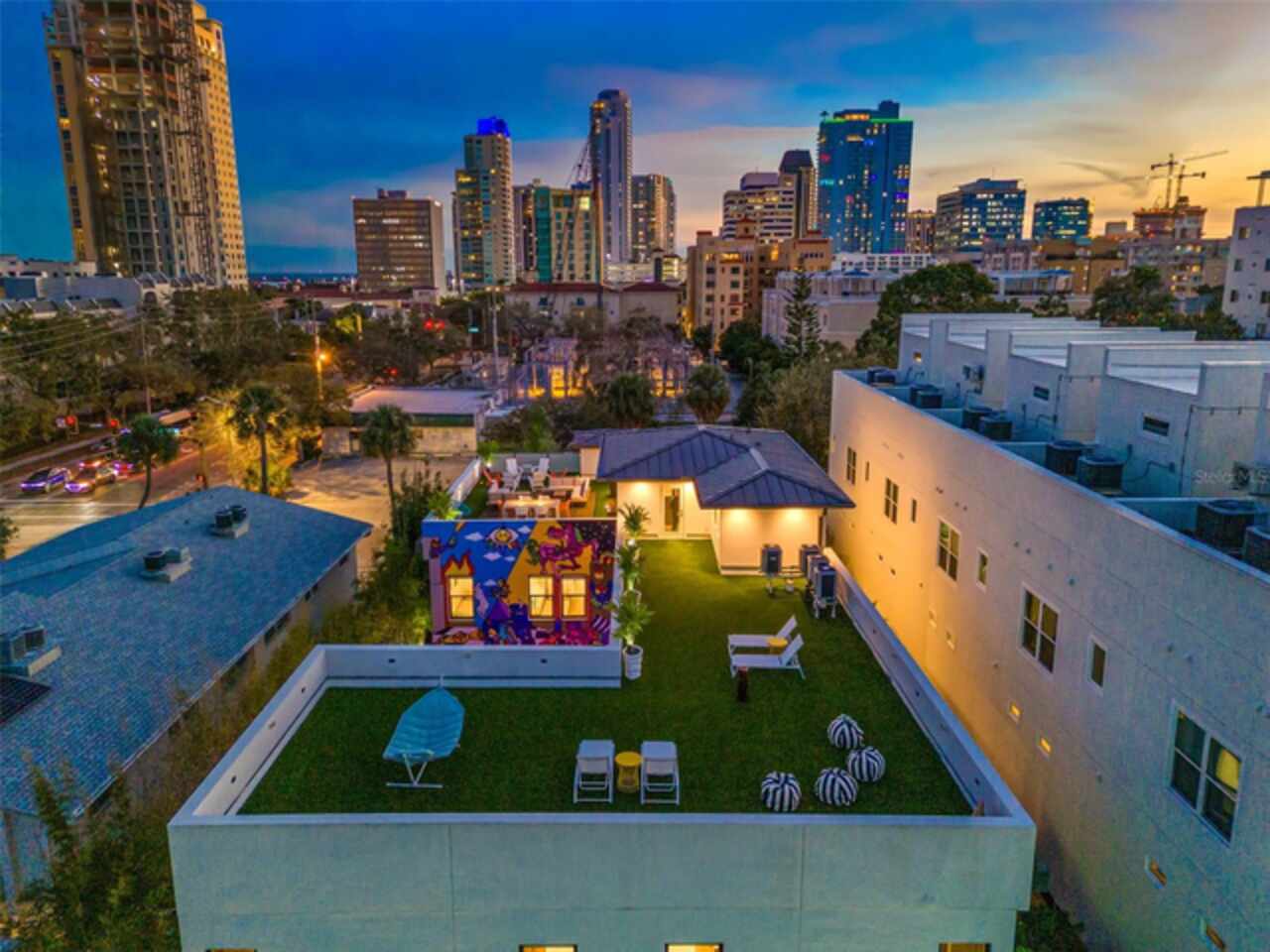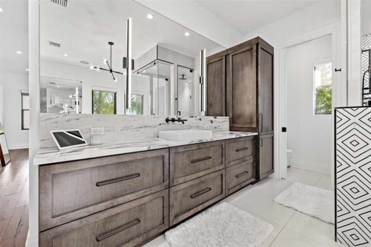 A dazzling masterpiece of engineering and design, this single-family home, completed in 2019, stands as the crown jewel of downtown St. Pete. Both smart and stylish, this spacious home features 6, 617 SqFt of interior magnificence including 5 bedrooms, 7 bathrooms, a 328 bottle wine cellar, office, gym, bonus room & safe room, complemented by an additional 2, 500 SqFt of rooftop terrace, presenting an unparalleled fusion of technology, style, & extravagance. As you step through the oversized, custom Jeld-Wen Aurora front door, a world of sophistication unfolds. The clean & contemporary aesthetic of the hand-scraped wood floors, high ceilings, and exquisite finishes serves as a testament to the meticulous craftsmanship that went into this architectural marvel. The kitchen is a culinary & entertaining paradise, featuring an ensemble of top-tier Sub Zero and Wolf appliances & an expansive island that serves as a beautiful focal point. The culinary arsenal includes a Wolf 6-burner gas range, oven, steamer/cooker & warming drawer, and a Sub Zero refrigerator/freezer that elevates storage to an art form. Delight in the convenience of Sub Zero refrigerator drawers discreetly tucked into the kitchen island, ensuring freshness at your fingertips. Porcelain Calcutta countertops & floor-to-ceiling soft-close cabinets, adorned with under-cabinet lighting, exude a modern elegance that seamlessly integrates form and function. The retractable sliding floor-to-ceiling glass wall merges indoor & outdoor spaces, opening to a utopian oasis featuring a saltwater pool and spa, outdoor dining area, and putting greens. Head on up to the rooftop terrace, a sublime sanctuary, that hosts a fire pit, putting green, indoor wet bar & spacious seating area, making it an enchanting spot to hang out and savor panoramic views of the cityscape. The whole house is a tech enthusiast's dream, where cutting-edge innovation integrates into the fabric of daily living. The home is powered by a CONTROL4 full house automation system, orchestrating audio, TVs, select lighting, front door camera/doorbell, and security cameras at the touch of your fingertips. Three CONTROL4 touchscreens & remote access ensure effortless control over every facet of this smart ecosystem. The perimeter is guarded by 12 exterior Hikvision HD dome cameras & 1 garage camera, all feeding into a 4TB camera system hard drive for seamless playback and storage. Immerse yourself in an immersive auditory experience, with 7.1 surround sound in the great room & 5.1 surround sound in the bonus room, both powered by Yamaha receivers. Connectivity is king with 21 hard-wired Cat 6 media outlets, professionally installed TV mount & 7 prewired media outlets strategically placed for potential future TVs. This home also boasts a package network system, including a cloud-managed power distribution unit, Gigabit VPN router, wireless controller, 2 24-port Gigabit switches & 6 WiFi access points throughout the house for a robust and reliable signal. A dedicated entertainment rack and center in the downstairs office closet ensure that all audio-visual elements are seamlessly wired. Ready for any eventuality, the home is generator-ready with both natural gas and electric hookups outside, offering peace of mind in the face of unforeseen circumstances. This home is the next era of living, where the fusion of state-of-the-art smart home technologies meets the elegance of design and style in perfect harmony.