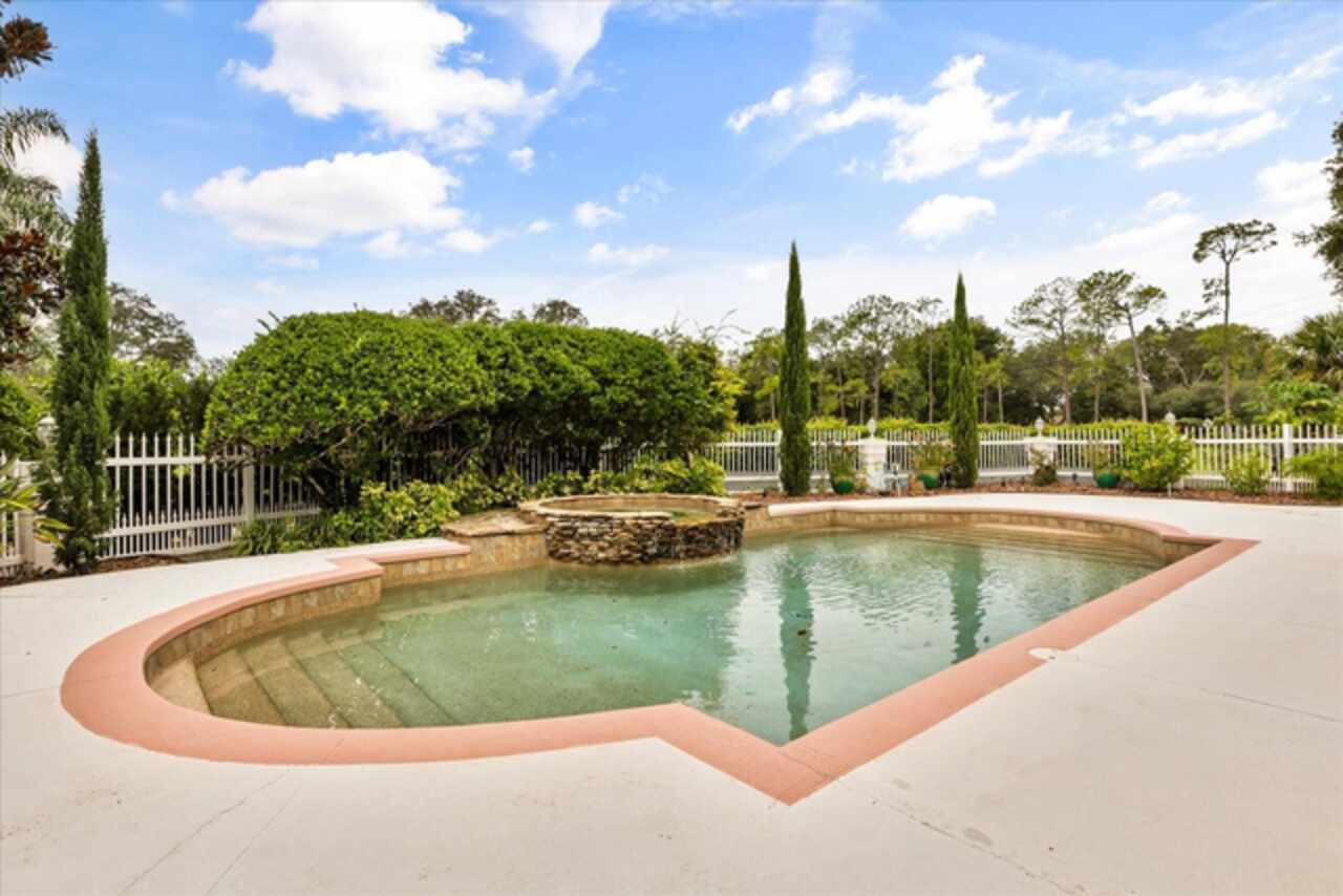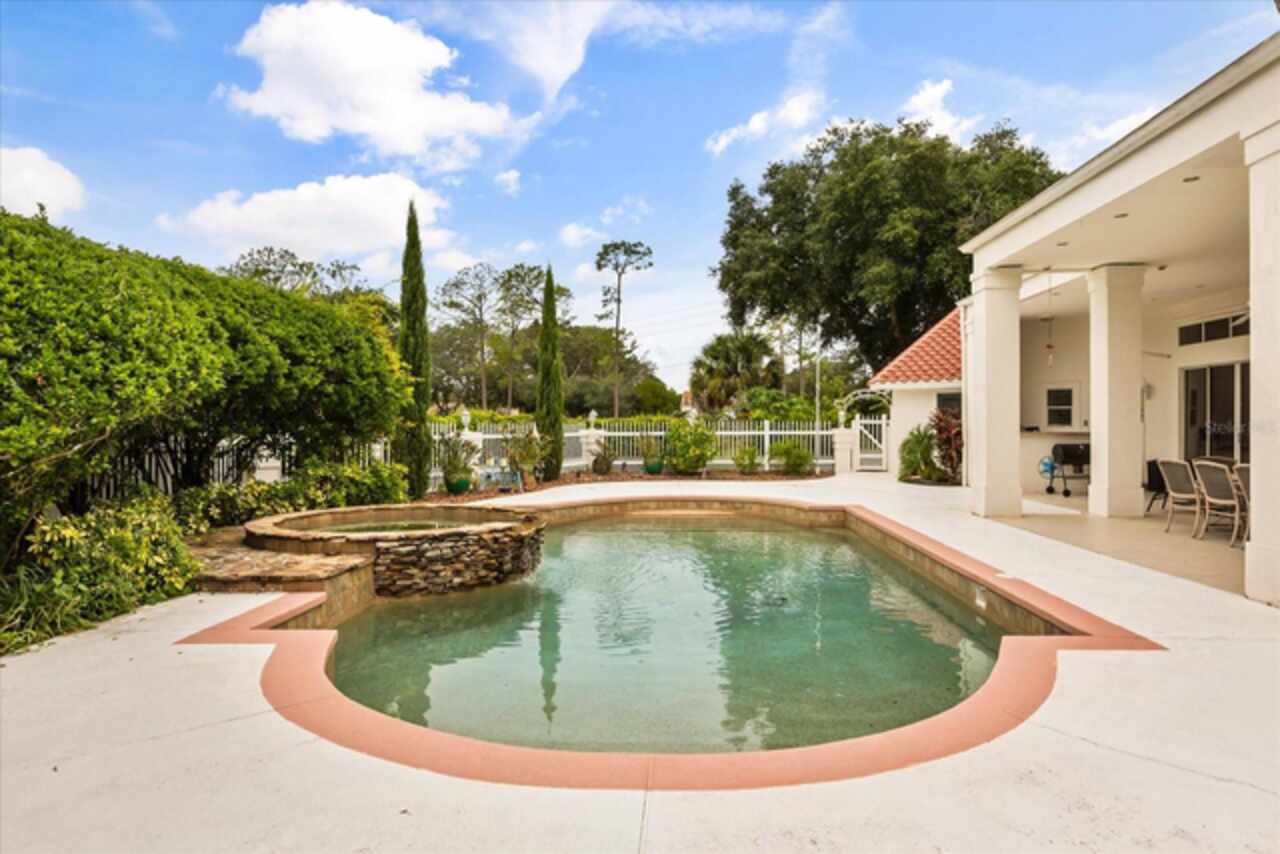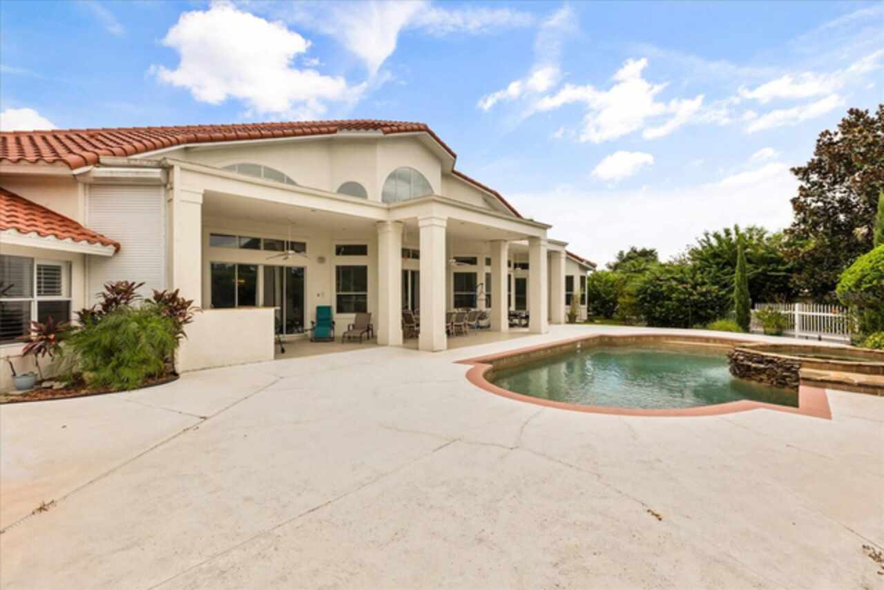 Discover an extraordinary golf-front residence overlooking the 14th green of Sweetwater Country Club, nestled within the exclusive gated community of Sweetwater Greens. This custom executive home, a collaboration between renowned architect John Henry and builder Ken Watkins, blends timeless design with exceptional craftsmanship. Boasting nearly 3, 700 square feet of open, elegant living space, this home is designed for both everyday comfort and unforgettable entertaining. Soaring 30’+ ceilings in the foyer, living room, family room, and kitchen flood the interiors with natural light while showcasing sweeping views of the private pool and lush golf course. Step outside to a solar-heated saltwater pool and ledge rock spa, surrounded by tranquil water features including a marble entry fountain and a dramatic river fountain at the drive. Inside, the spacious owner’s suite offers a private sitting room, vaulted ceilings, a cozy gas fireplace, dual walk-in closets with custom organizers, a spa-like bath with two-person whirlpool tub, oversized shower, and exquisite marble finishes. A thoughtfully designed 2/2 split bedroom layout provides flexibility, whether as a private guest suite, in-law quarters, or teen retreat. Throughout the home, custom details abound: Entegra barrel tile roof, transom windows, double-sided fireplaces, granite counters, marble floors, arches, columns, Kohler fixtures, Baldwin hardware, and refined millwork. The property’s long private driveway, mature landscaping, and fenced play or pet area ensure peace and privacy. A three-car side-entry garage completes the estate-style appeal. Living here means enjoying one of Central Florida’s premier golf communities, with Sweetwater Country Club recently renovated and conveniently located near shopping, dining, parks, schools, and hospitals. This one-of-a-kind home combines resort-style living with unmatched privacy and architectural beauty — ready to welcome its next discerning owner.