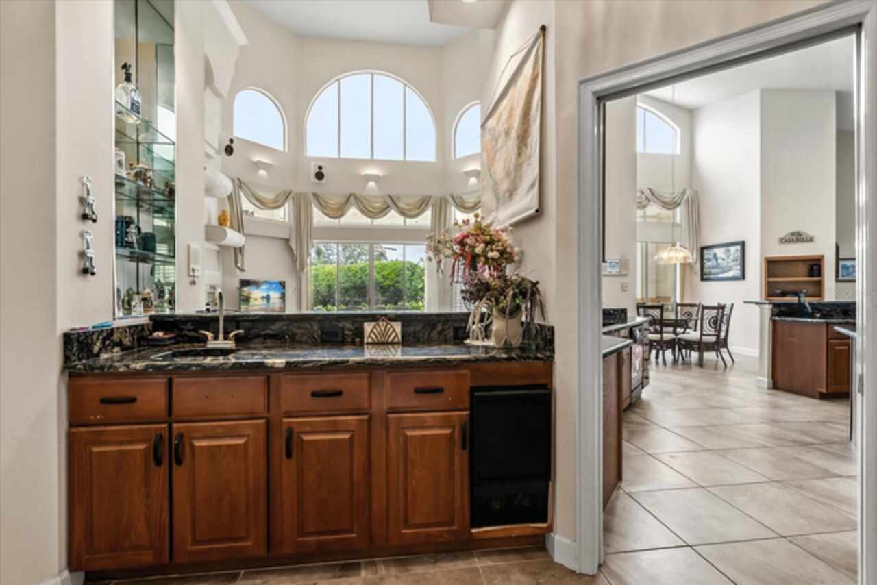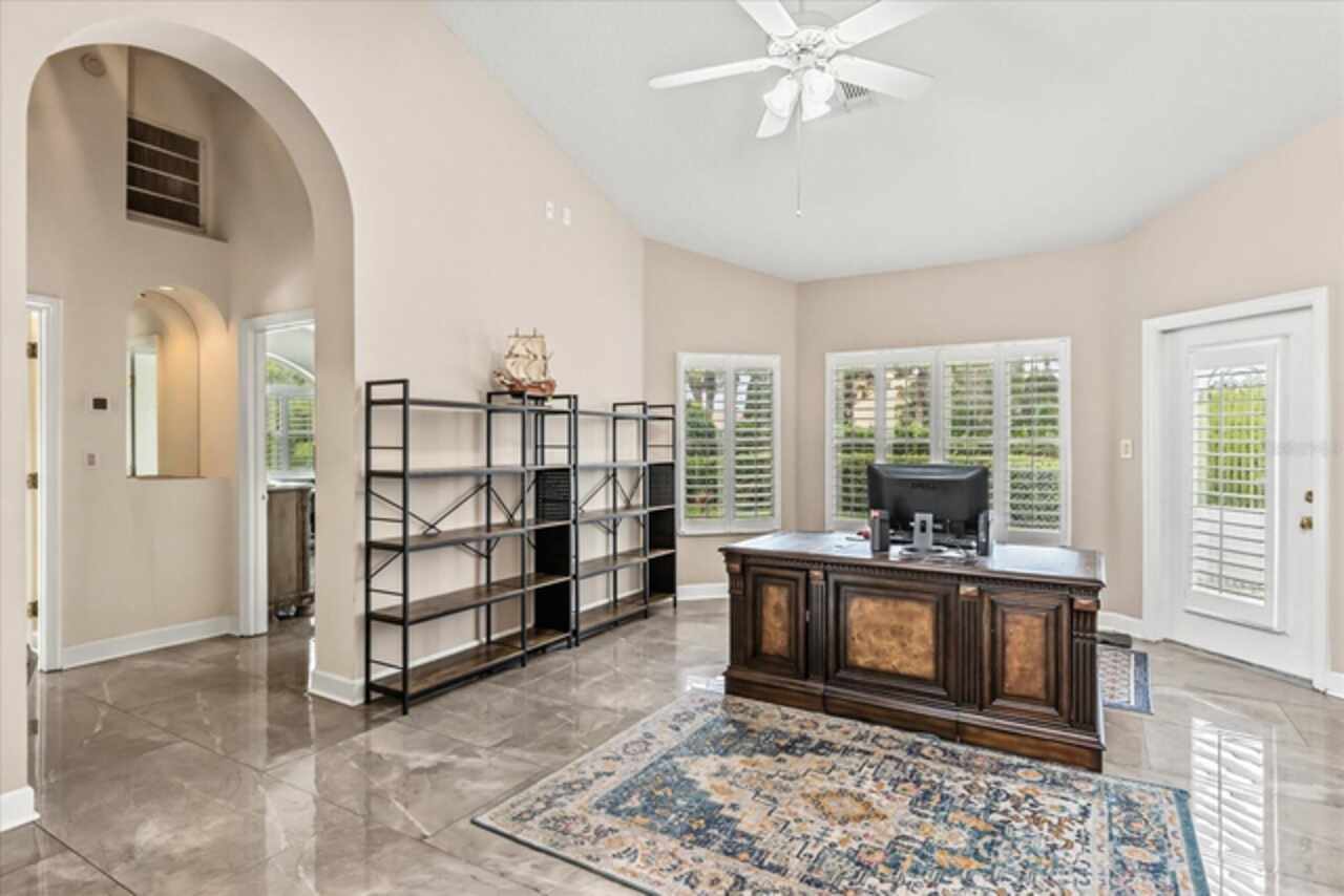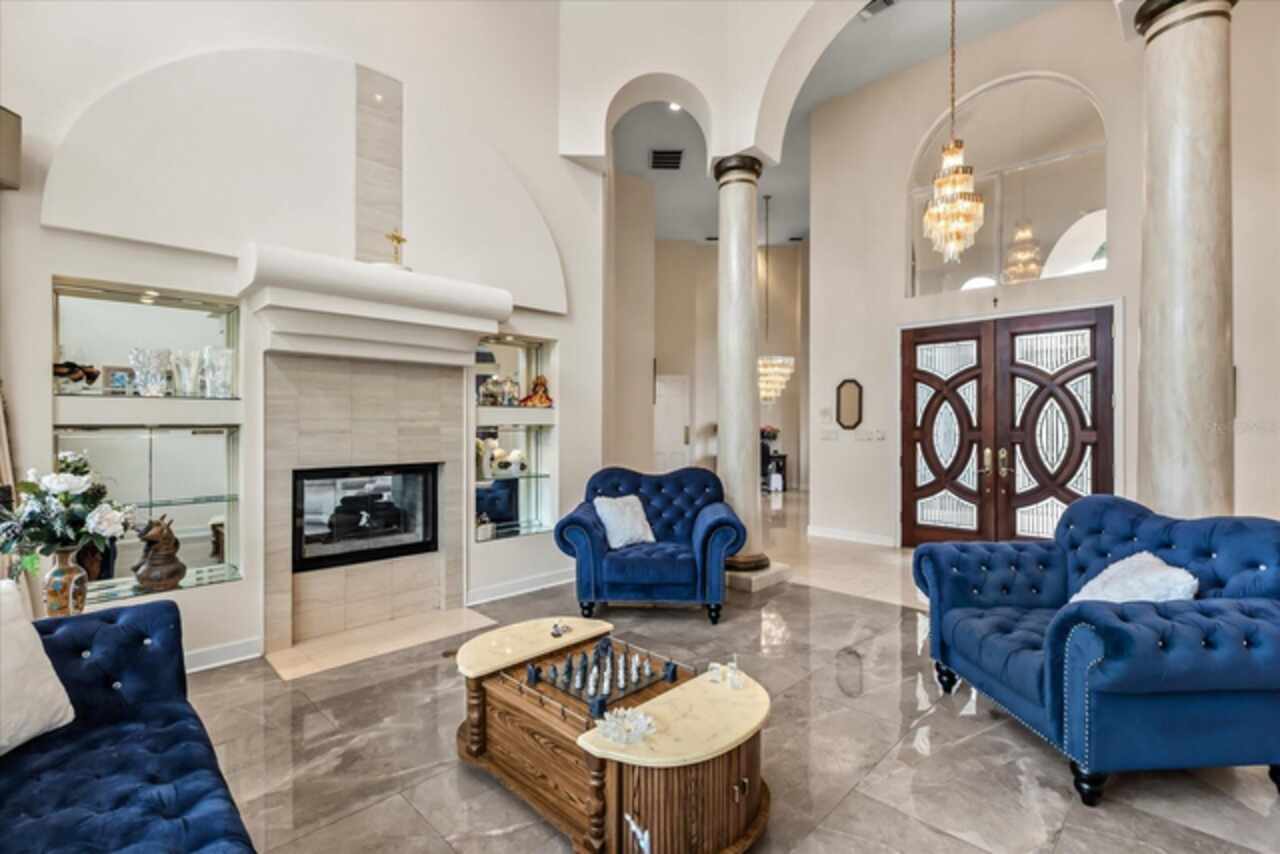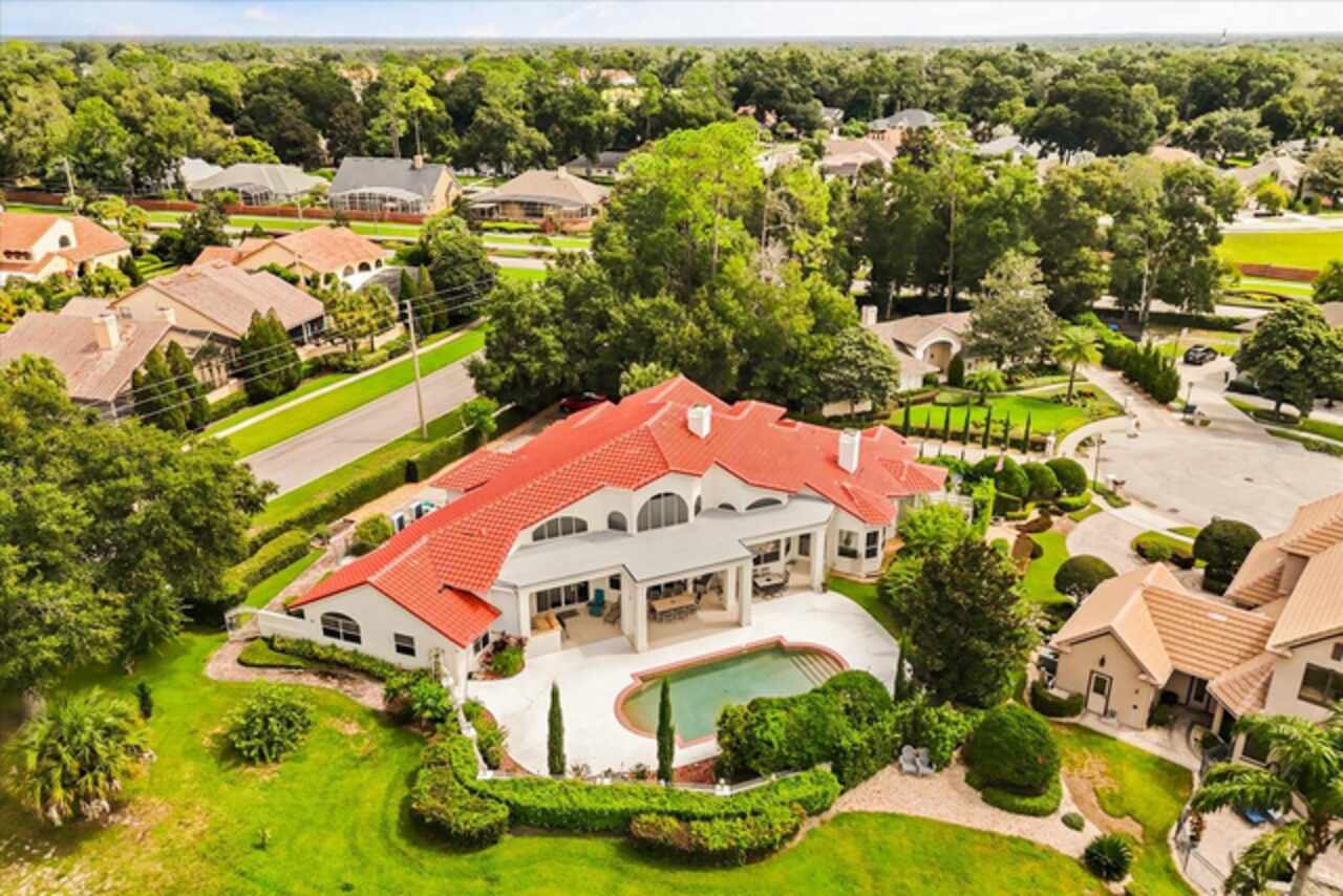 Discover an extraordinary golf-front residence overlooking the 14th green of Sweetwater Country Club, nestled within the exclusive gated community of Sweetwater Greens. This custom executive home, a collaboration between renowned architect John Henry and builder Ken Watkins, blends timeless design with exceptional craftsmanship. Boasting nearly 3, 700 square feet of open, elegant living space, this home is designed for both everyday comfort and unforgettable entertaining. Soaring 30’+ ceilings in the foyer, living room, family room, and kitchen flood the interiors with natural light while showcasing sweeping views of the private pool and lush golf course. Step outside to a solar-heated saltwater pool and ledge rock spa, surrounded by tranquil water features including a marble entry fountain and a dramatic river fountain at the drive. Inside, the spacious owner’s suite offers a private sitting room, vaulted ceilings, a cozy gas fireplace, dual walk-in closets with custom organizers, a spa-like bath with two-person whirlpool tub, oversized shower, and exquisite marble finishes. A thoughtfully designed 2/2 split bedroom layout provides flexibility, whether as a private guest suite, in-law quarters, or teen retreat. Throughout the home, custom details abound: Entegra barrel tile roof, transom windows, double-sided fireplaces, granite counters, marble floors, arches, columns, Kohler fixtures, Baldwin hardware, and refined millwork. The property’s long private driveway, mature landscaping, and fenced play or pet area ensure peace and privacy. A three-car side-entry garage completes the estate-style appeal. Living here means enjoying one of Central Florida’s premier golf communities, with Sweetwater Country Club recently renovated and conveniently located near shopping, dining, parks, schools, and hospitals. This one-of-a-kind home combines resort-style living with unmatched privacy and architectural beauty — ready to welcome its next discerning owner.