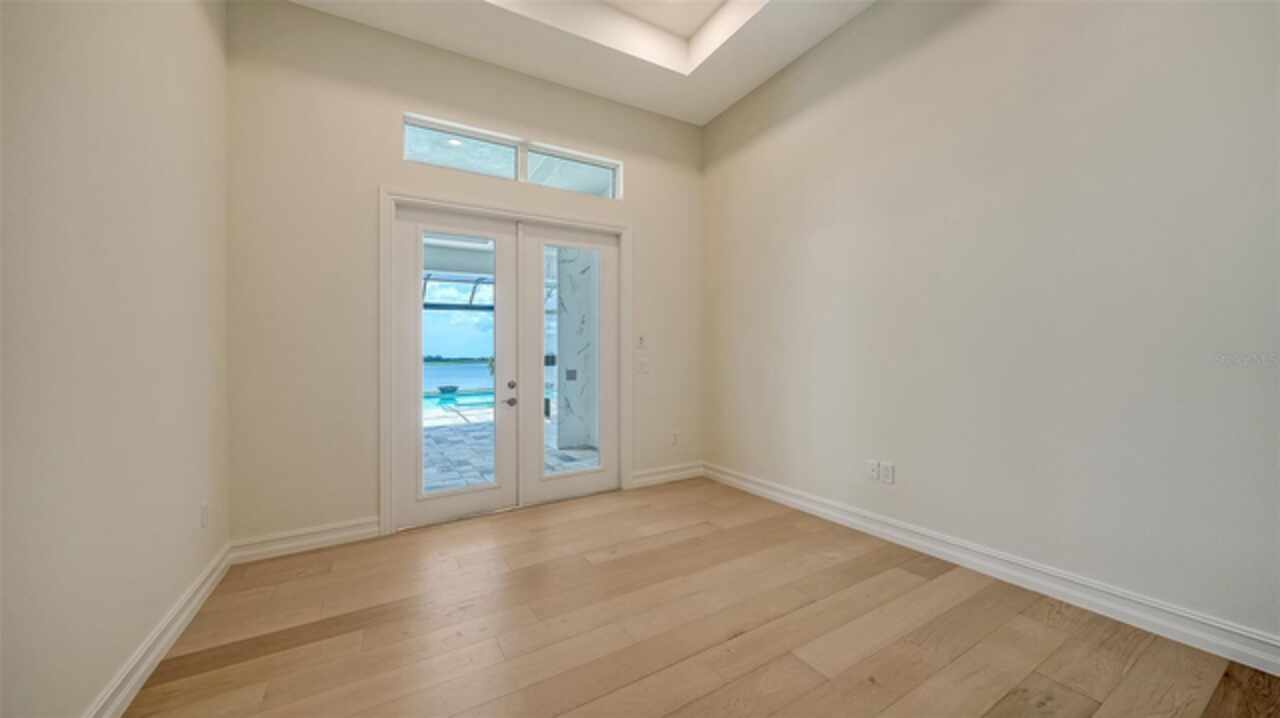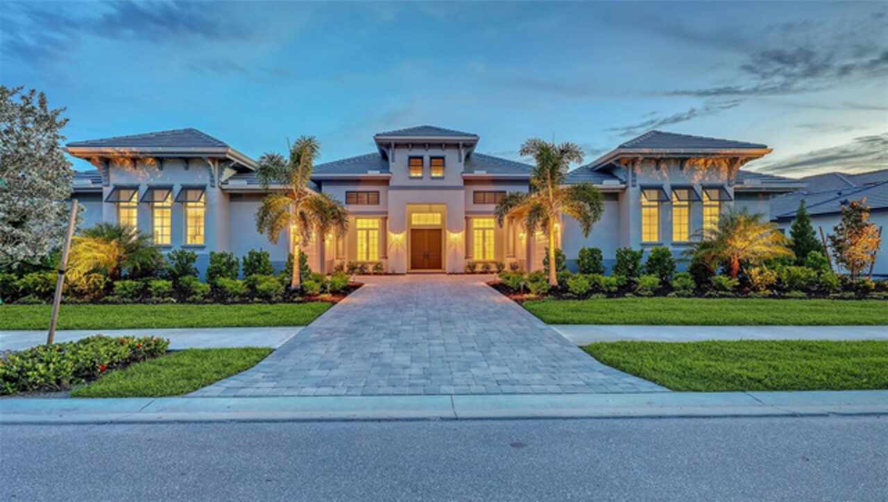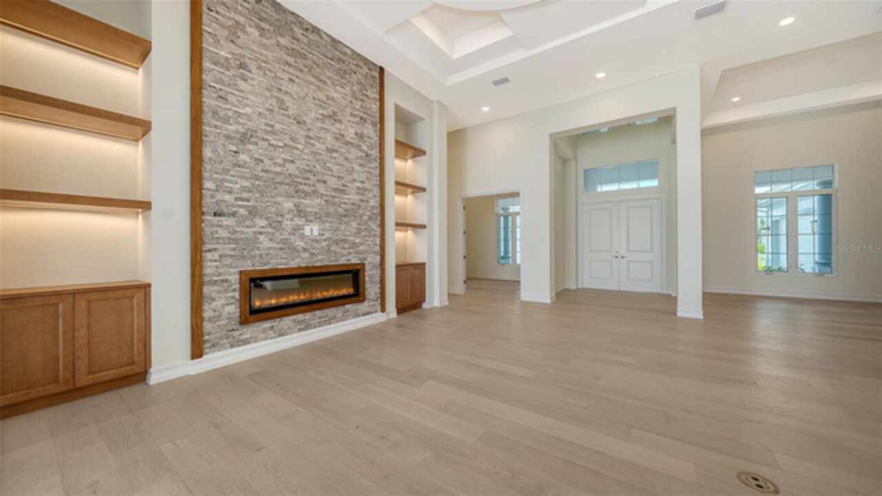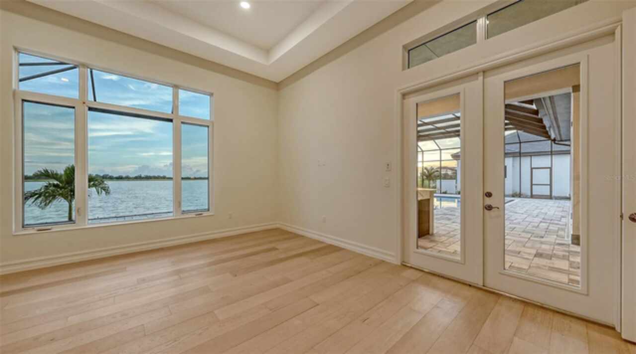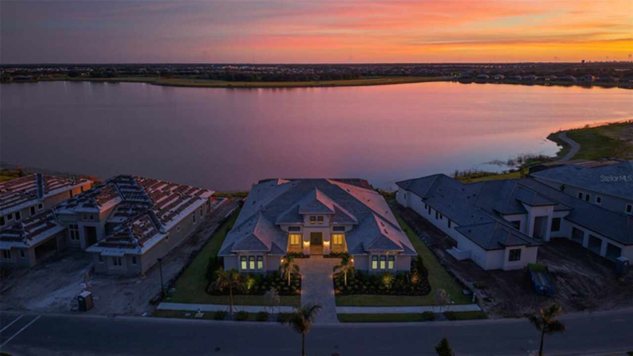 Enjoy spectacular ‘Big Lake’ Views from this Brand-New Luxury Home in Wild Blue at Waterside. Step into refined elegance with this expansive, never-lived-in home—just one month new—boasting over 4, 200 square feet of luxury living on a rarely available oversized homesite. Perfectly positioned to capture panoramic lake views, this 4-bedroom/4.5 Bath home includes a dedicated office and an exercise room, all designed around a wide-open floorplan that effortlessly blends indoor and outdoor living. From the moment you arrive, the home’s impressive curb appeal stands out, featuring a paver driveway, a split 4-car garage, and a grand foyer entry with hardwood flooring that opens to a soaring decorative recessed ceiling with a stunning lakeview. Inside, custom architectural details abound, including a spectacular floor-to-ceiling ledgestone wall with a linear fireplace and custom built-in shelving and cabinets with underlighting that anchors the great room in modern sophistication. The gourmet kitchen is a chef’s dream, featuring a striking combination of stained and painted cabinetry, Skara Brae quartz countertops, a massive island, and top-of-the-line professional paneled appliances. Designed for both everyday comfort and sophisticated entertaining, the expansive great room opens directly to your private resort-style oasis with pocket sliding glass doors. The primary suite occupies its own private wing with two custom walk-in closets and a spa-like bathroom, with split vanities, and offering ultimate luxury and convenience. Step outside to your personal retreat—an entertainer’s paradise, complete with a luxurious pool and spa with sun shelf, a shaded covered lanai with a linear fireplace, and a fully outfitted summer kitchen ideal for alfresco dining and gatherings. Wild Blue delivers an unparalleled lifestyle in the heart of Lakewood Ranch, offering a rich array of world-class amenities. Outdoor enthusiasts will love the scenic walking trails, yoga lawn, and putting green, while sports lovers can take full advantage of the Midway Sports Complex—featuring eight pickleball courts, six tennis courts, and a professional-grade pro shop. The community also includes a dog park and playground, catering to every member of the family. The resort-style clubhouse is currently under construction and will feature concierge service, a private theater, state-of-the-art fitness studio, golf simulator, billiards room, and an expansive pool complex with not one but two resort-style pools. A full-service restaurant and patio bar are coming soon, elevating the social experience even further. Wild Blue is ideally located near The Mall at UTC, Lakewood Ranch Main Street, Waterside Place, and some of the area's top dining and shopping destinations, Wild Blue represents the pinnacle of luxury living in this Lakewood Ranch multi-generational community.
