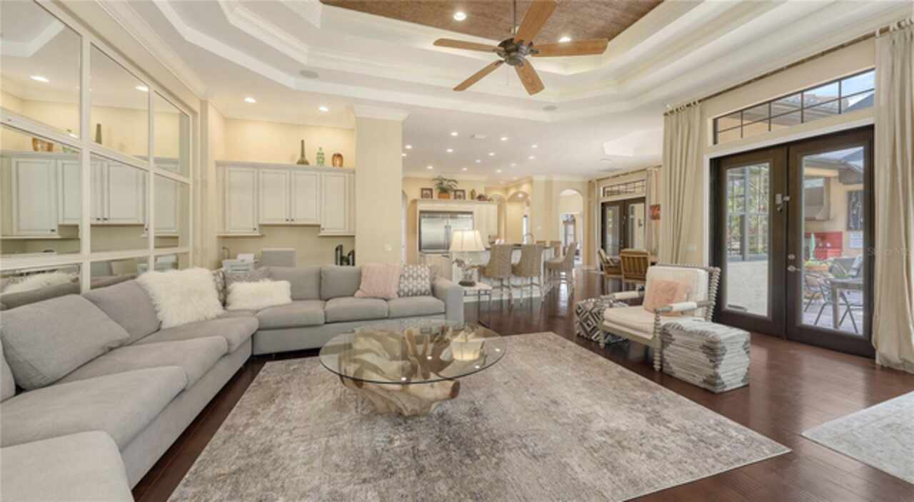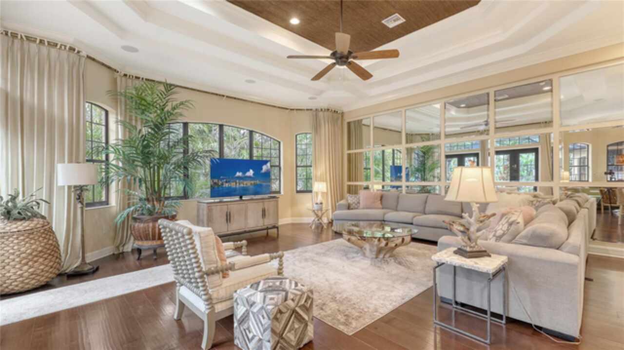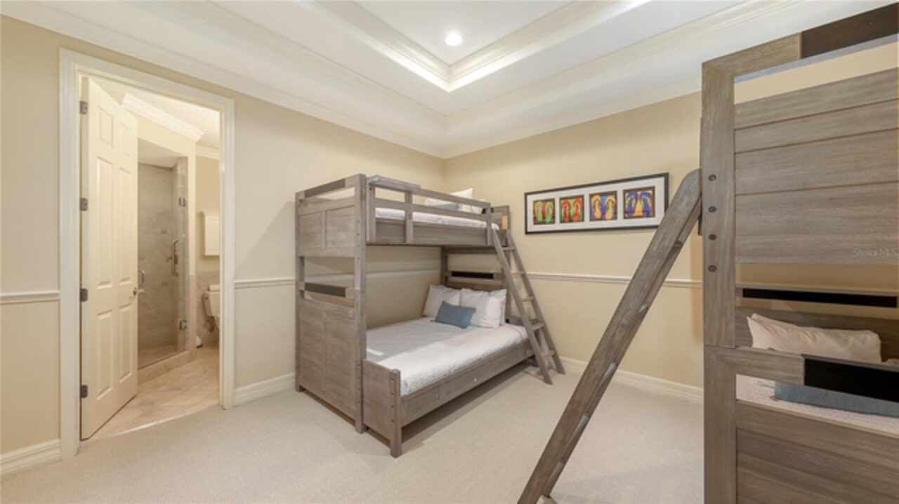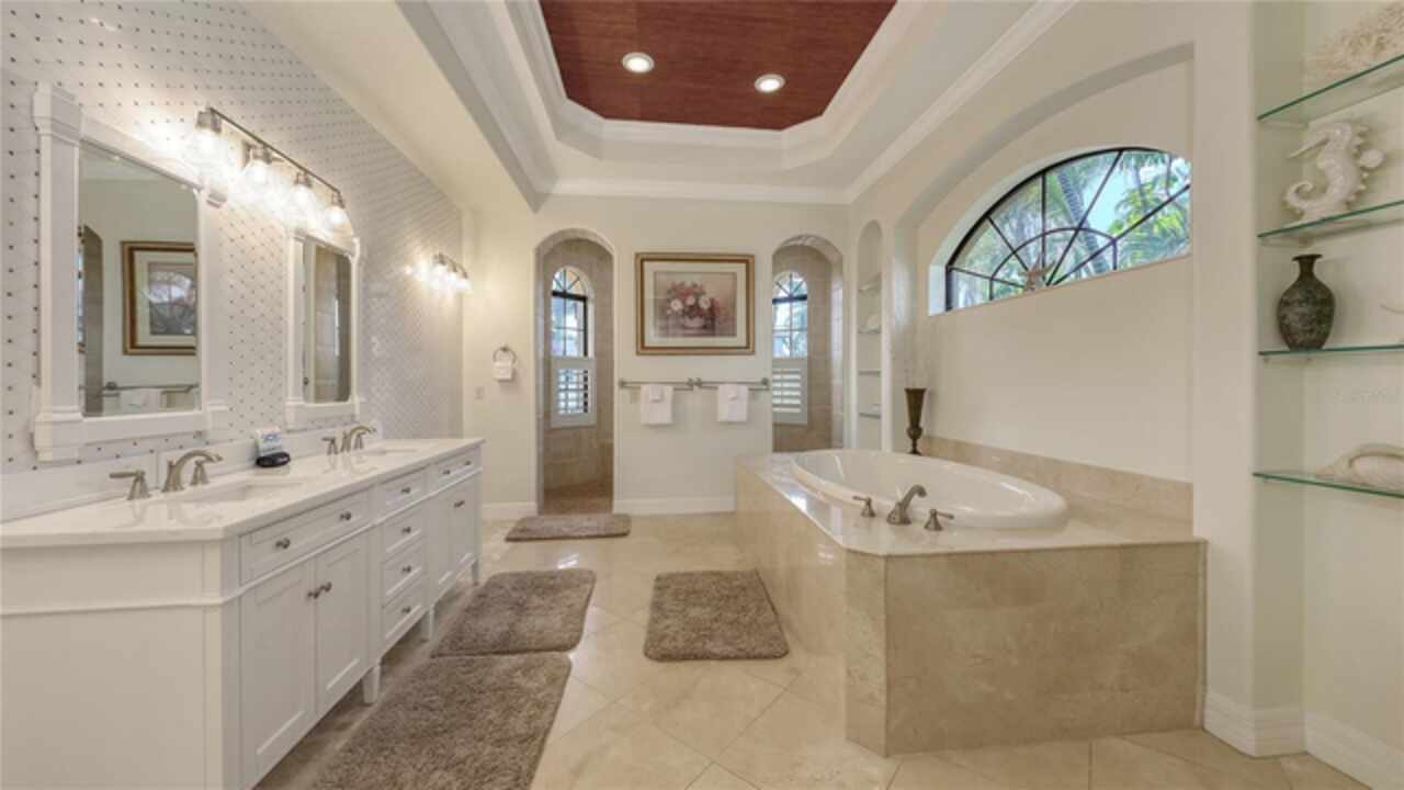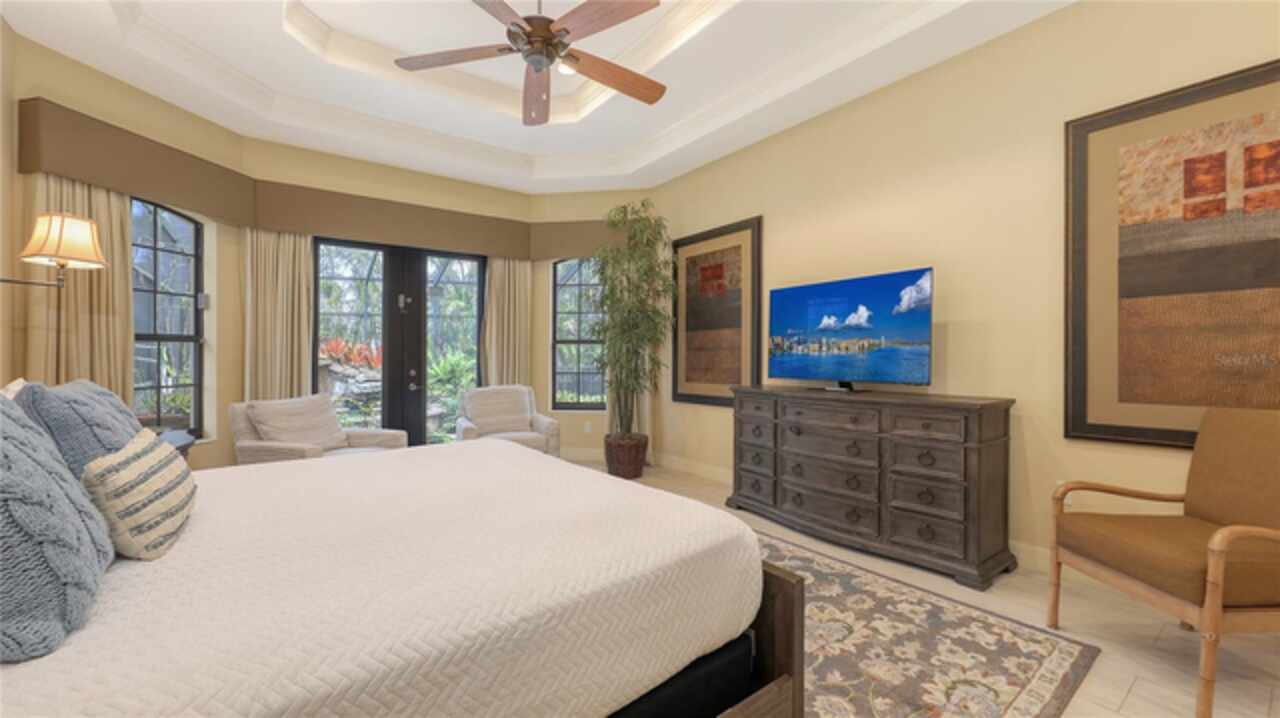 Positioned just one block from the lively pulse of St. Armands Circle and minutes from Lido Beach, this turnkey-furnished home offers a refined coastal lifestyle in Sarasota’s most coveted island community. Built in 2007 by the Peregrine Group, this elevated residence spans over 4, 000 square feet across two levels, combining timeless architecture with modern comforts. A pavered circular drive and lush tropical landscaping create an impressive entrance, leading to a spacious three-car garage. Step through double doors into a grand foyer that opens to a light-filled interior adorned with 12-foot ceilings, wood flooring, crown molding, and thoughtful details throughout. Oversized windows and French doors frame views of the serene outdoors, inviting natural light into every corner of the home. The open-concept floorplan was designed with entertaining in mind. A chef’s kitchen anchors the main living space, complete with high-end stainless-steel appliances, wraparound breakfast bar, granite-topped island, casual dinette, and a well-appointed bar with wine refrigerator. The adjoining formal dining area is perfect for special gatherings, while the expansive living room provides a seamless connection between indoor and outdoor living. Step through French doors to your private outdoor oasis, where a screen-enclosed, south-facing lanai awaits. A covered summer kitchen with gas grill, fireplace, and seating area invites outside dining and relaxing poolside afternoons. The heated saltwater pool features a sunshelf, cascading waterfalls, and a raised spa. The main level primary suite is a tranquil haven with direct patio access, custom walk-in closet, and en-suite bathroom offering dual vanities, soaking tub, and walk-in shower. A private den, currently used as a fifth bedroom, and a spacious laundry room complete the first floor. Upstairs, three generously sized guest suites—each with private baths—provide privacy and flexibility for family and overnight guests. Two suites include access to sunny upper balconies. Beyond the lush grounds of this serene property lies the best of Sarasota living. Explore the world-class restaurants, charming cafés, and stylish boutiques of St. Armands Circle, just steps from your door. Bike to the shores of Lido Beach or venture a little farther to Longboat Key. Enjoy proximity to downtown Sarasota’s vibrant arts scene, theaters, and marina, completing the picture of an unmatched coastal lifestyle. This is more than a home—it’s a destination.