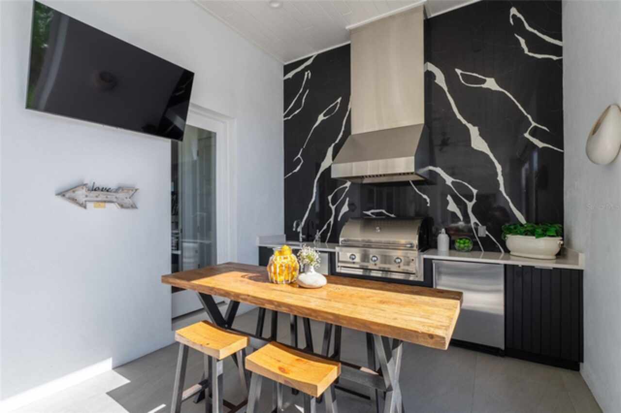 Balcony, Lighting, Outdoor Grill, Outdoor Kitchen, Rain Gutters, Sidewalk, Sliding Doors