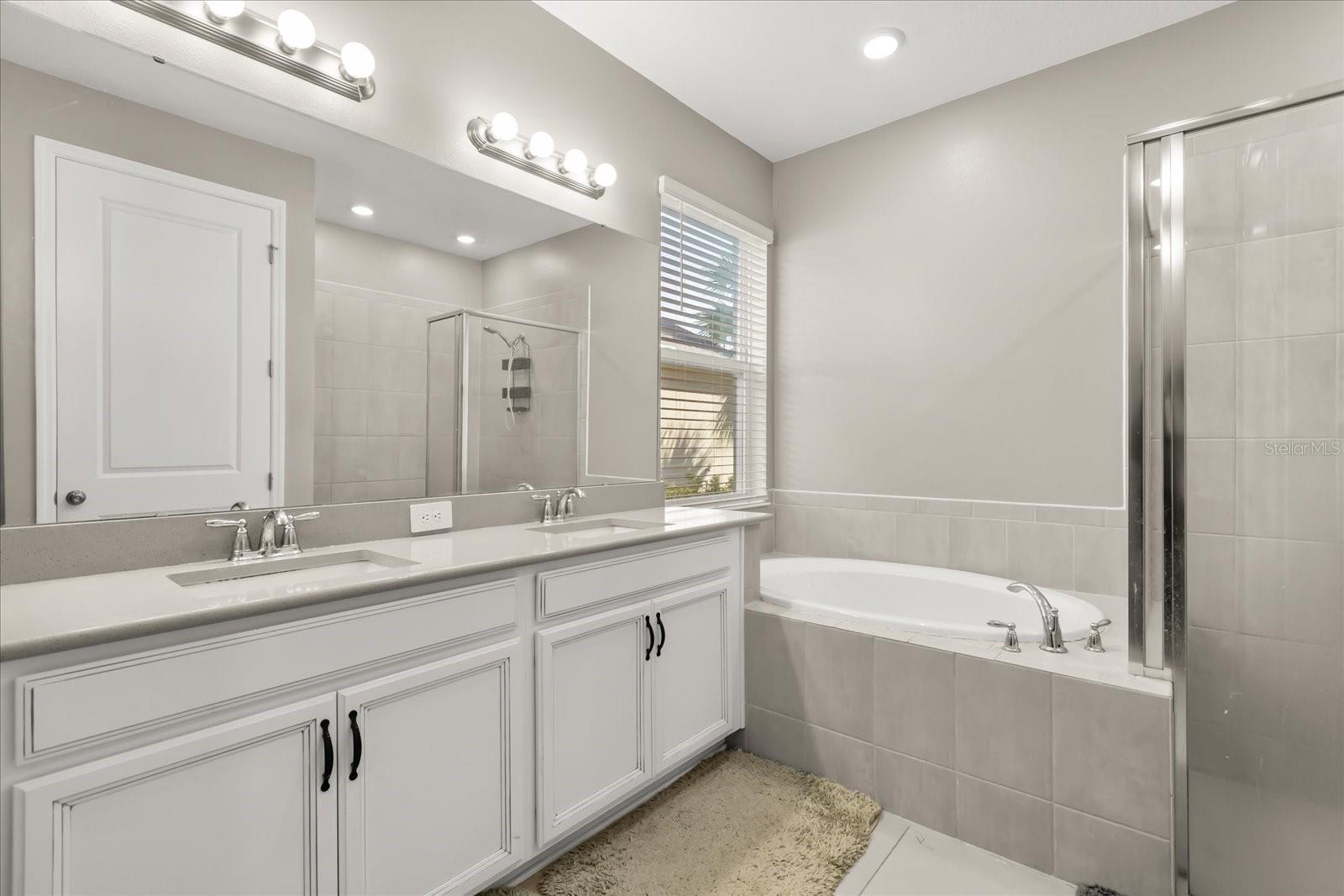 High Ceilings, Open Floorplan, Primary Bedroom Main Floor, Solid Surface Counters, Solid Wood Cabinets, Split Bedroom, Stone Counters, Walk-In Closet(s)