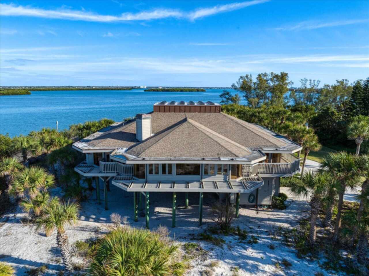 An opportunity of this caliber rarely presents itself on the west coast of Florida, 1198 Mandalay Point represents extraordinary value for one of the state's most exclusive waterfront properties. Set on 42.57 acres at the secluded northern tip of Clearwater Beach, this remarkable beach to bay property is the last and only private residence of its kind. Bordered on the north by the untouched beauty of Caladesi Island State Park and accessible by a private road, the estate offers unmatched tranquility with miles of pristine beach. For the yachting enthusiasts, a rare deep-water dock accommodates vessels up to 80 feet, providing direct access to the Intracoastal Waterway and the Gulf of America for effortless cruising, fishing and island hopping. This is more than a home - it is a private sanctuary, a lifestyle investment, and a generational legacy. With its protected setting, private entrance, and rare beach-to-bay frontage, 1198 Mandalay Point stands alone as the crown jewel of Clearwater Beach real estate. The 3, 434 square foot residence is elevated 20 feet above sea level to showcase panoramic Gulf to Bay views. Inside, soaring 30 plus foot ceilings crown an atrium with a heated lap pool, overlooking the lush preserves of the south end of Caladesi Island, Malone and Moonshine Islands. Each room frames views of sunrises, sunsets and importantly - 360 degrees of palm trees, sandy beaches, the gulf and the bay. Whether entertaining guests or enjoying quiet moments, this home provides an unparalleled living experience. From its tranquil setting and proximity to Tampa International Airport to its world-class dockage and breathtaking natural beauty, 1198 Mandalay Point offers everything you need to enjoy the best of Florida living. An exceptional offering.