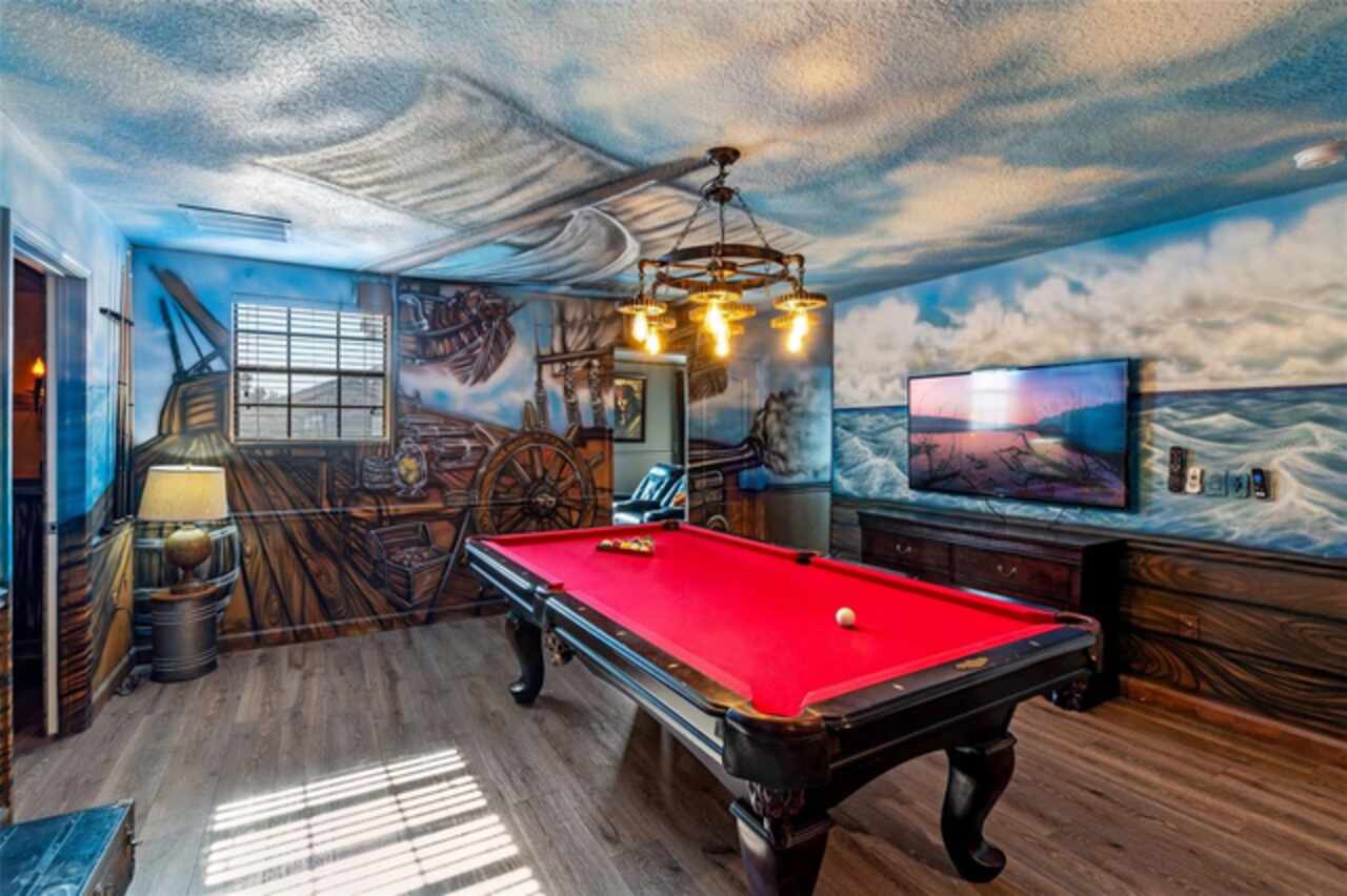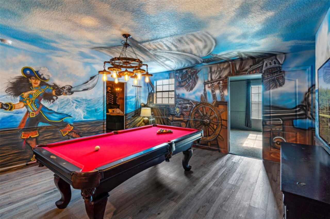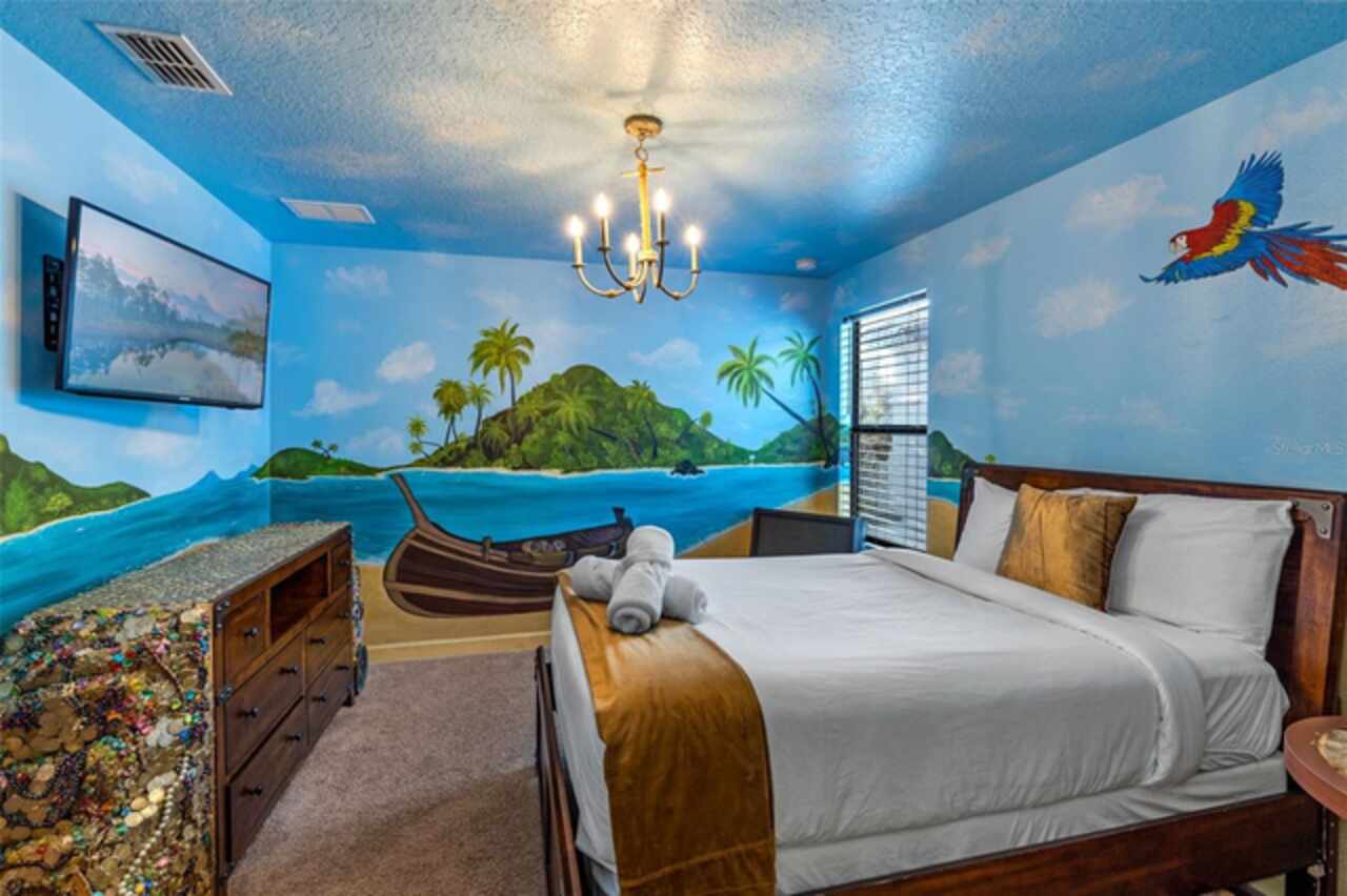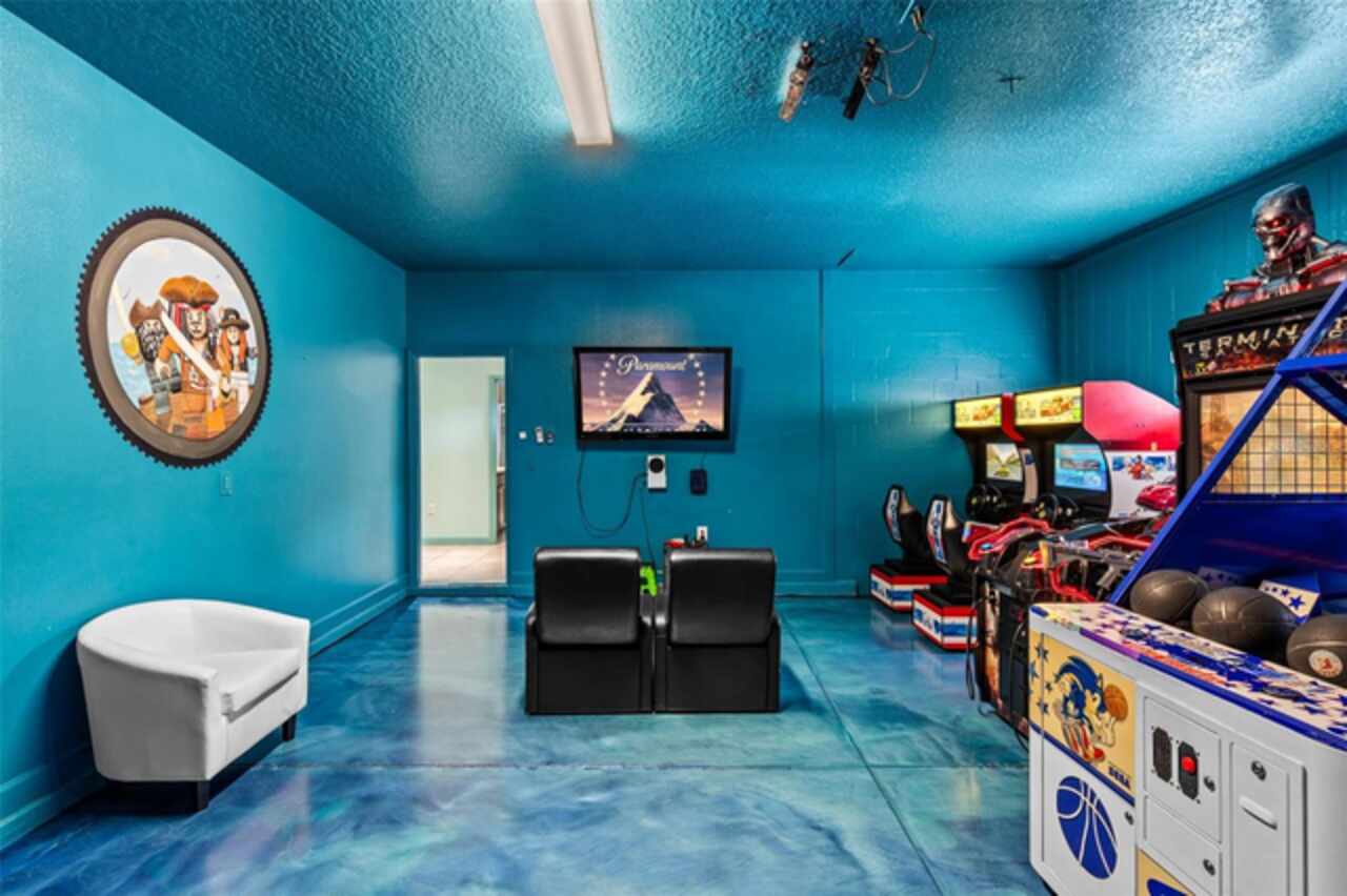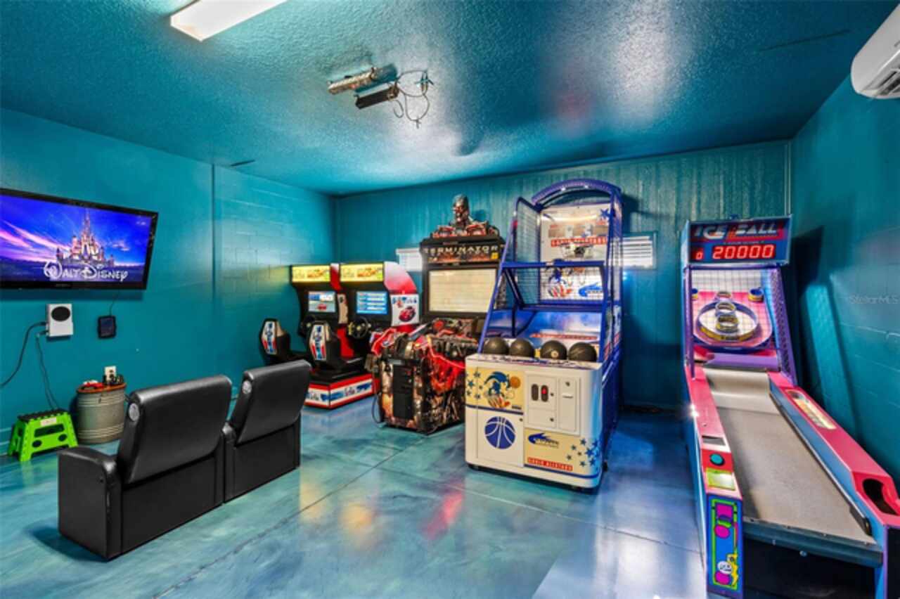 Step into the magical realm of this beautifully themed Disney-inspired income-generating property, located in the Champions Gate neighborhood of Davenport, Florida. The epic home features an impressive 9 bedrooms and 5 bathrooms, making it the perfect retreat for fun-seeking groups in search of an unforgettable vacation experience. With a 5-Star rating on Airbnb and Vrbo, this property brought in over $200K in short-term rental revenue 2024. And, investors will appreciate the financial potential of this property, showcasing an impressive 12.5% capitalization rate. With a strong history of rental income and high occupancy rates, this turn-key investment promises a consistent revenue stream. Moreover, this spacious, two-story home is designed to accommodate large groups, all strategically placed for easy access. Indoor/outdoor living is a must here with the seamless flow from the spacious family room to the large, screened-in outdoor lanai and pool. The multiple living areas both inside and out offer ample room for relaxation and entertainment, featuring comfortable seating, modern amenities and upgraded fixtures. The fully-equipped kitchen is a chef’s delight, outfitted with high-end appliances and plenty of counter space for preparing feasts for all. This amazing turn-key property includes a professional arcade and a spacious theater with an upgraded screen and surround sound, ensuring endless fun for the entire family. Each room is thoughtfully designed to immerse guests in the enchanting allure of Disney. From beloved characters adorning the walls to themed décor that evokes joy and nostalgia, every nook invites guests to create cherished memories. Outside, the private pool and spa area invites guests to unwind in its inviting waters and sun-kissed deck, providing a peaceful retreat after a day of exploring nearby attractions. The property includes its own website and social media presence, along with profiles on rental platforms, ensuring seamless management moving forward. Just a stone’s throw away from the Oasis Club at ChampionsGate, guests can take advantage of exclusive access to luxurious amenities like a lazy river, water slides, fitness center, and more. The close proximity to ChampionsGate’s golf courses and dining establishments ensures guests have everything they need for a lavish and memorable stay. Whether you’re looking to diversify your investment portfolio with a lucrative vacation rental or seeking a luxurious second home that pays for itself, this Disney-themed property in Champions Gate presents a rare opportunity to own a piece of themed paradise in the heart of Central Florida. Embrace the magic and consider this epic home as your next investment adventure!
