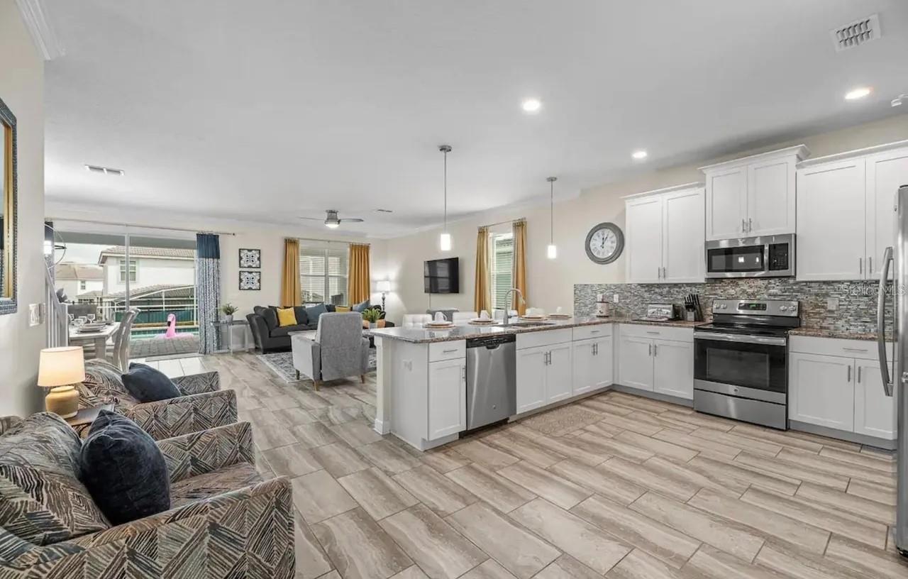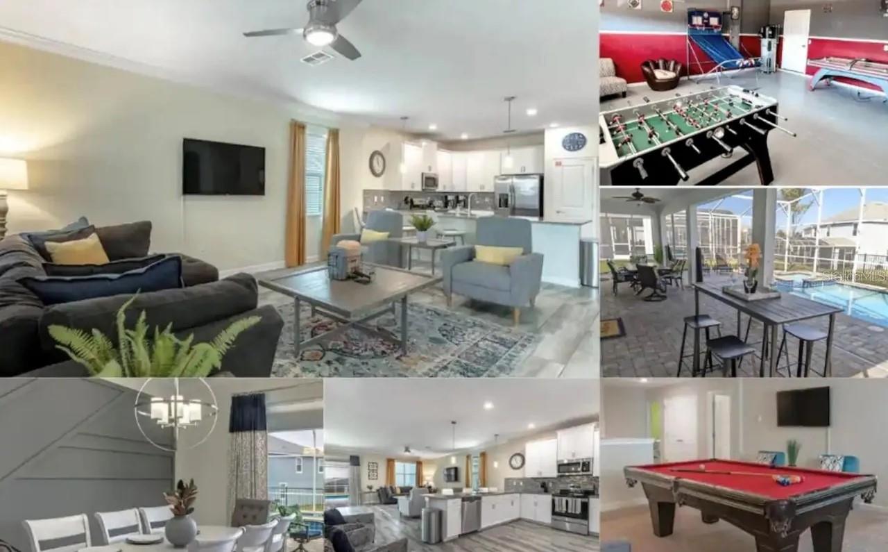 ChampionsGate – 9BR/5BA Pool Home with Themed Bedrooms & Resort Amenities Located in the desirable Retreat Community at ChampionsGate, this fully furnished and updated 9-bedroom, 5-bath home offers an exceptional short-term rental or vacation property opportunity. Just 30 minutes from Walt Disney World, Universal Orlando, SeaWorld, and Orlando International Airport, this residence combines modern finishes with resort-style living. Key features include: 9 bedrooms, including Disney/Pixar-themed rooms and upgraded master suites, Open-concept kitchen, dining, and living area designed for large gatherings, Screen-enclosed private heated pool and hot tub/spa, Garage-converted game room with air hockey, foosball, and hoop shot, Upstairs billiards lounge and multiple entertainment spaces, Ownership includes access to the Oasis Club at ChampionsGate, within walking distance, offering: Resort pools, lazy river, and splash pad, Fitness center, movie theater, game room, restaurant, and tiki bar Volleyball courts and organized community activities, Optional golf and tennis at the nearby Country Club This property is purpose-built for short-term rental investment with strong guest appeal, high occupancy potential, and resort amenities that attract repeat bookings.