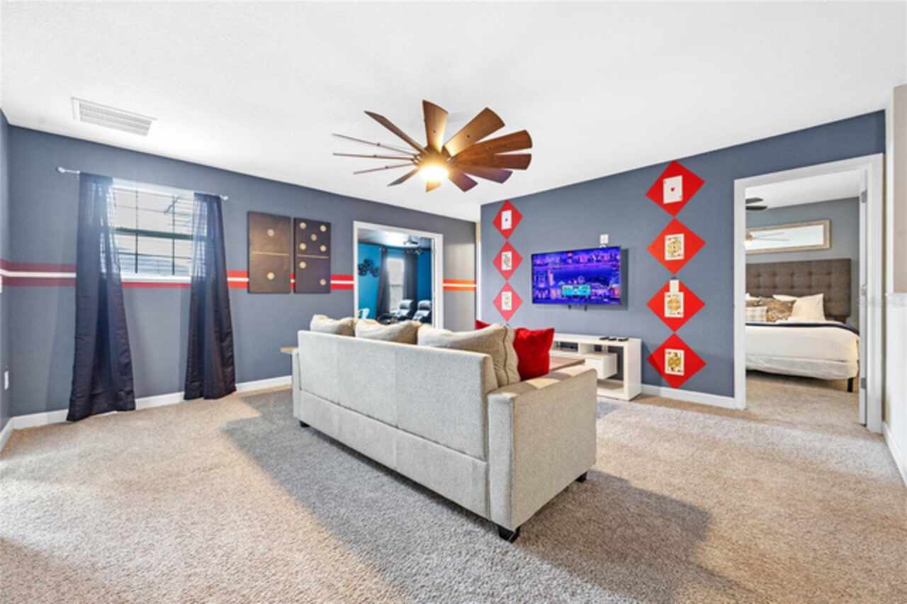 Turnkey Short-Term Rental Home with paid off Solar panels, in ChampionsGate Resort – Ready to Generate Income! Welcome to this FULLY FURNISHED, turnkey short-term rental pool home located in the prestigious ChampionsGate Resort, a top-rated vacation destination. This property is perfectly positioned to generate immediate rental income and is a rare find in a community with strong rental demand (Over $23, 000 already booked in 2025). The home has been fully optimized for short-term rental success, featuring multiple themed bedrooms that appeal to families and guests, including Toy Story, Harry Potter, Beauty and the Beast, and a custom-designed MOVIE THEATER. These unique touches make it stand out in the competitive vacation rental market. In addition, established bookings can convey with the sale, allowing the new owner to step into a property already generating revenue. Energy efficiency is a key advantage, with smart thermostats and FULLY PAID OFF SOLAR PANELS that will save you thousands annually on electric bills, improving your return on investment. ChampionsGate Resort itself offers a state-of-the-art clubhouse, a LAZY RIVER over 1, 000 feet long, indoor cabanas, an arcade, fitness center, GOLF COURSE, and a Tiki Bar by the pool. Guests can also enjoy beach volleyball courts, an onsite movie theater, and world-class amenities that ensure a memorable experience. Located only 15 minutes from DISNEY PARKS and offering easy access to Universal Studios, major highways, shopping, and dining, this home is perfectly situated to take advantage of Orlando’s thriving tourism market. With over 75 million visitors annually, the area provides a steady stream of potential renters. The opening of Universal’s EPIC UNIVERSE in 2025 will drive even more traffic to the region, securing long-term demand for vacation homes. This fully furnished home is truly turnkey and ready for immediate RENTAL INCOME. The association takes care of exterior maintenance, minimizing the hassle for owners. With a superhero-themed garage and bedrooms that captivate children and adults alike, this home offers something for everyone. Take advantage of this exceptional investment opportunity in one of the most sought-after vacation rental markets in the country. This property is ready to hit the ground running and will deliver high returns for the savvy investor. Don’t miss your chance—schedule a tour today!