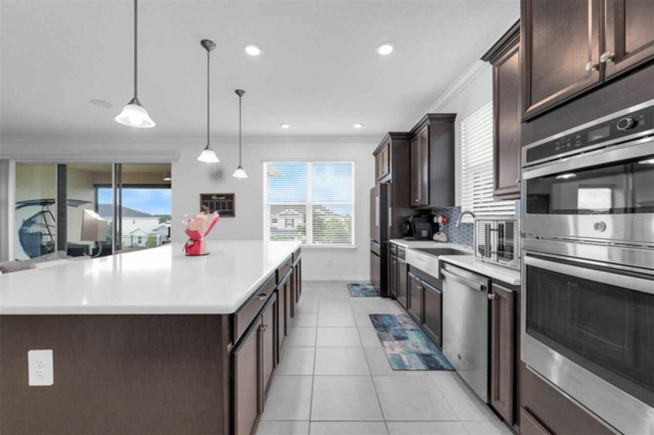 Under contract-accepting backup offers. Welcome to the fully upgraded residence at 1593 Osprey View Drive, where luxury meets modern living in the prestigious Lakeside Estates. No expense was spared in enhancing this exquisite Taylor Morrison home, built new in 2022! This secure, gated community offers peace of mind with a 24/7 virtual guard. Boasting 4 bedrooms and 3.5 bathrooms across 2, 755 square feet, this home is truly move-in ready. The oversized two-car garage comfortably fits three vehicles and is fully equipped with a 240-volt outlet for your electric vehicle. Eco-conscious living is a breeze with solar panels that not only lower your electric bill but can also provide a credit if unused. Upon entering, a grand foyer draws you into the vast living and dining areas. The living room features built-in surround sound speakers, seamlessly connected to the lanai for exceptional indoor-outdoor entertainment. The elegantly equipped kitchen is a chef's dream, offering a top-of-the-line gas range with a fully vented hood, a charming farmhouse sink, an upgraded backsplash, and a convenient built-in oven/microwave combo. A vast center island with rear cabinet storage provides the perfect gathering spot. Throughout the entire home, you'll find refined crown molding. Step through the triple slider doors onto the lanai to enjoy serene views of the lake and surrounding homes. This outdoor oasis is pre-plumbed for gas, water, and power, ready for the future outdoor kitchen of your dreams, and features a power-retractable screen for year-round enjoyment. The luxurious master bathroom offers the ultimate relaxation experience with dual shower heads and a separate tub, truly feeling like a spa escape. For added hygiene, UV lights are installed in every bathroom. Enjoy fantastic neighborhood amenities including an amazing community pool, playground, and extensive sidewalks, perfect for meeting new neighbors. This home offers unparalleled convenience, located near major highways like the Turnpike, 429, and 414. You're just a short 20-minute drive to downtown Orlando and 30 minutes to Walt Disney World. Plus, AdventHealth Apopka is only 1 mile away. 1% (of loan amount) lender credit toward closing costs or rate buy-down available. Ask for details!