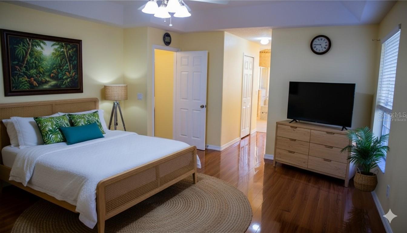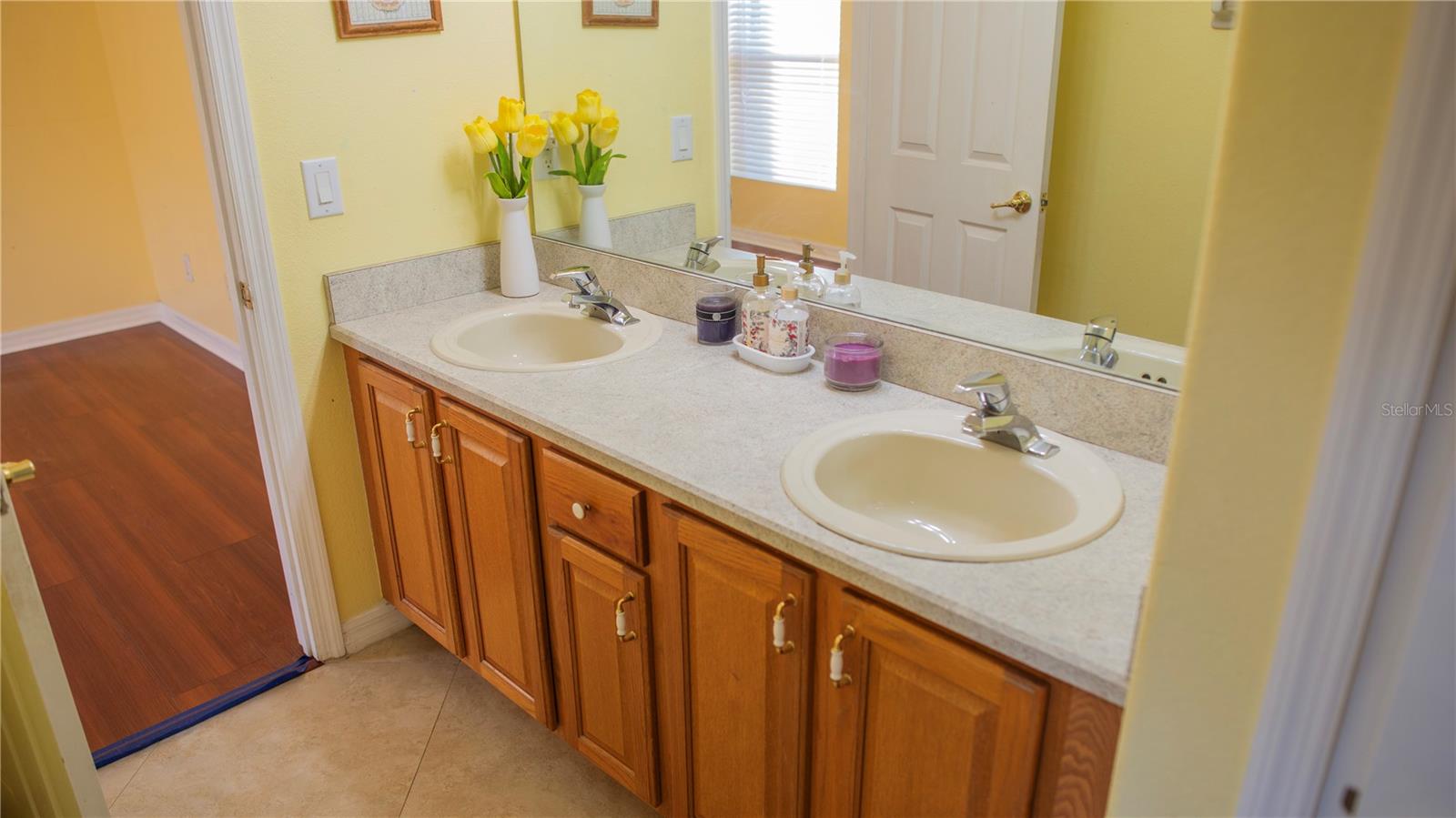 One or more photo(s) has been virtually staged. A Three-Way Split with 4 bedrooms, 3 full baths, and on a large lot. Oversized 2-car garage 483 sq ft. Upon entering the front door is a tall ceiling with tile floor front porch that leads you inside the home, with high ceilings, large formal living room adjacent to a formal dining room with accented column. Ceiling fans, tray ceiling in master bedroom. Tiled in all common areas, all bedrooms have a beautiful, laminated wood floor, marble countertop, double sinks, stainless steel appliances. The large open gourmet kitchen, which opens into the family room and breakfast area is great for entertaining. Plus lots of natural light throughout the house. Master suite features a french door that opens to a screened patio going towards the backyard, 2 separate walk-in closets for his and hers, stall shower, separate toilet room, and a soak in tub. All bathrooms in the house are upgraded, one of them is a Jack and Jill set up. Walking distance to shopping centers. If you are looking for a no trouble house, this is the one. New roof 2021, New advance A/C, R Mechanical CHANGE OUT 4 TON SPLIT SYSTEM 2023, New water heater, 2018, plus a home warranty is in place. New flooring in 3 bedrooms 11/25. More pictures to come.