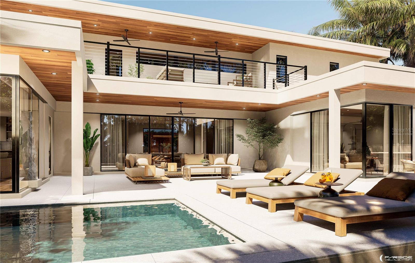 One or more photo(s) has been virtually staged. West of Trail luxury meets modern innovation at 1759 Waldemere Street. This brand-new, custom-built residence embodies timeless design, contemporary craftsmanship, and intentional indoor–outdoor living. Set on a .33-acre lot just steps from Southside Village and Sarasota Memorial, the home delivers sophistication, convenience, and exceptional attention to detail in one of Sarasota’s most sought-after neighborhoods — a rare opportunity in the coveted West of Trail community. Spanning 4, 513 square feet, the two-story floor plan features four bedrooms, five baths, an office with private entry, and a media room that opens to a 480-square-foot balcony overlooking the property. Designed for both everyday living and elegant entertaining, the home showcases expansive sliding glass doors that blur the line between indoors and out, opening to a heated saltwater pool, spa, and lush landscaped backyard for year-round enjoyment. The designer kitchen serves as the heart of the home, featuring Sub-Zero and Wolf appliances, custom cabinetry, imported stone, and a hidden butler’s pantry. The first-floor primary suite epitomizes luxury with zero-corner sliders that open directly to the pool and outdoor living area. Inside, a spa-inspired bath includes a freestanding tub, walk-in shower, and a custom built-in walk-in closet. Upstairs, two en suite bedrooms and a second-floor primary suite give privacy for family or guests. A versatile media room and expansive outdoor terrace complete the level, overlooking the serene backyard oasis. Every detail has been thoughtfully curated — from the bespoke, locally handcrafted Sapele wood entry door to hurricane-impact windows and doors, a three-car garage with epoxy flooring, and professional landscaping surrounding the fenced backyard. Ideally located in the highly regarded Southside Elementary School district, near Sarasota Memorial Hospital and the shops and dining of Southside Village, with downtown Sarasota, Siesta Key, Lido Key, and St. Armands Circle just minutes away. This is more than a home — it’s a statement of Sarasota luxury living.