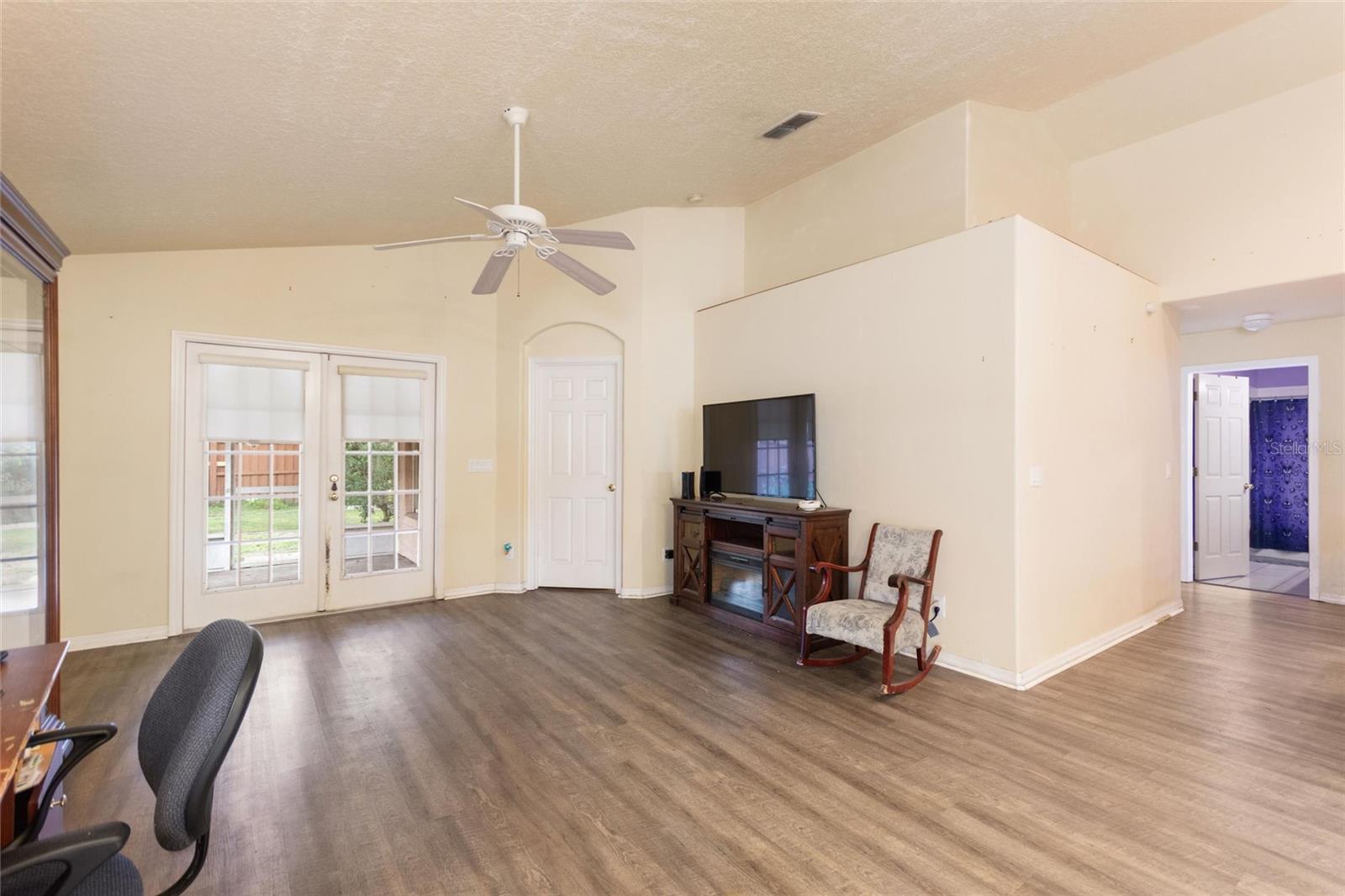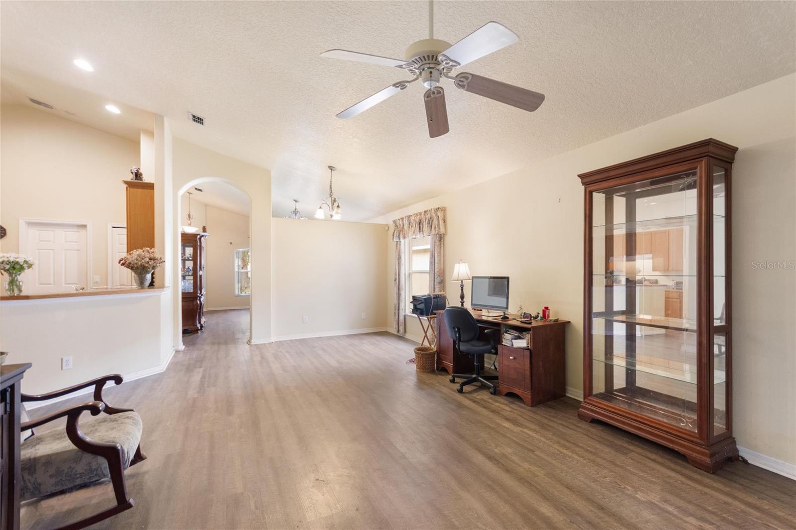 High Ceilings, Living Room/Dining Room Combo, Primary Bedroom Main Floor, Thermostat, Ceiling Fans(s)