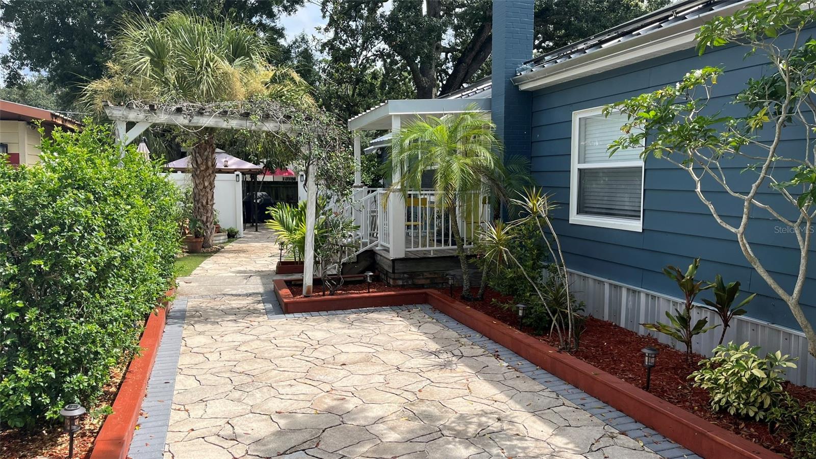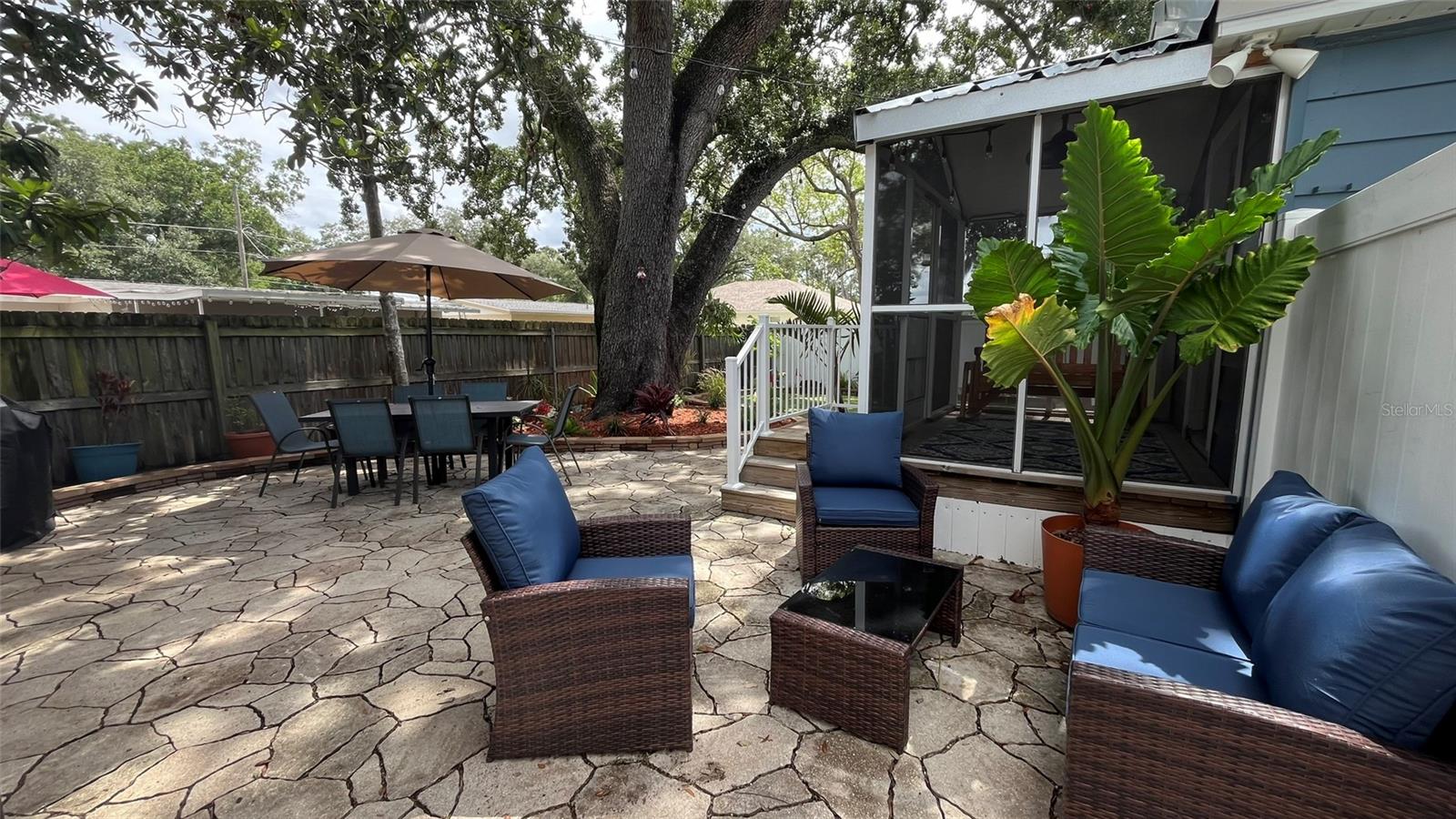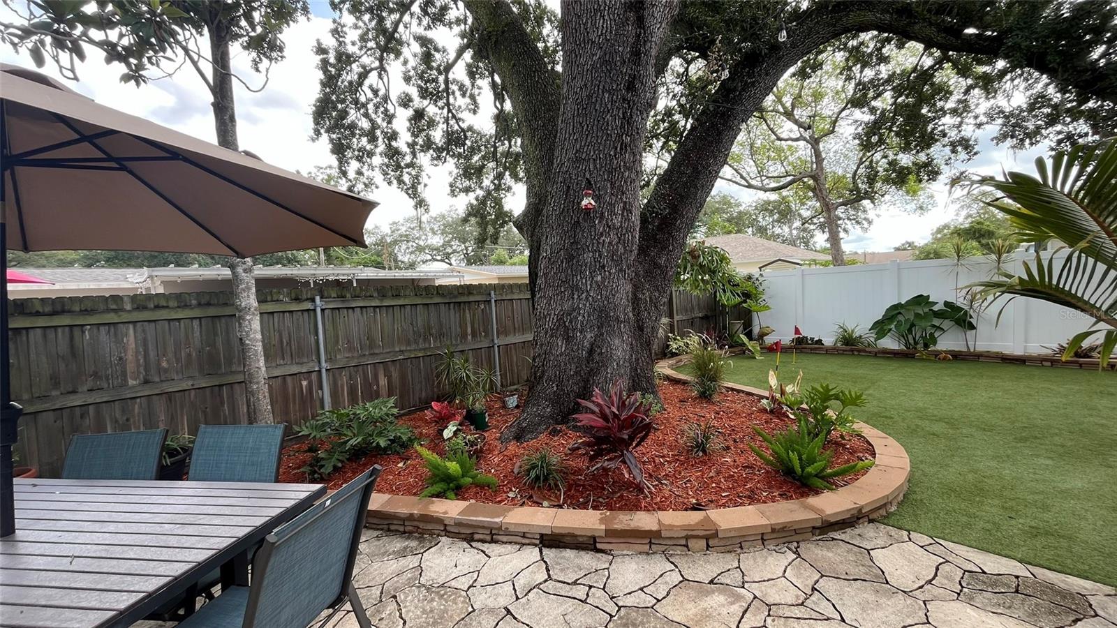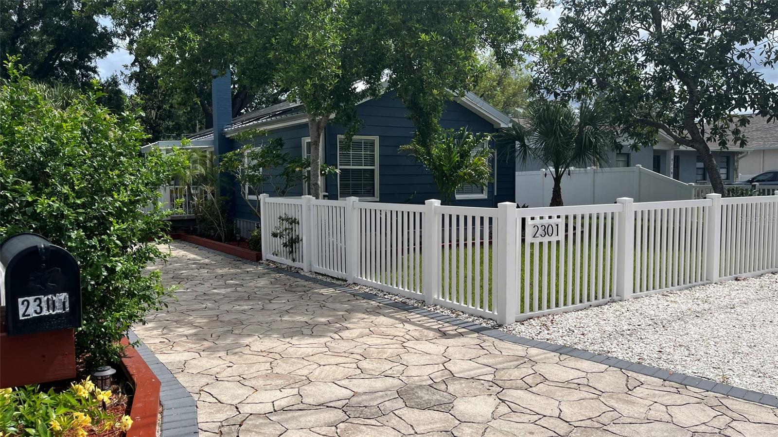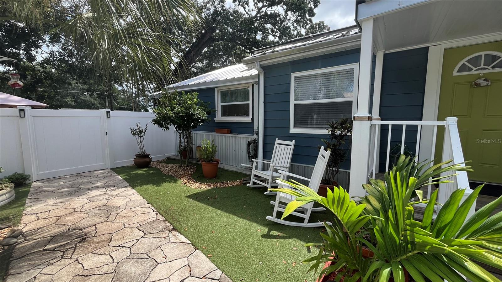 Welcome to this beautifully remodeled 4-bedroom, 2-bath home located in the heart of Tampa. A charming residence that offers a seamless blend of comfort, style, and functionality—perfect for families, professionals, or anyone seeking a move-in-ready retreat. The property features a classic picket fence enclosing a lush front yard, ideal for outdoor games and family fun. A stone-style paver driveway leads to a tranquil courtyard with a bubbling fountain and rocking chairs, evoking the feel of a countryside cottage. Inside, you'll find gleaming hardwood floors, fresh designer colors, and an open-concept layout that promotes easy living and entertaining. The kitchen is bright and efficient, with cheerful tilework, sleek cabinetry, and a large skylight that fills the space with natural light. All four bedrooms are generously sized with ample closet space. The fourth bedroom, located just off the living room, offers flexibility as a home office, playroom, or guest space. Step through the laundry room to a screened-in porch—perfect for morning coffee or evening relaxation under customizable café lights. The fully fenced backyard is a landscaped oasis featuring a hot tub under a canopy, BBQ area, cozy seating, al fresco dining under a majestic oak tree, and a private putting green. Recent mechanical upgrades include a new air conditioning system, water heater, metal roof, refrigerator, and disposal. The home also benefits from a two-year-old solar system and recent termite treatment, ensuring energy efficiency and peace of mind. This property is a rare find - offering charm, convenience, and thoughtful design nestled in a vibrant Tampa neighborhood where you're just minutes from sporting events, concerts, local restaurants, parks, and attractions. Furnishings are available for purchase separately.
