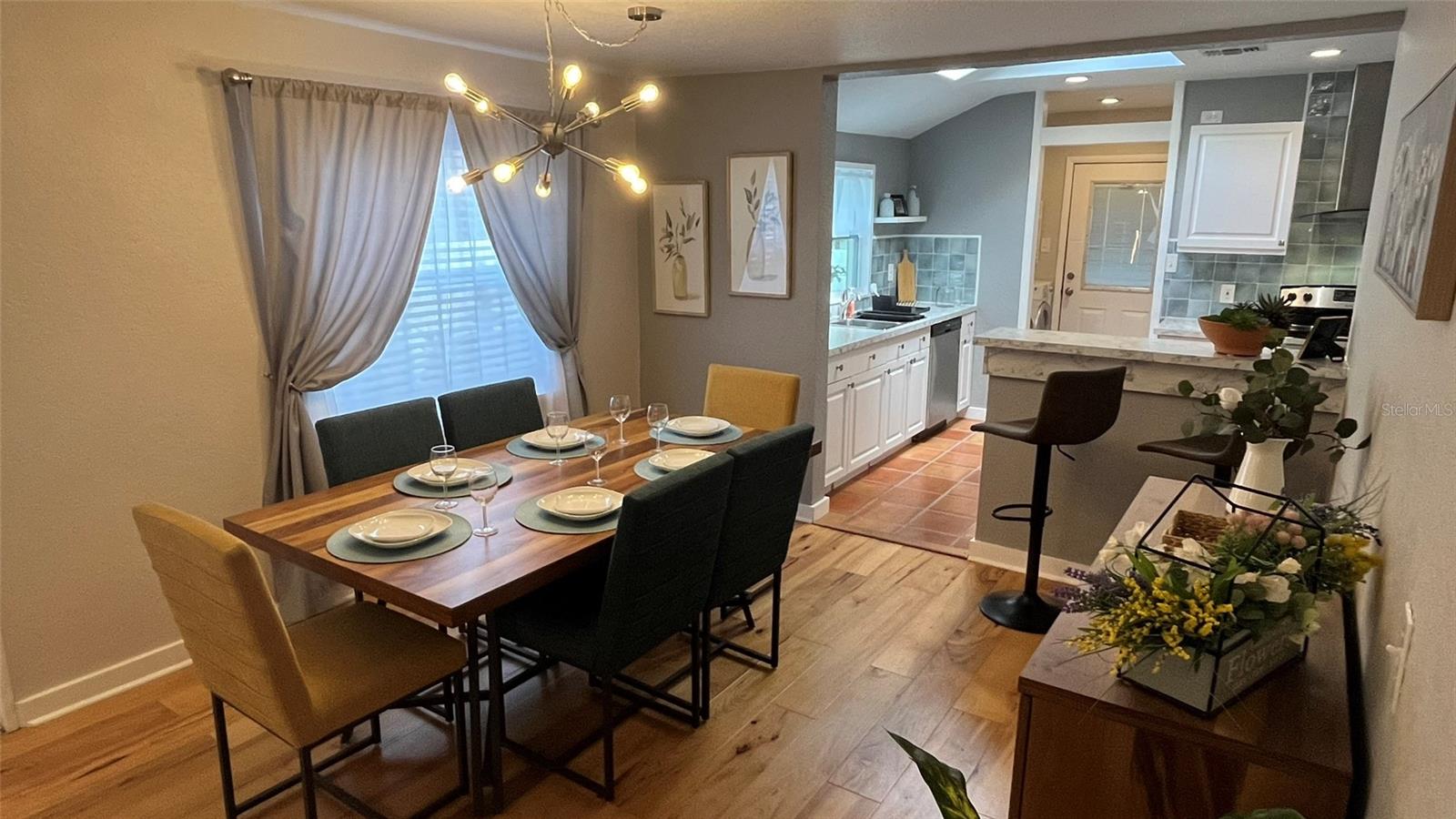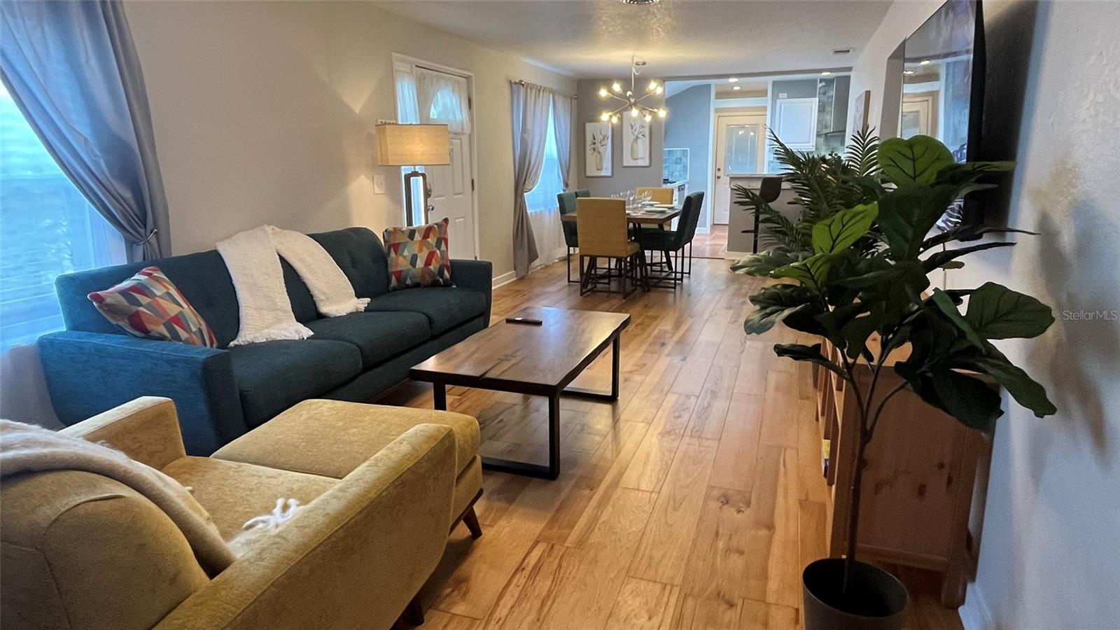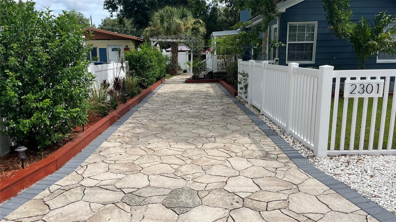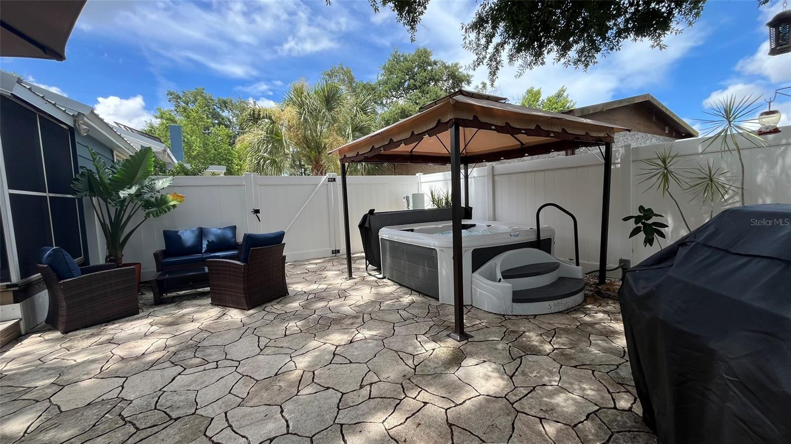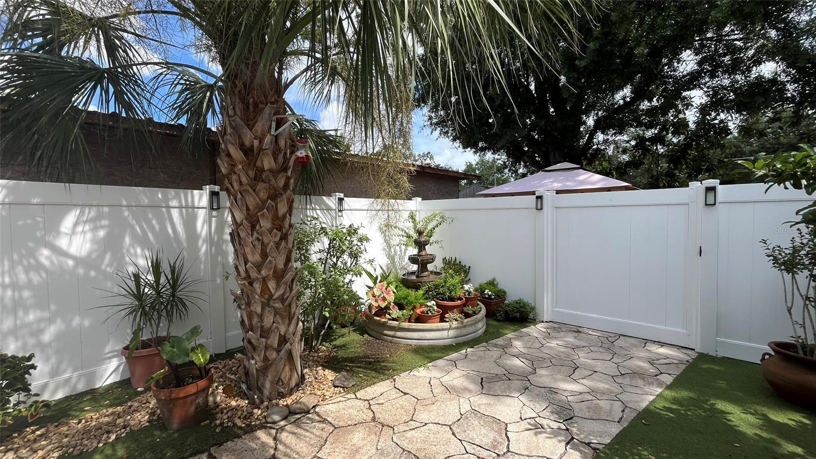 Welcome to this beautifully remodeled 4-bedroom, 2-bath home located in the heart of Tampa. A charming residence that offers a seamless blend of comfort, style, and functionality—perfect for families, professionals, or anyone seeking a move-in-ready retreat. The property features a classic picket fence enclosing a lush front yard, ideal for outdoor games and family fun. A stone-style paver driveway leads to a tranquil courtyard with a bubbling fountain and rocking chairs, evoking the feel of a countryside cottage. Inside, you'll find gleaming hardwood floors, fresh designer colors, and an open-concept layout that promotes easy living and entertaining. The kitchen is bright and efficient, with cheerful tilework, sleek cabinetry, and a large skylight that fills the space with natural light. All four bedrooms are generously sized with ample closet space. The fourth bedroom, located just off the living room, offers flexibility as a home office, playroom, or guest space. Step through the laundry room to a screened-in porch—perfect for morning coffee or evening relaxation under customizable café lights. The fully fenced backyard is a landscaped oasis featuring a hot tub under a canopy, BBQ area, cozy seating, al fresco dining under a majestic oak tree, and a private putting green. Recent mechanical upgrades include a new air conditioning system, water heater, metal roof, refrigerator, and disposal. The home also benefits from a two-year-old solar system and recent termite treatment, ensuring energy efficiency and peace of mind. This property is a rare find - offering charm, convenience, and thoughtful design nestled in a vibrant Tampa neighborhood where you're just minutes from sporting events, concerts, local restaurants, parks, and attractions. Furnishings are available for purchase separately.