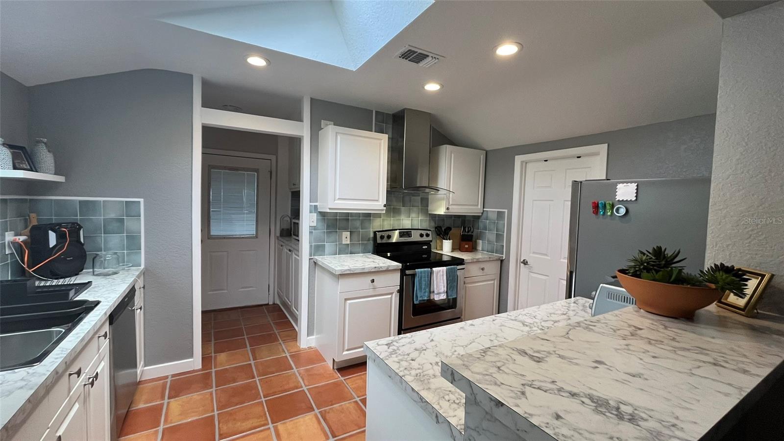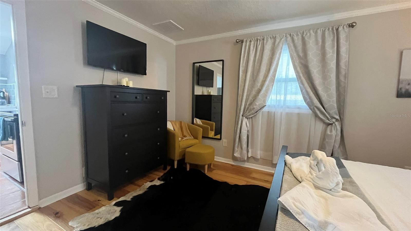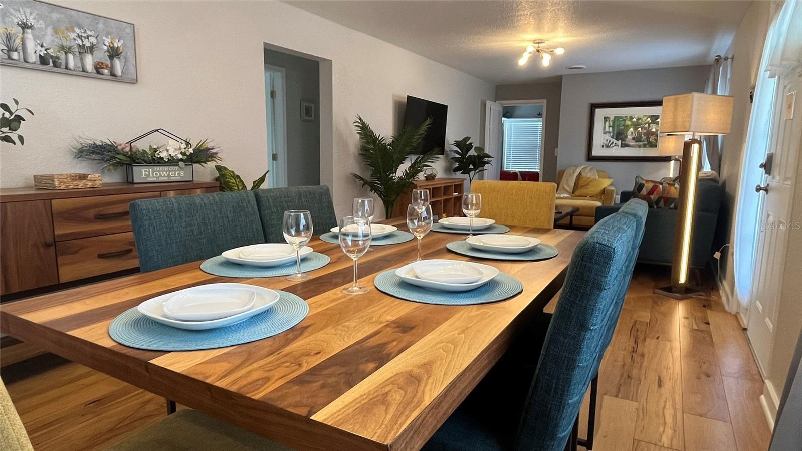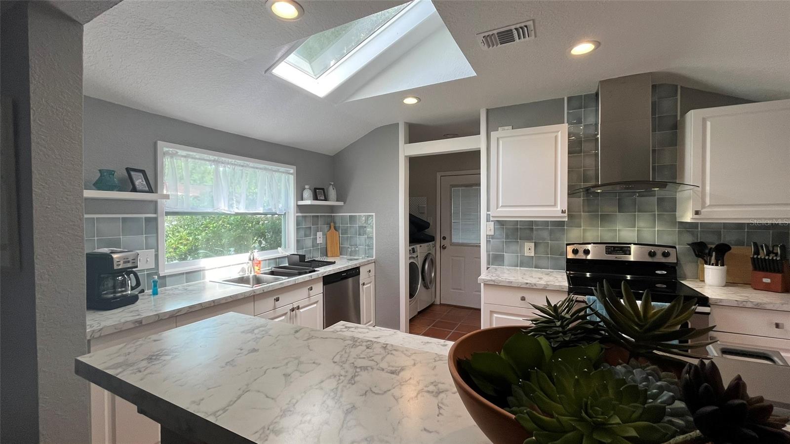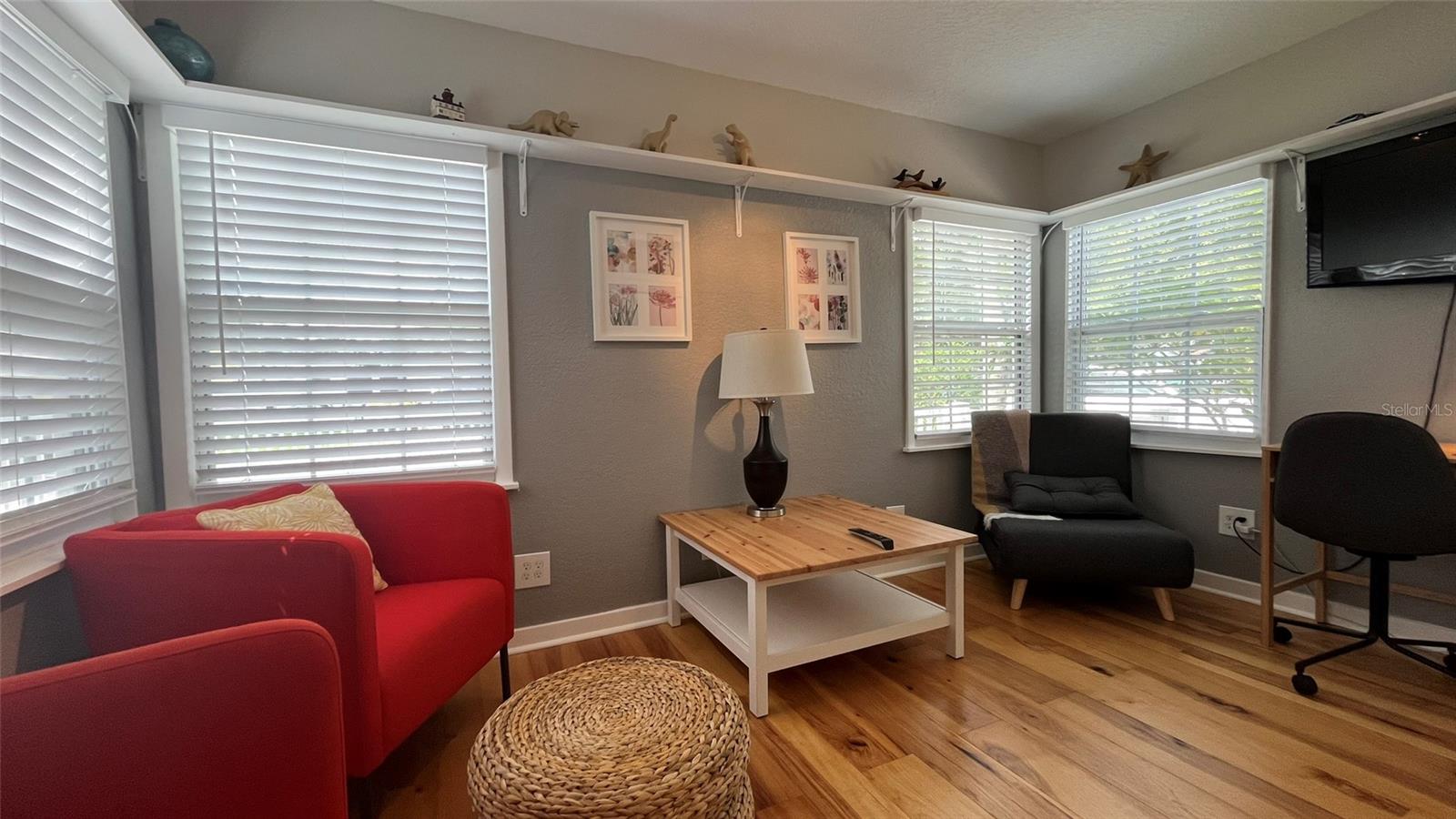 Welcome to this beautifully remodeled 4-bedroom, 2-bath home located in the heart of Tampa. A charming residence that offers a seamless blend of comfort, style, and functionality—perfect for families, professionals, or anyone seeking a move-in-ready retreat. The property features a classic picket fence enclosing a lush front yard, ideal for outdoor games and family fun. A stone-style paver driveway leads to a tranquil courtyard with a bubbling fountain and rocking chairs, evoking the feel of a countryside cottage. Inside, you'll find gleaming hardwood floors, fresh designer colors, and an open-concept layout that promotes easy living and entertaining. The kitchen is bright and efficient, with cheerful tilework, sleek cabinetry, and a large skylight that fills the space with natural light. All four bedrooms are generously sized with ample closet space. The fourth bedroom, located just off the living room, offers flexibility as a home office, playroom, or guest space. Step through the laundry room to a screened-in porch—perfect for morning coffee or evening relaxation under customizable café lights. The fully fenced backyard is a landscaped oasis featuring a hot tub under a canopy, BBQ area, cozy seating, al fresco dining under a majestic oak tree, and a private putting green. Recent mechanical upgrades include a new air conditioning system, water heater, metal roof, refrigerator, and disposal. The home also benefits from a two-year-old solar system and recent termite treatment, ensuring energy efficiency and peace of mind. This property is a rare find - offering charm, convenience, and thoughtful design nestled in a vibrant Tampa neighborhood where you're just minutes from sporting events, concerts, local restaurants, parks, and attractions. Furnishings are available for purchase separately.