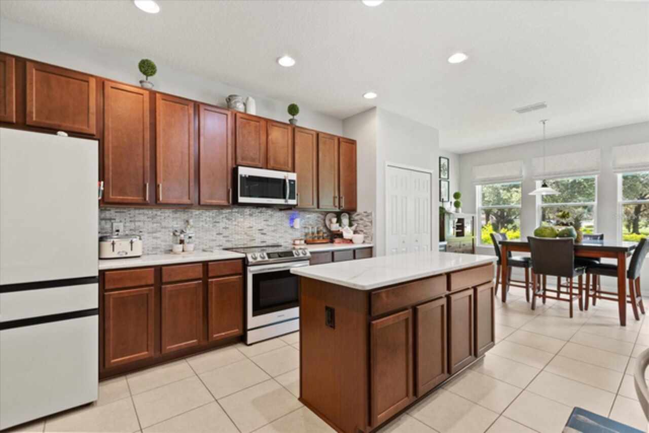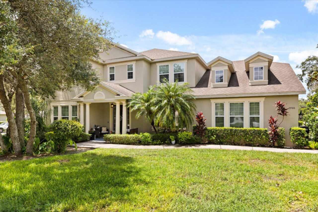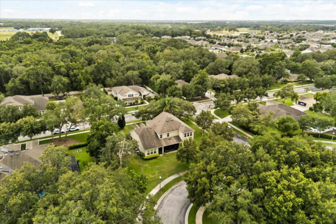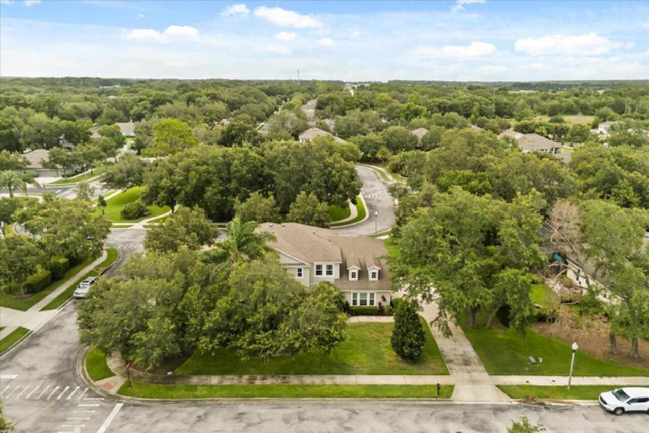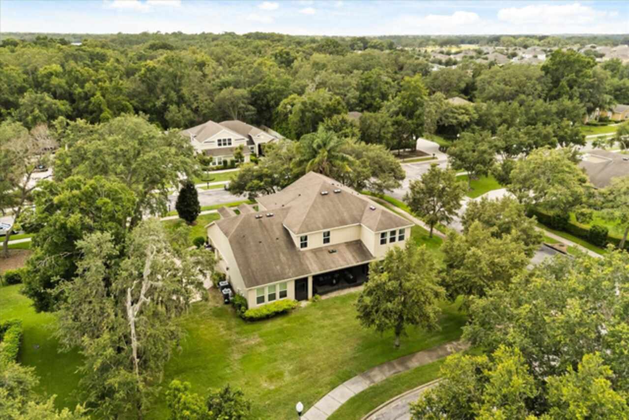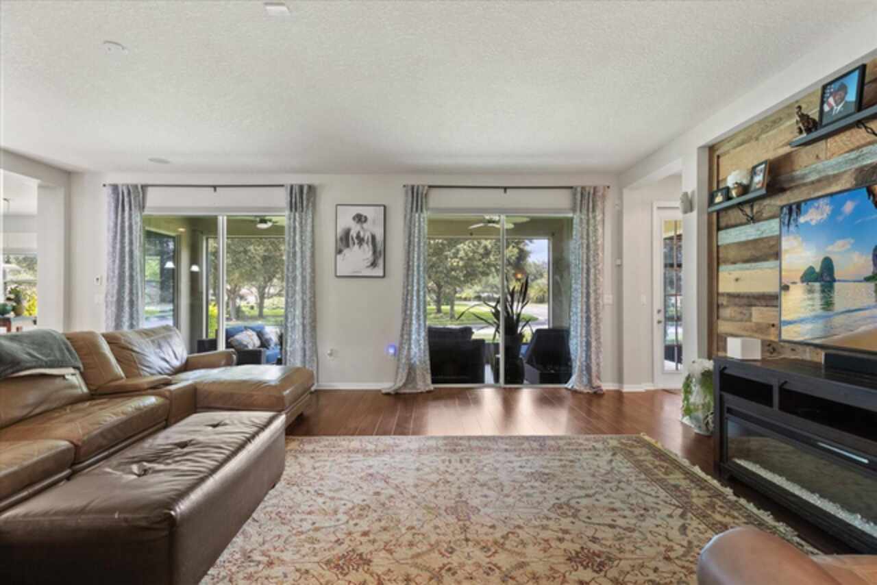 11, 000 PRICE IMPROVEMENT! Welcome to your dream home in the exclusive gated community of Oakridge, where luxury, space, and future-forward living converge. Perfectly positioned just minutes from the highly anticipated Wyld Oaks development—offering an exciting blend of residential, retail, dining, medical, and recreational amenities—this exceptional residence combines timeless elegance with modern convenience. Boasting 5 spacious bedrooms, a dedicated office with a closet and nearby half bath, and a large upstairs loft, this thoughtfully designed floor plan offers flexibility for growing families, multigenerational living, or remote work needs. The first-floor in-law suite features laminate wood flooring, an en-suite bath, and a walk-in closet—ideal for guests or extended family. Entertain in style in the formal living and dining room combo, where coffered ceilings, recessed lighting, and a stunning chandelier create a sophisticated ambiance. The open-concept kitchen is a chef’s delight, with quartz countertops, 42” solid wood cabinetry, a large island, brand-new Samsung appliances, Kenmore dishwasher, tiled backsplash, pendant and recessed lighting, touchless faucet, and a Butler’s pantry for added storage and prep space. The family room is equipped with built-in surround sound speakers (also in the primary suite), while custom blinds add both style and privacy in key spaces throughout the main floor. Retreat to the luxurious primary suite featuring double-door entry, a sitting area, two walk-in closets (one with an upgraded organizing system), and a spa-inspired en suite bath with dual vanities, quartz countertops, a remodeled dual-head shower, and private water closet. Upstairs, bedrooms two and three share a Jack-and-Jill bathroom with a private water closet and dual quartz vanities. Bedroom four features its own private en-suite with a tiled bath/shower and quartz vanity. Every bedroom includes a generously sized walk-in closet, ensuring ample storage for everyone. Enjoy Florida living year-round from the screened lanai with triple oversized sliders overlooking the serene community park, all set on an oversized corner lot with full irrigation system. Additional upgrades include: No carpet on the first floor Neutral paint throughout 2020 water heater Two Carrier HVAC heat pumps 2013 Three-car garage This meticulously maintained home offers space, luxury, and unbeatable access to the exciting future of Wyld Oaks. The Jason Dwelley Recreational Complex is also just a few minutes away, which has tennis, baseball, softball, football, playground, walking and bike trails, amphitheter and picnic areas. Don’t miss the opportunity to own in one of the area’s most sought-after gated communities. All you need to do is hire the mover!