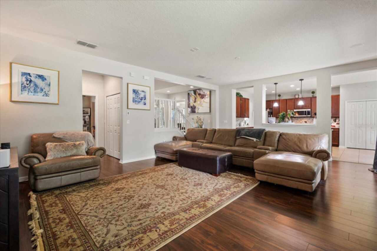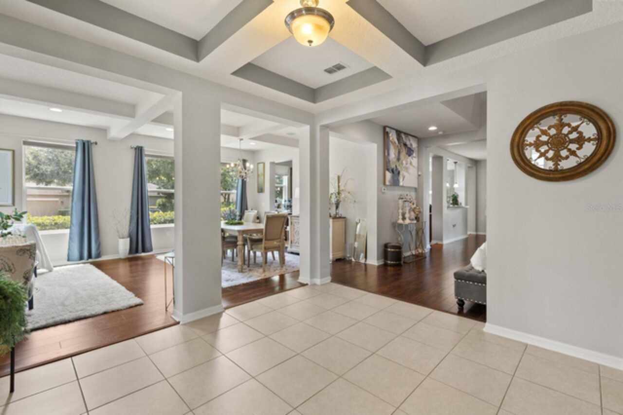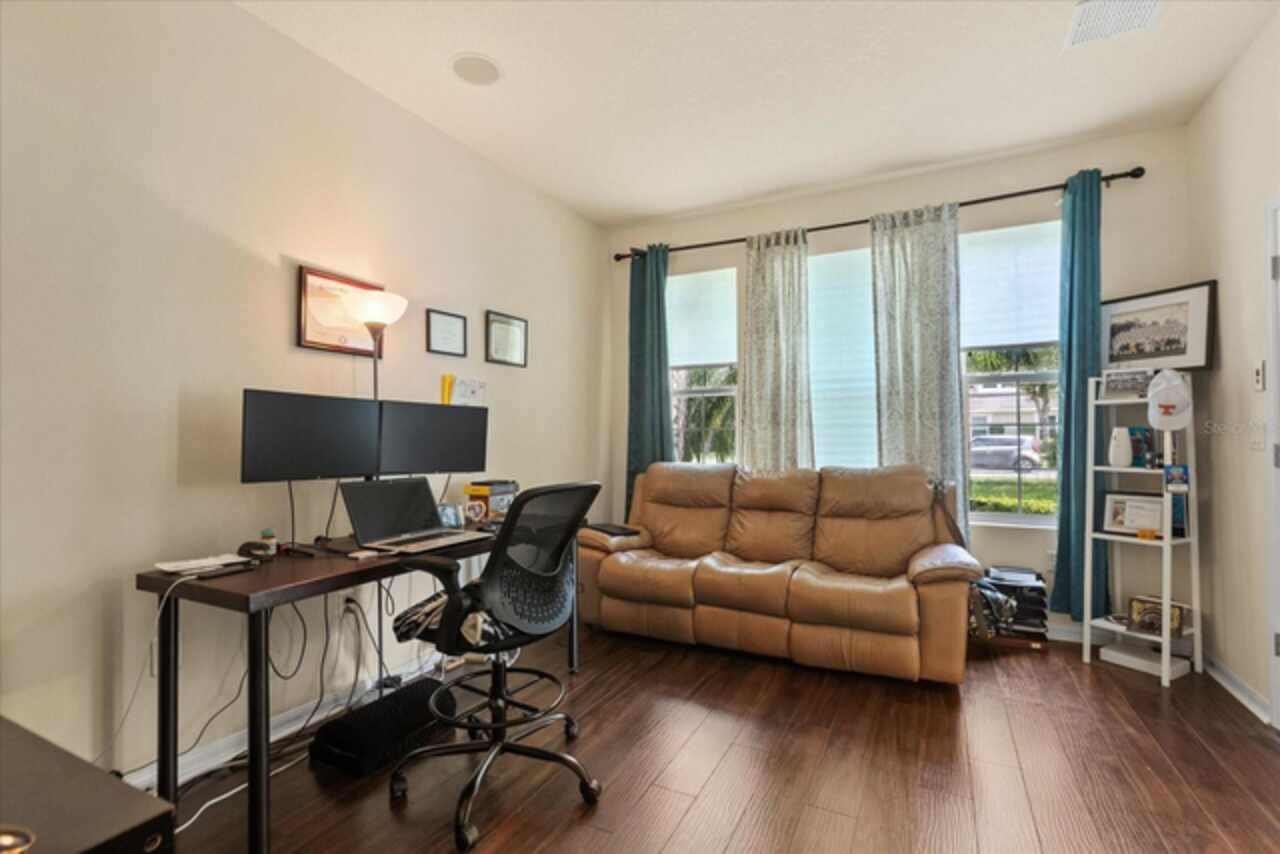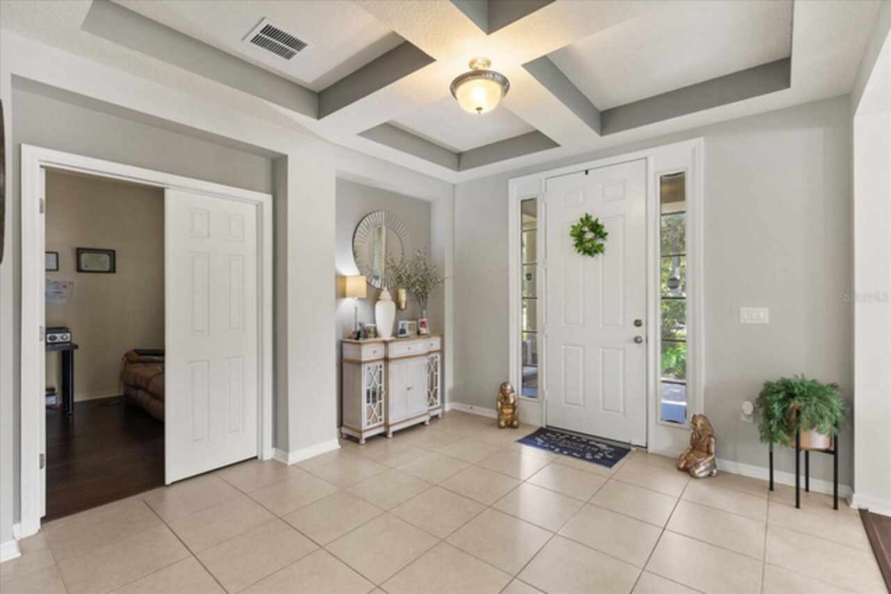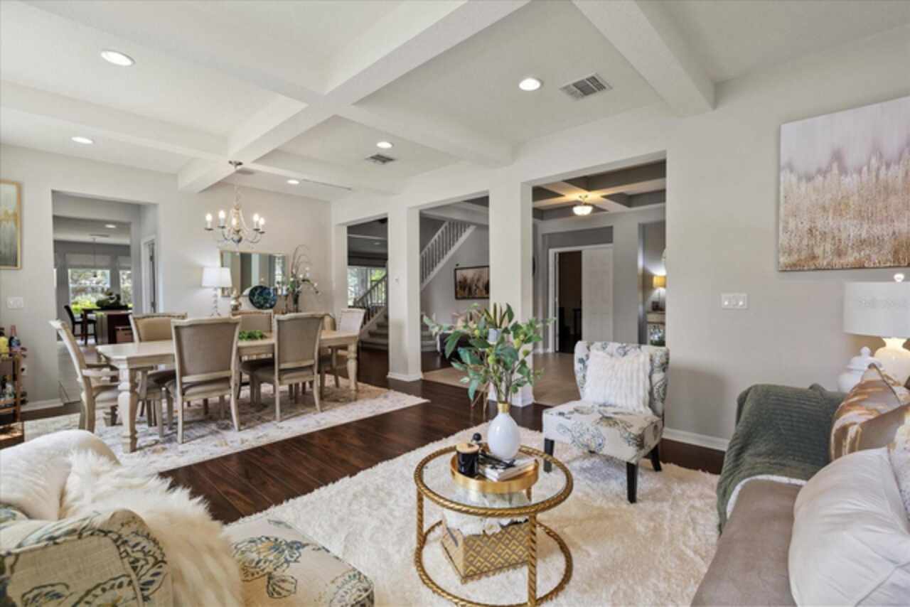 11, 000 PRICE IMPROVEMENT! Welcome to your dream home in the exclusive gated community of Oakridge, where luxury, space, and future-forward living converge. Perfectly positioned just minutes from the highly anticipated Wyld Oaks development—offering an exciting blend of residential, retail, dining, medical, and recreational amenities—this exceptional residence combines timeless elegance with modern convenience. Boasting 5 spacious bedrooms, a dedicated office with a closet and nearby half bath, and a large upstairs loft, this thoughtfully designed floor plan offers flexibility for growing families, multigenerational living, or remote work needs. The first-floor in-law suite features laminate wood flooring, an en-suite bath, and a walk-in closet—ideal for guests or extended family. Entertain in style in the formal living and dining room combo, where coffered ceilings, recessed lighting, and a stunning chandelier create a sophisticated ambiance. The open-concept kitchen is a chef’s delight, with quartz countertops, 42” solid wood cabinetry, a large island, brand-new Samsung appliances, Kenmore dishwasher, tiled backsplash, pendant and recessed lighting, touchless faucet, and a Butler’s pantry for added storage and prep space. The family room is equipped with built-in surround sound speakers (also in the primary suite), while custom blinds add both style and privacy in key spaces throughout the main floor. Retreat to the luxurious primary suite featuring double-door entry, a sitting area, two walk-in closets (one with an upgraded organizing system), and a spa-inspired en suite bath with dual vanities, quartz countertops, a remodeled dual-head shower, and private water closet. Upstairs, bedrooms two and three share a Jack-and-Jill bathroom with a private water closet and dual quartz vanities. Bedroom four features its own private en-suite with a tiled bath/shower and quartz vanity. Every bedroom includes a generously sized walk-in closet, ensuring ample storage for everyone. Enjoy Florida living year-round from the screened lanai with triple oversized sliders overlooking the serene community park, all set on an oversized corner lot with full irrigation system. Additional upgrades include: No carpet on the first floor Neutral paint throughout 2020 water heater Two Carrier HVAC heat pumps 2013 Three-car garage This meticulously maintained home offers space, luxury, and unbeatable access to the exciting future of Wyld Oaks. The Jason Dwelley Recreational Complex is also just a few minutes away, which has tennis, baseball, softball, football, playground, walking and bike trails, amphitheter and picnic areas. Don’t miss the opportunity to own in one of the area’s most sought-after gated communities. All you need to do is hire the mover!