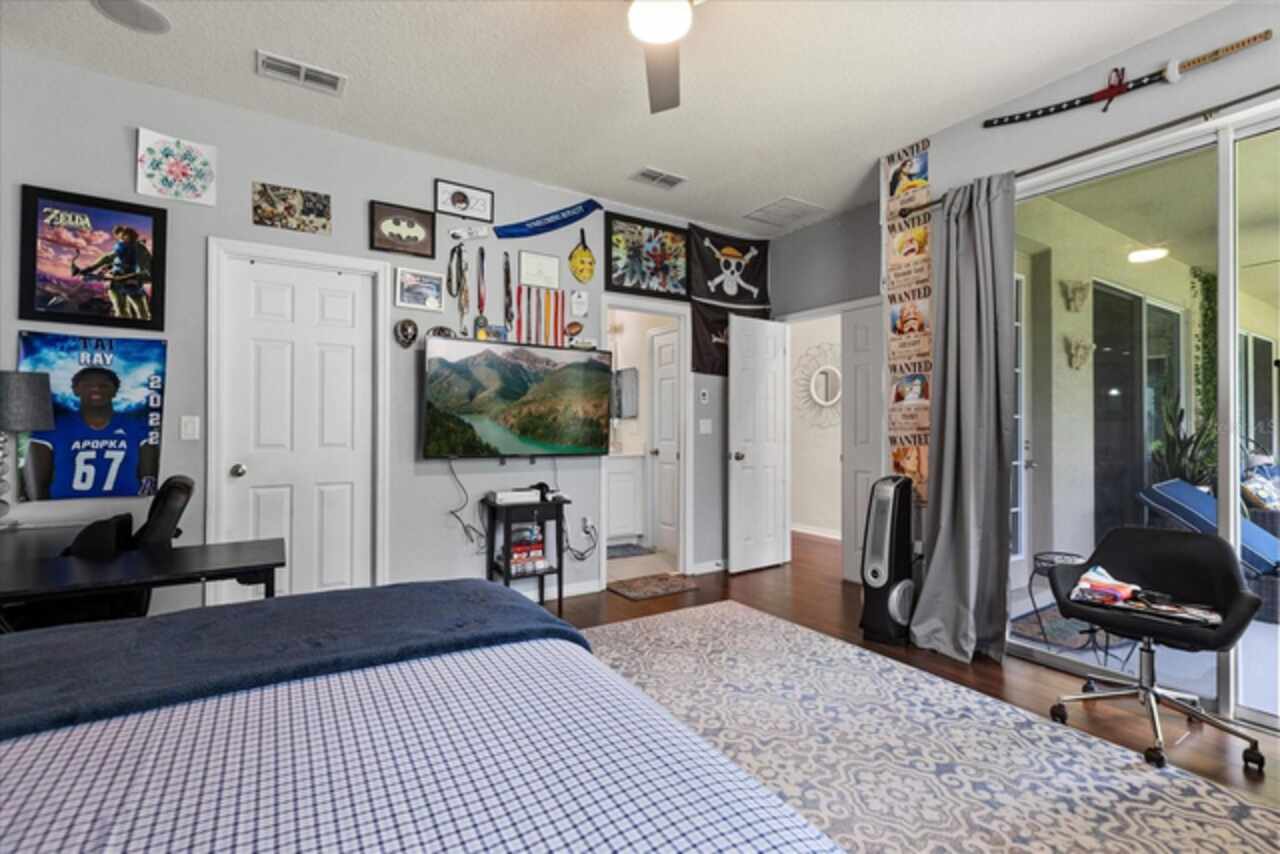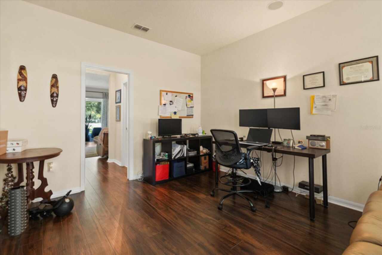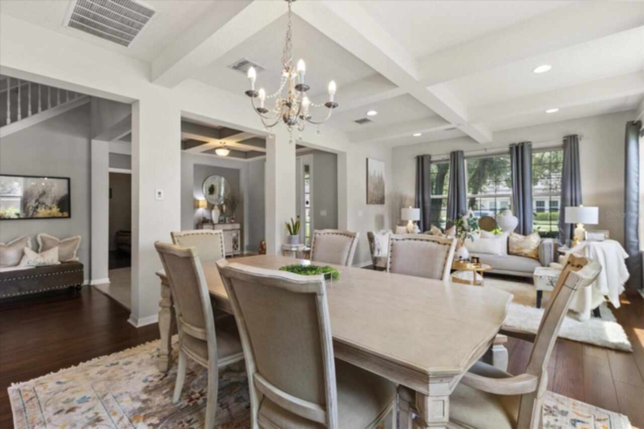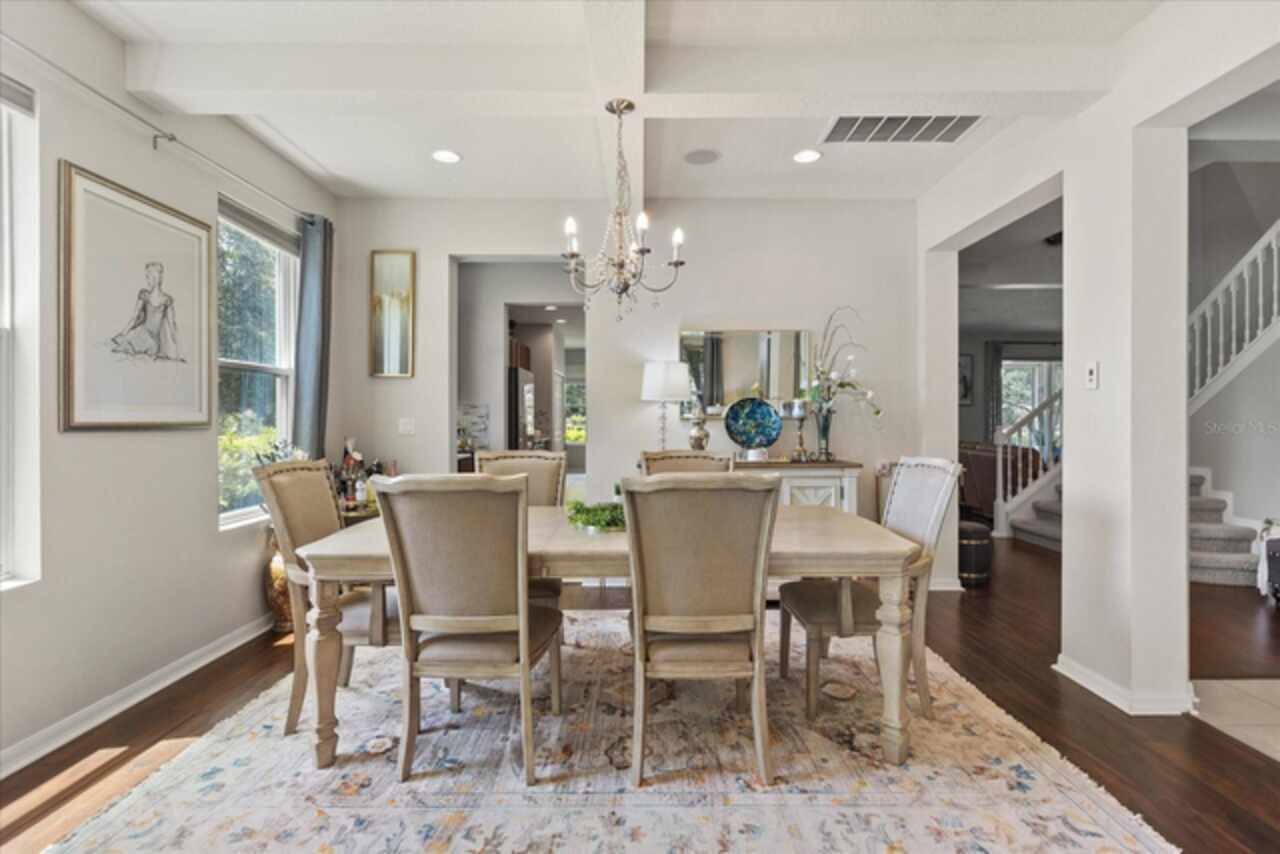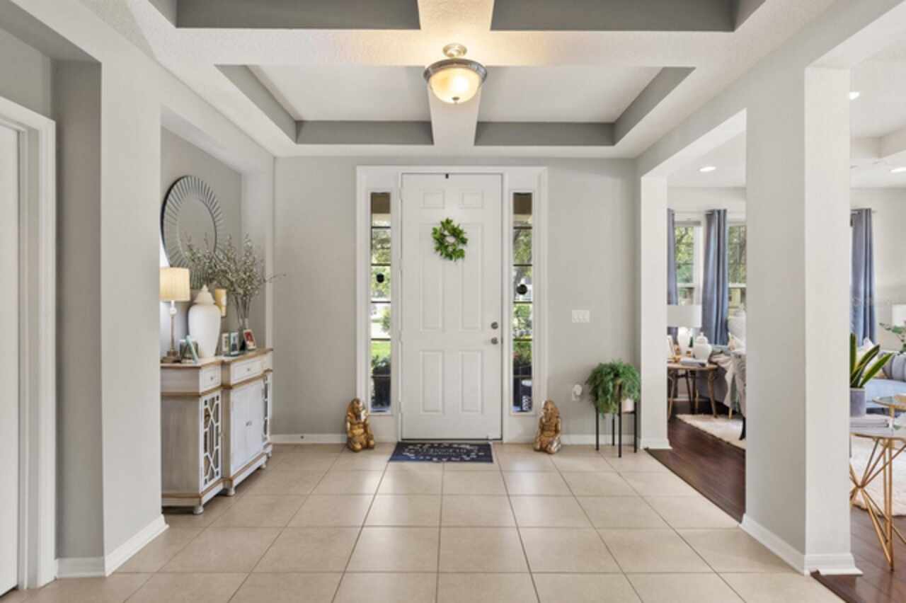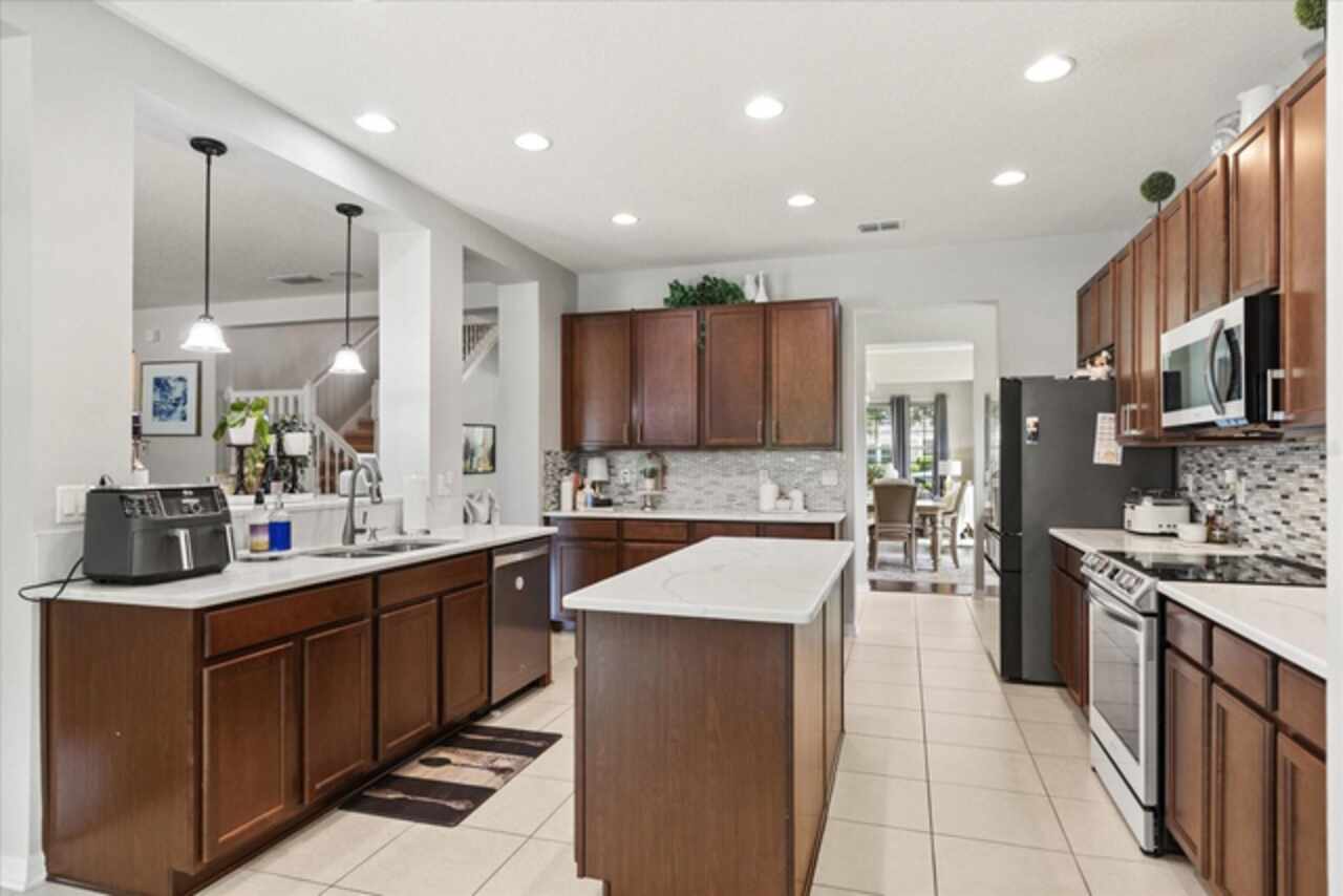 11, 000 PRICE IMPROVEMENT! Welcome to your dream home in the exclusive gated community of Oakridge, where luxury, space, and future-forward living converge. Perfectly positioned just minutes from the highly anticipated Wyld Oaks development—offering an exciting blend of residential, retail, dining, medical, and recreational amenities—this exceptional residence combines timeless elegance with modern convenience. Boasting 5 spacious bedrooms, a dedicated office with a closet and nearby half bath, and a large upstairs loft, this thoughtfully designed floor plan offers flexibility for growing families, multigenerational living, or remote work needs. The first-floor in-law suite features laminate wood flooring, an en-suite bath, and a walk-in closet—ideal for guests or extended family. Entertain in style in the formal living and dining room combo, where coffered ceilings, recessed lighting, and a stunning chandelier create a sophisticated ambiance. The open-concept kitchen is a chef’s delight, with quartz countertops, 42” solid wood cabinetry, a large island, brand-new Samsung appliances, Kenmore dishwasher, tiled backsplash, pendant and recessed lighting, touchless faucet, and a Butler’s pantry for added storage and prep space. The family room is equipped with built-in surround sound speakers (also in the primary suite), while custom blinds add both style and privacy in key spaces throughout the main floor. Retreat to the luxurious primary suite featuring double-door entry, a sitting area, two walk-in closets (one with an upgraded organizing system), and a spa-inspired en suite bath with dual vanities, quartz countertops, a remodeled dual-head shower, and private water closet. Upstairs, bedrooms two and three share a Jack-and-Jill bathroom with a private water closet and dual quartz vanities. Bedroom four features its own private en-suite with a tiled bath/shower and quartz vanity. Every bedroom includes a generously sized walk-in closet, ensuring ample storage for everyone. Enjoy Florida living year-round from the screened lanai with triple oversized sliders overlooking the serene community park, all set on an oversized corner lot with full irrigation system. Additional upgrades include: No carpet on the first floor Neutral paint throughout 2020 water heater Two Carrier HVAC heat pumps 2013 Three-car garage This meticulously maintained home offers space, luxury, and unbeatable access to the exciting future of Wyld Oaks. The Jason Dwelley Recreational Complex is also just a few minutes away, which has tennis, baseball, softball, football, playground, walking and bike trails, amphitheter and picnic areas. Don’t miss the opportunity to own in one of the area’s most sought-after gated communities. All you need to do is hire the mover!