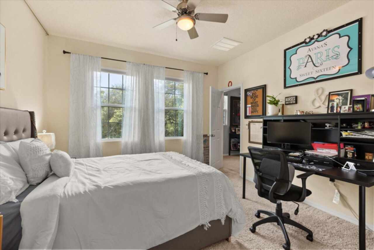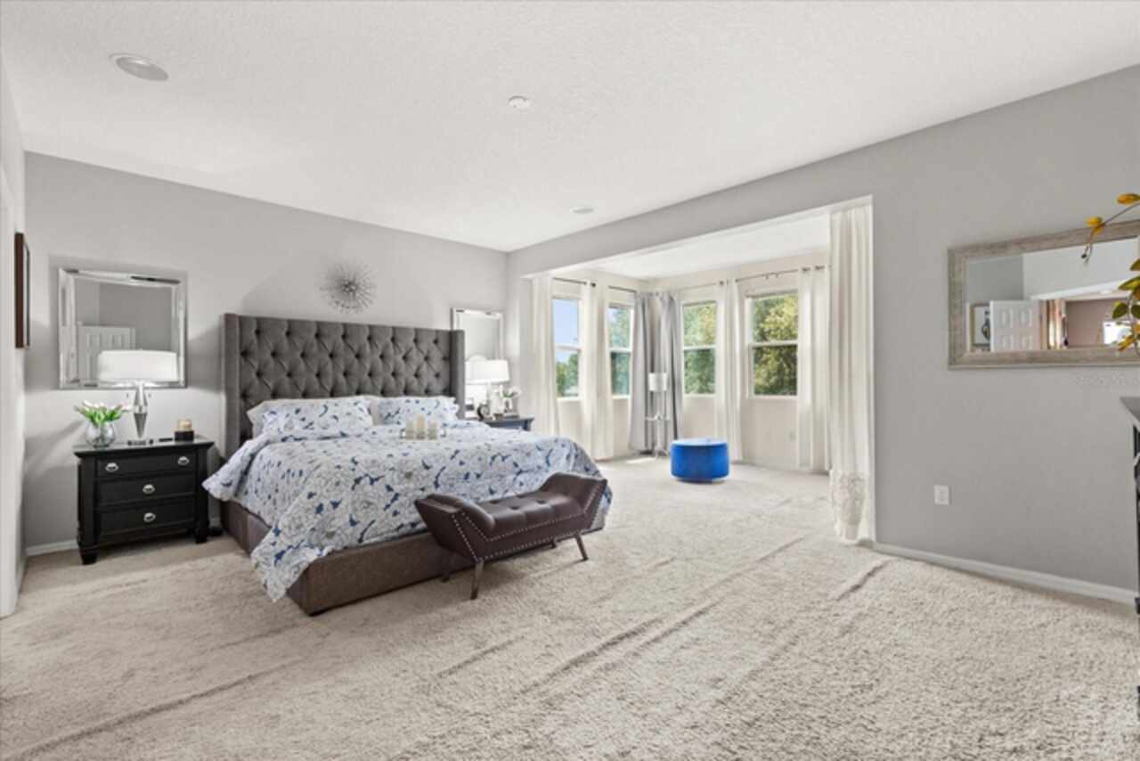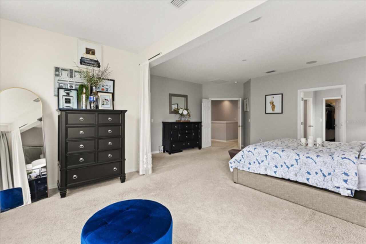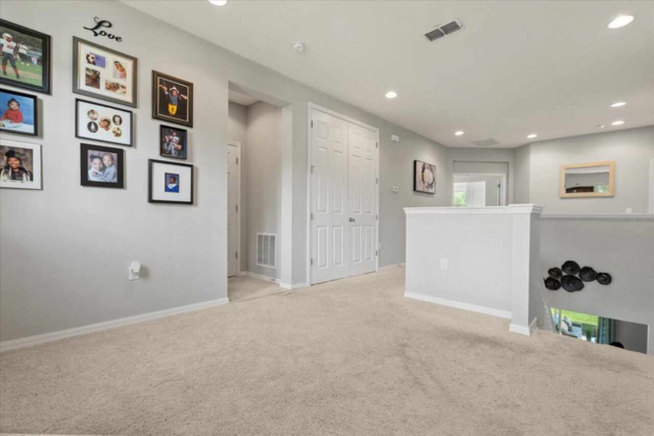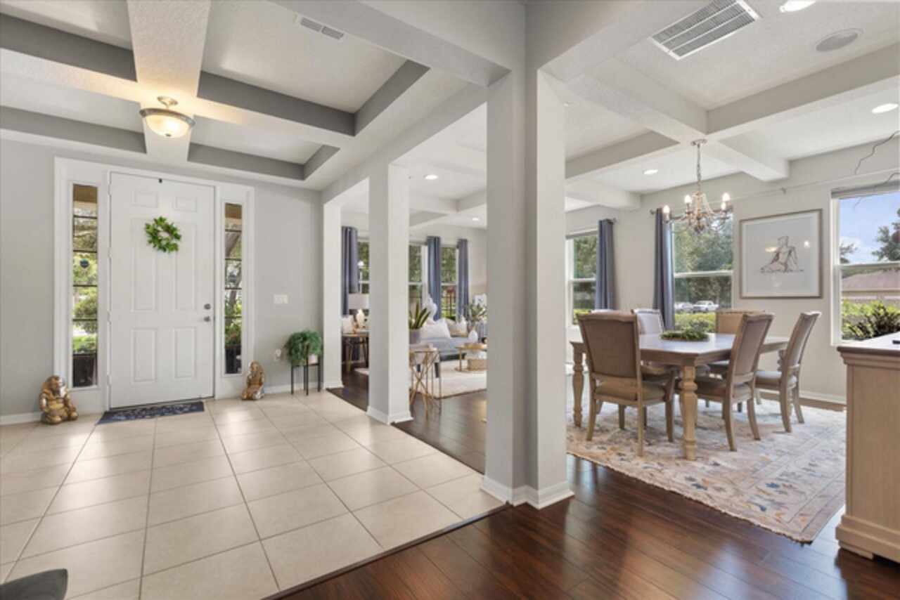 11, 000 PRICE IMPROVEMENT! Welcome to your dream home in the exclusive gated community of Oakridge, where luxury, space, and future-forward living converge. Perfectly positioned just minutes from the highly anticipated Wyld Oaks development—offering an exciting blend of residential, retail, dining, medical, and recreational amenities—this exceptional residence combines timeless elegance with modern convenience. Boasting 5 spacious bedrooms, a dedicated office with a closet and nearby half bath, and a large upstairs loft, this thoughtfully designed floor plan offers flexibility for growing families, multigenerational living, or remote work needs. The first-floor in-law suite features laminate wood flooring, an en-suite bath, and a walk-in closet—ideal for guests or extended family. Entertain in style in the formal living and dining room combo, where coffered ceilings, recessed lighting, and a stunning chandelier create a sophisticated ambiance. The open-concept kitchen is a chef’s delight, with quartz countertops, 42” solid wood cabinetry, a large island, brand-new Samsung appliances, Kenmore dishwasher, tiled backsplash, pendant and recessed lighting, touchless faucet, and a Butler’s pantry for added storage and prep space. The family room is equipped with built-in surround sound speakers (also in the primary suite), while custom blinds add both style and privacy in key spaces throughout the main floor. Retreat to the luxurious primary suite featuring double-door entry, a sitting area, two walk-in closets (one with an upgraded organizing system), and a spa-inspired en suite bath with dual vanities, quartz countertops, a remodeled dual-head shower, and private water closet. Upstairs, bedrooms two and three share a Jack-and-Jill bathroom with a private water closet and dual quartz vanities. Bedroom four features its own private en-suite with a tiled bath/shower and quartz vanity. Every bedroom includes a generously sized walk-in closet, ensuring ample storage for everyone. Enjoy Florida living year-round from the screened lanai with triple oversized sliders overlooking the serene community park, all set on an oversized corner lot with full irrigation system. Additional upgrades include: No carpet on the first floor Neutral paint throughout 2020 water heater Two Carrier HVAC heat pumps 2013 Three-car garage This meticulously maintained home offers space, luxury, and unbeatable access to the exciting future of Wyld Oaks. The Jason Dwelley Recreational Complex is also just a few minutes away, which has tennis, baseball, softball, football, playground, walking and bike trails, amphitheter and picnic areas. Don’t miss the opportunity to own in one of the area’s most sought-after gated communities. All you need to do is hire the mover!