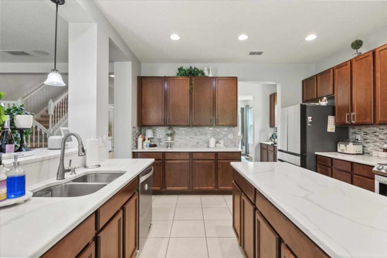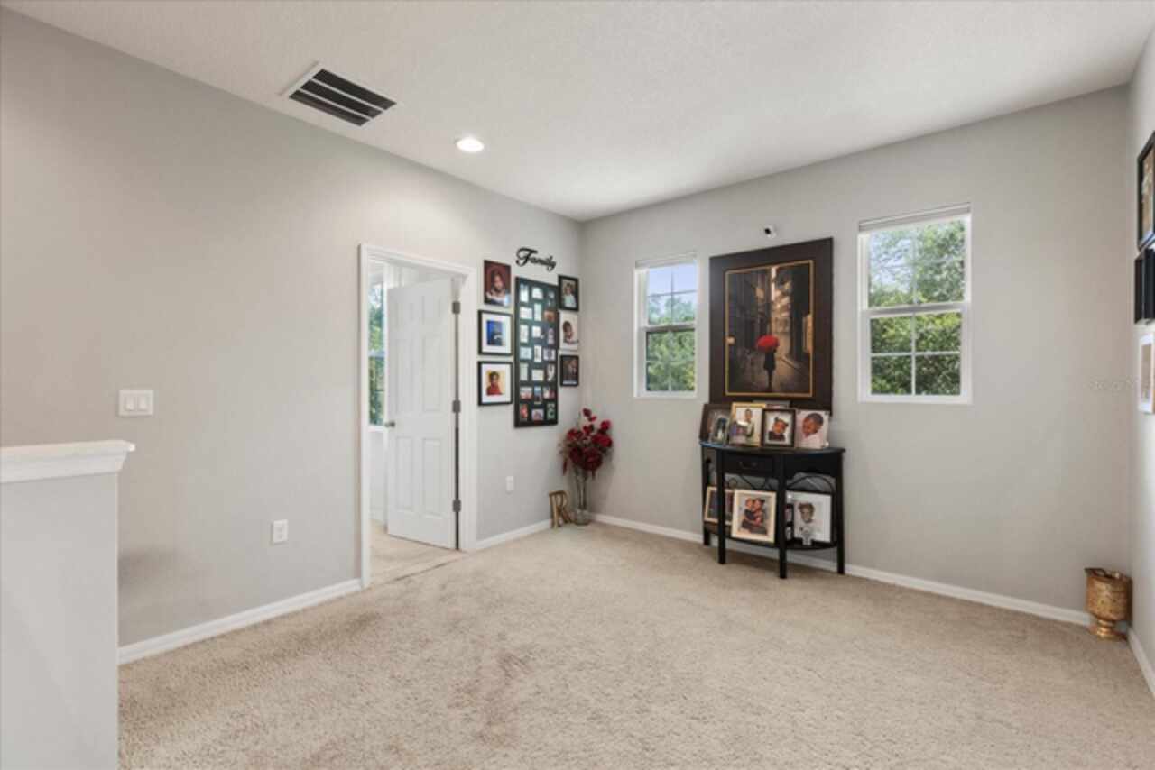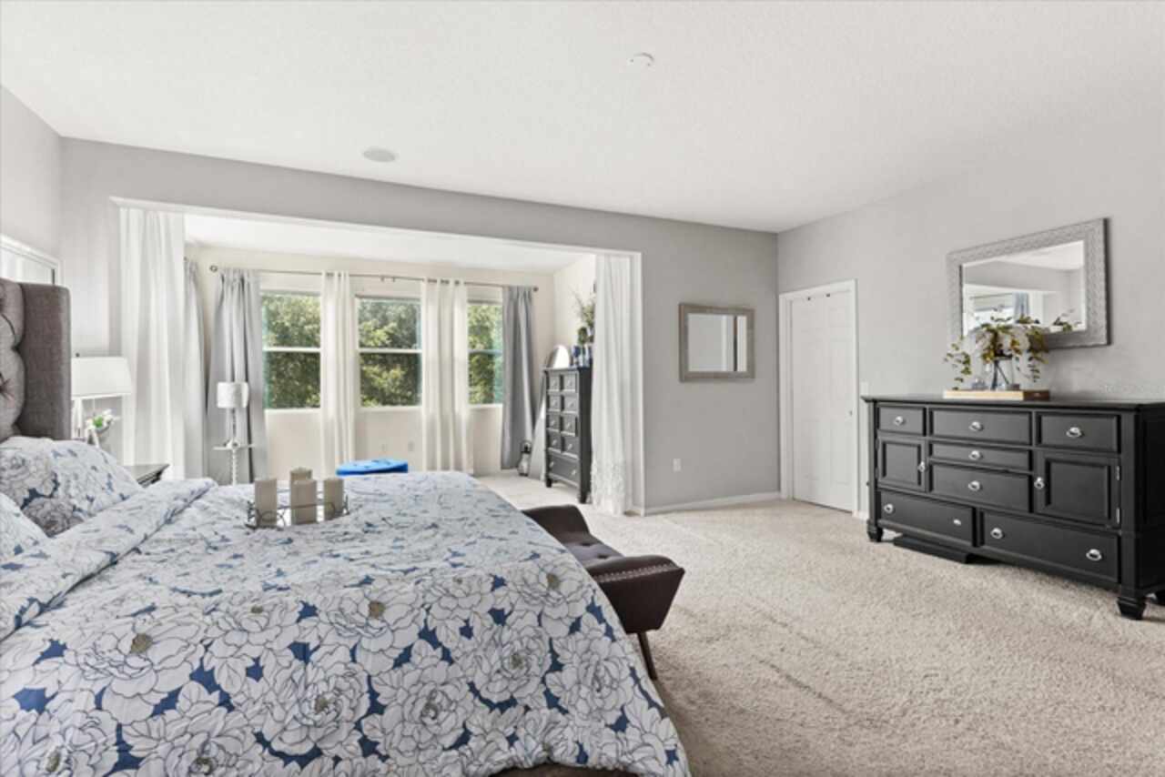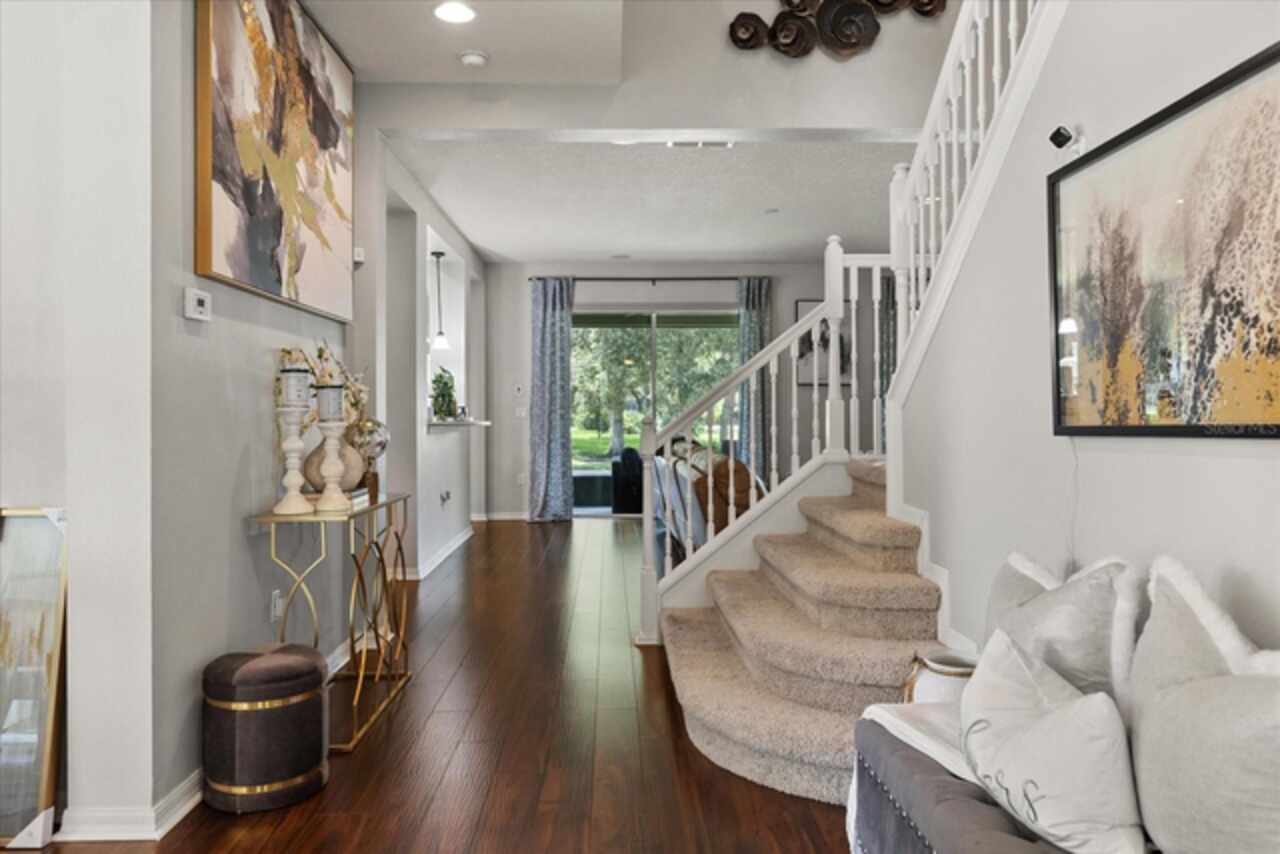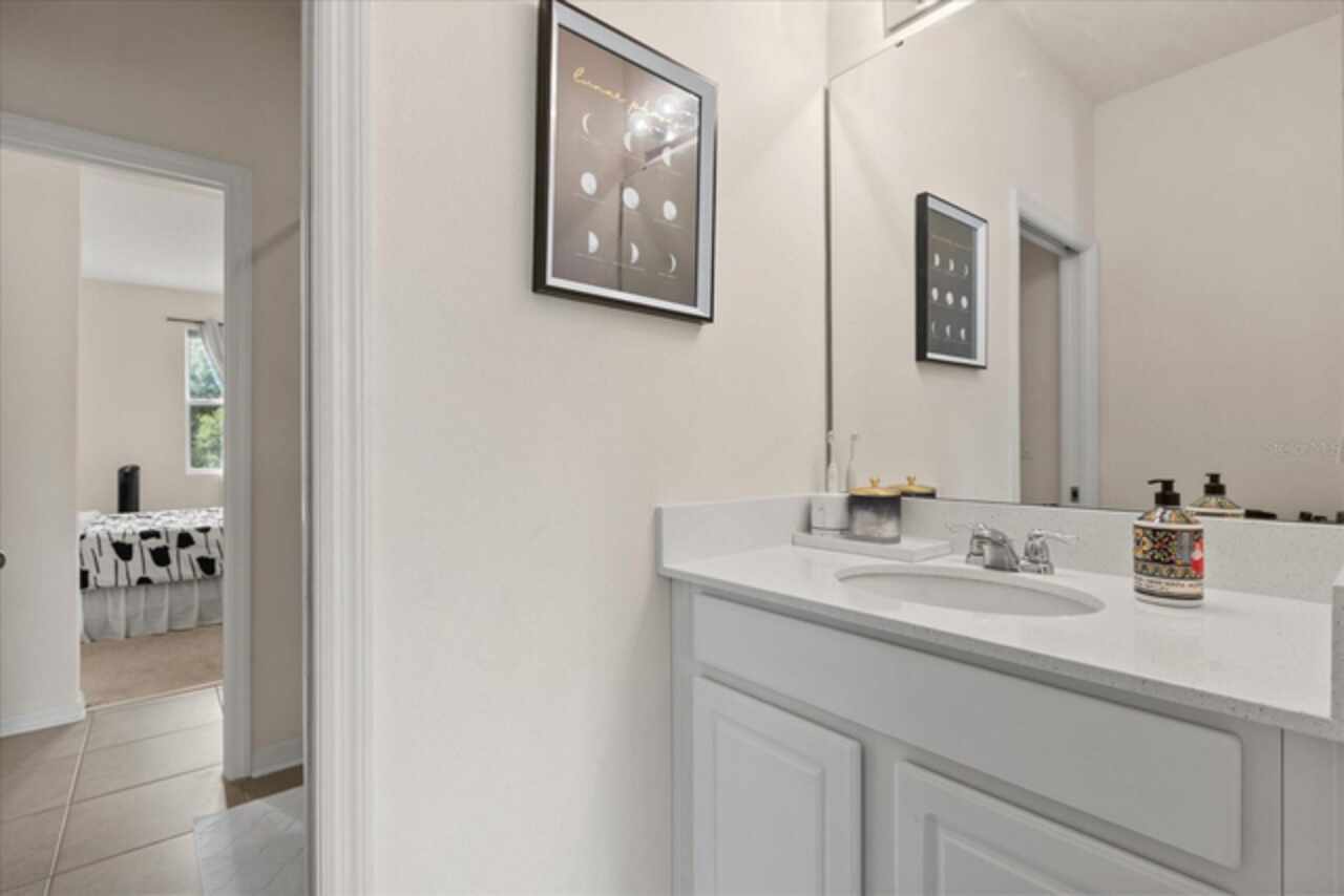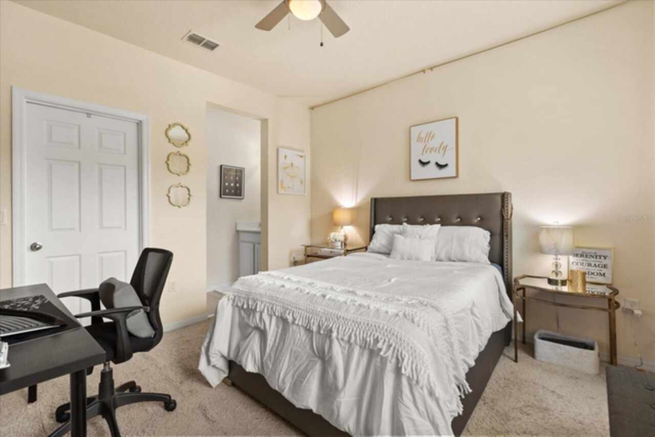 11, 000 PRICE IMPROVEMENT! Welcome to your dream home in the exclusive gated community of Oakridge, where luxury, space, and future-forward living converge. Perfectly positioned just minutes from the highly anticipated Wyld Oaks development—offering an exciting blend of residential, retail, dining, medical, and recreational amenities—this exceptional residence combines timeless elegance with modern convenience. Boasting 5 spacious bedrooms, a dedicated office with a closet and nearby half bath, and a large upstairs loft, this thoughtfully designed floor plan offers flexibility for growing families, multigenerational living, or remote work needs. The first-floor in-law suite features laminate wood flooring, an en-suite bath, and a walk-in closet—ideal for guests or extended family. Entertain in style in the formal living and dining room combo, where coffered ceilings, recessed lighting, and a stunning chandelier create a sophisticated ambiance. The open-concept kitchen is a chef’s delight, with quartz countertops, 42” solid wood cabinetry, a large island, brand-new Samsung appliances, Kenmore dishwasher, tiled backsplash, pendant and recessed lighting, touchless faucet, and a Butler’s pantry for added storage and prep space. The family room is equipped with built-in surround sound speakers (also in the primary suite), while custom blinds add both style and privacy in key spaces throughout the main floor. Retreat to the luxurious primary suite featuring double-door entry, a sitting area, two walk-in closets (one with an upgraded organizing system), and a spa-inspired en suite bath with dual vanities, quartz countertops, a remodeled dual-head shower, and private water closet. Upstairs, bedrooms two and three share a Jack-and-Jill bathroom with a private water closet and dual quartz vanities. Bedroom four features its own private en-suite with a tiled bath/shower and quartz vanity. Every bedroom includes a generously sized walk-in closet, ensuring ample storage for everyone. Enjoy Florida living year-round from the screened lanai with triple oversized sliders overlooking the serene community park, all set on an oversized corner lot with full irrigation system. Additional upgrades include: No carpet on the first floor Neutral paint throughout 2020 water heater Two Carrier HVAC heat pumps 2013 Three-car garage This meticulously maintained home offers space, luxury, and unbeatable access to the exciting future of Wyld Oaks. The Jason Dwelley Recreational Complex is also just a few minutes away, which has tennis, baseball, softball, football, playground, walking and bike trails, amphitheter and picnic areas. Don’t miss the opportunity to own in one of the area’s most sought-after gated communities. All you need to do is hire the mover!