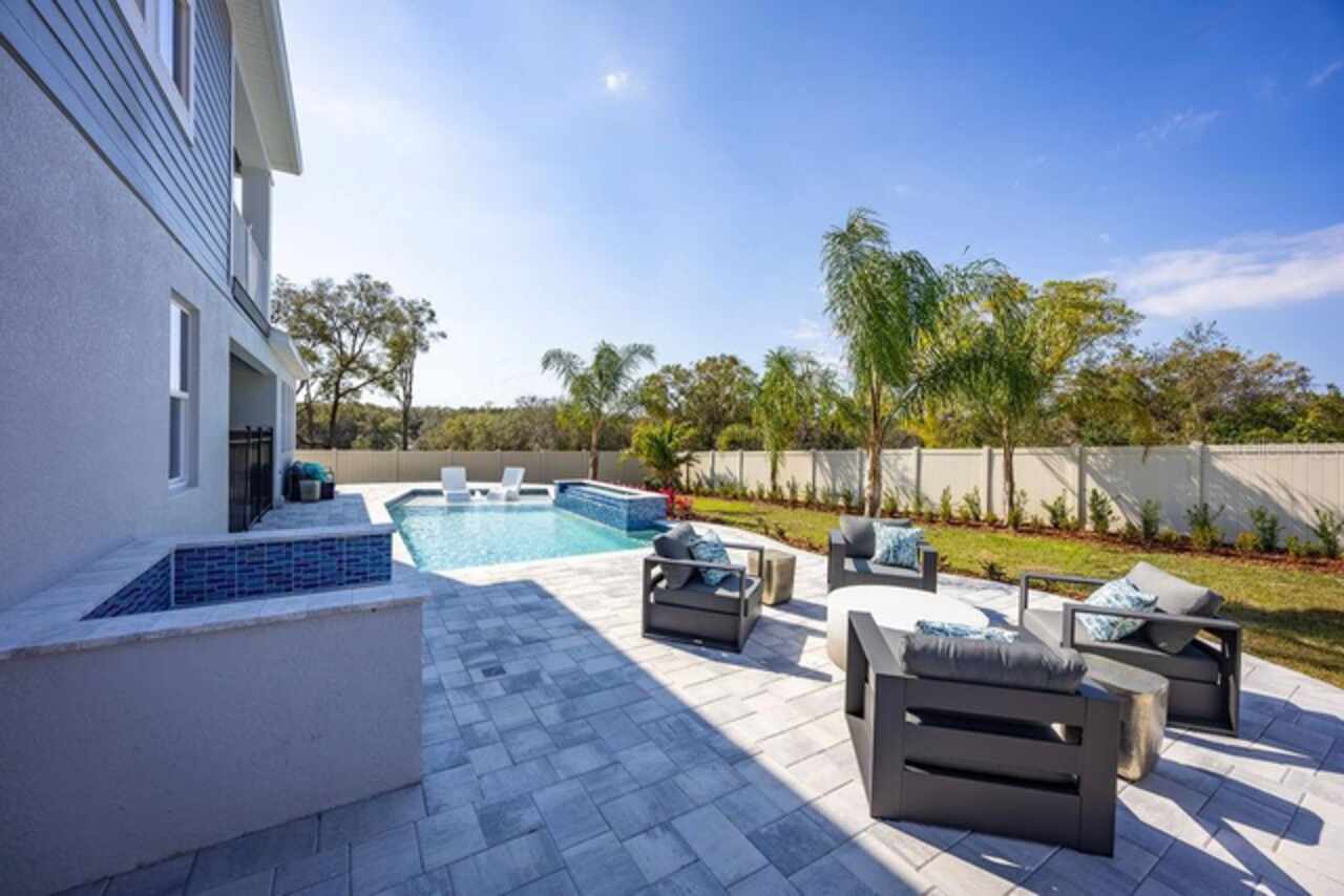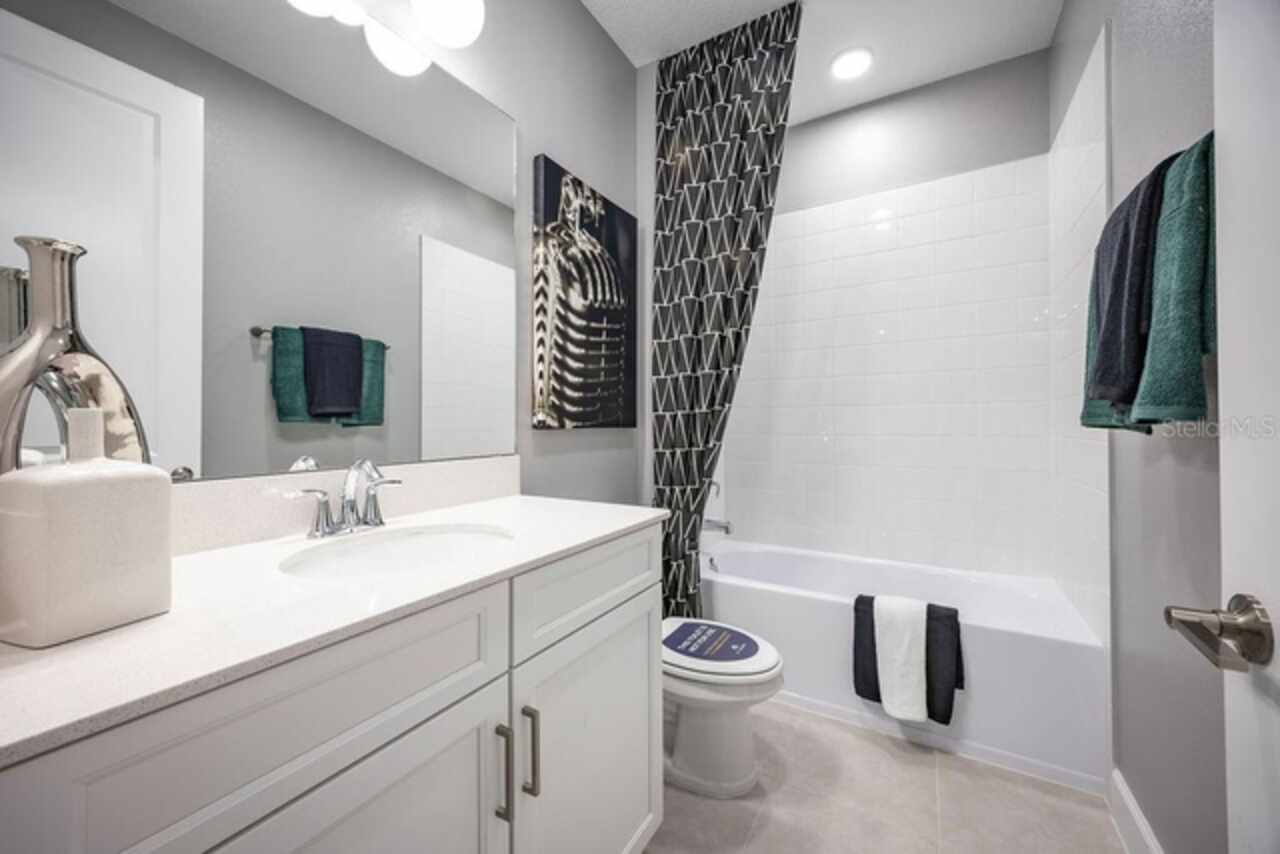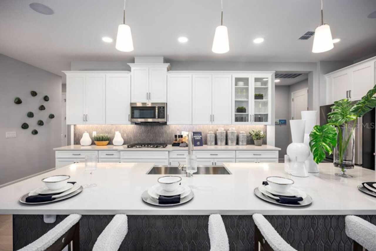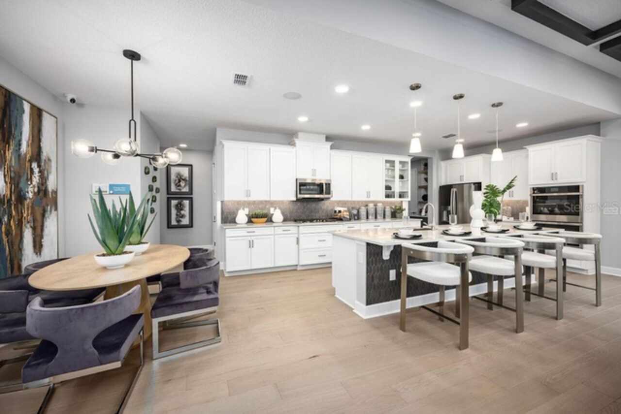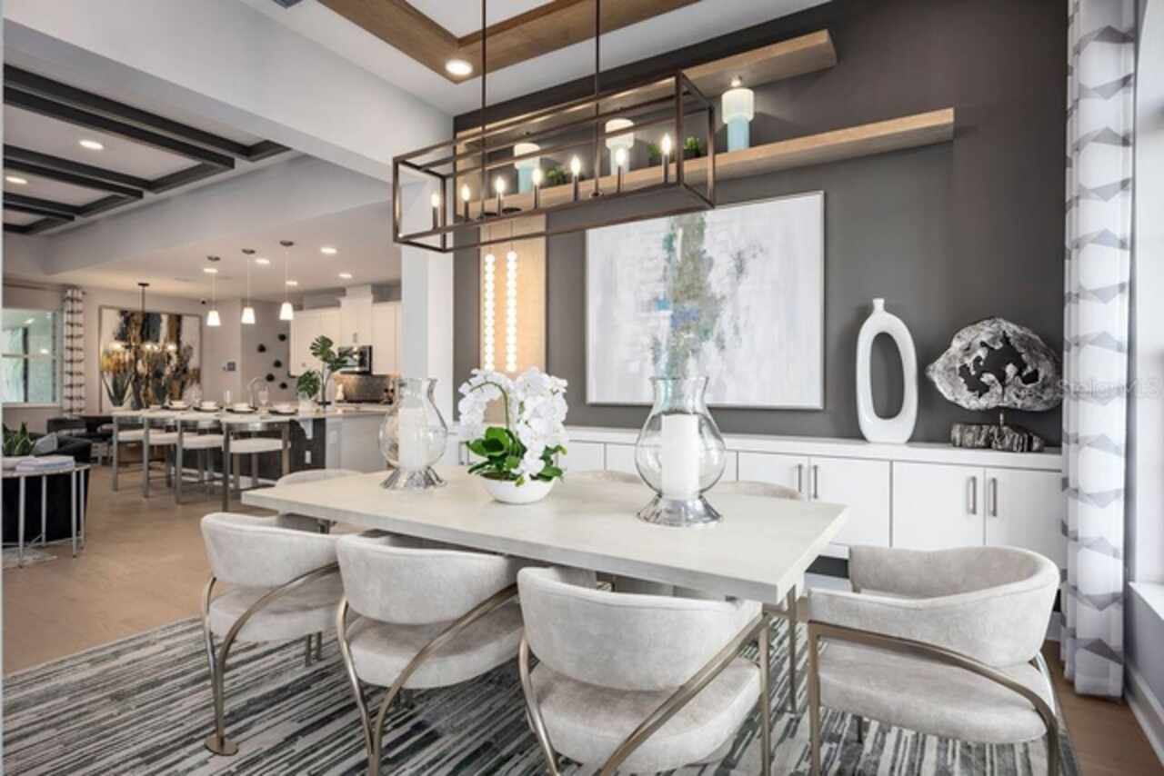 Model home available for leaseback. Welcome to this 5-bedroom, 4-bathroom model home in Apopka! Step into the foyer of this charming single family home. Notice the flex room and a formal dining room on either side of the foyer before stepping into the open-concept main living space. Your beautiful kitchen with stainless steel appliances is positioned to your immediate right, centered by a stunning island with white countertops. Access your 3-car garage through the interior door just outside the destination laundry room located on the other side of the kitchen. Walk through the family room and out onto your beautiful 16'7" x 20'7" lanai and pool area with pavers all around. Your owner’s bedroom offers views of your pool and backyard! Your en-suite owner’s bathroom features two separate vanities, a shower, a soaking tub, an extensive walk-in closet, and a private toilet room. Head upstairs after dinner to enjoy a game night in the bonus room. The fifth and final bedroom and full bathroom are just off the loft. A door in the bonus room leads out to the 11'9" x 12'2" cover balcony.*** This model home comes FURNISHED and is available for leaseback***