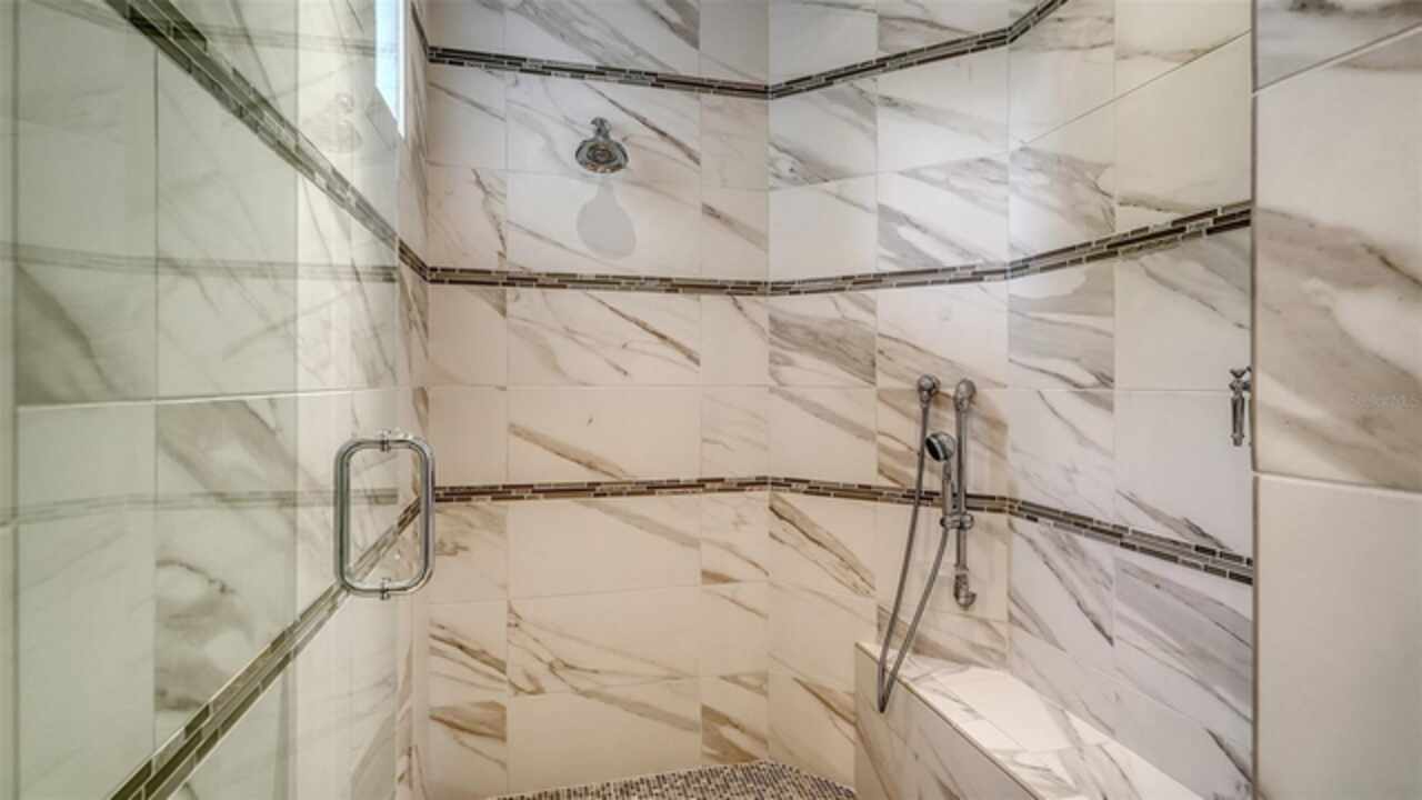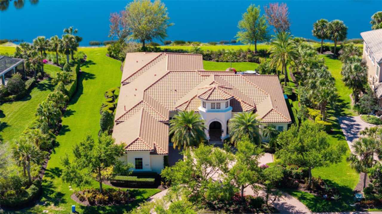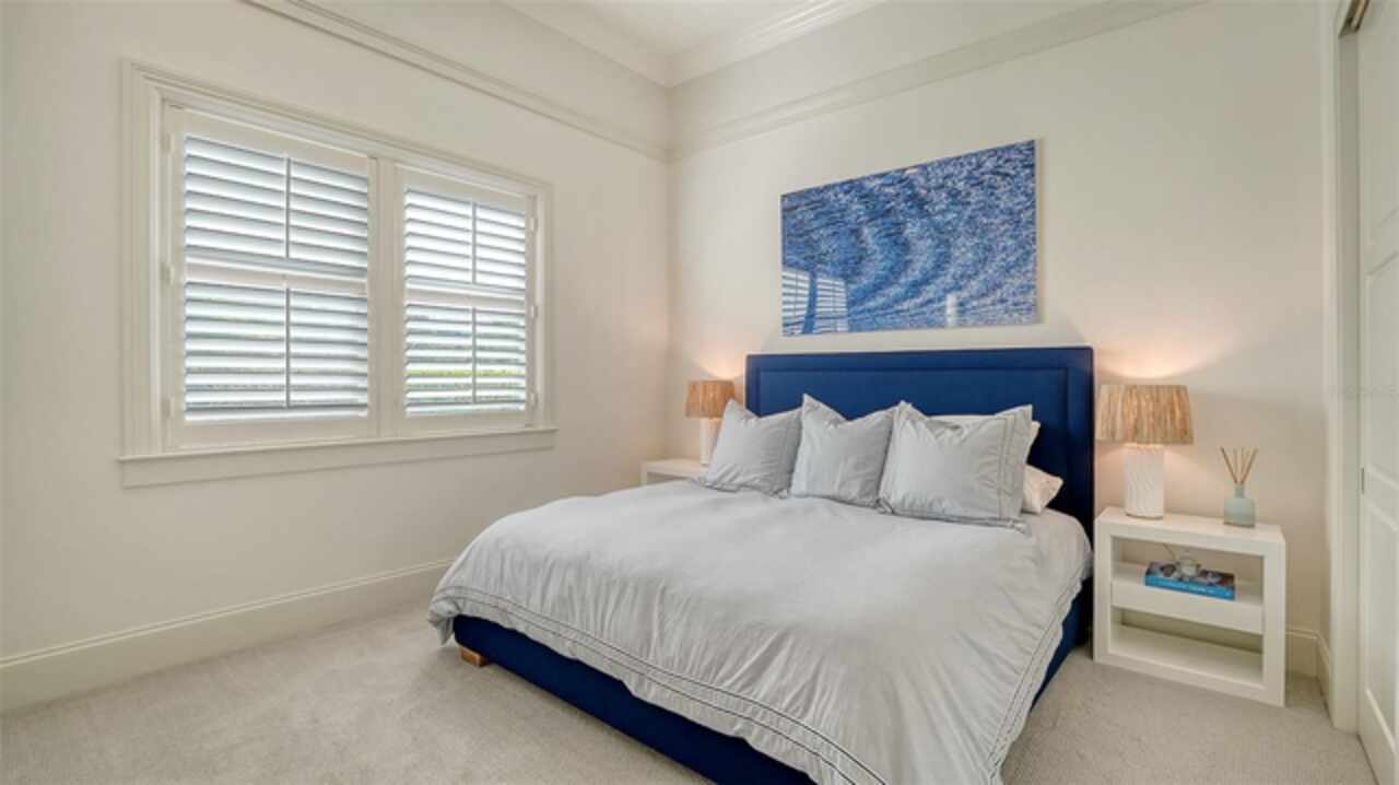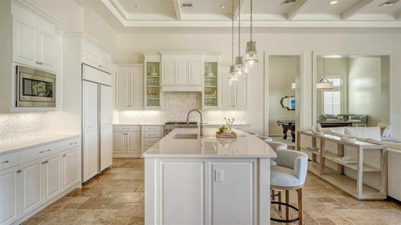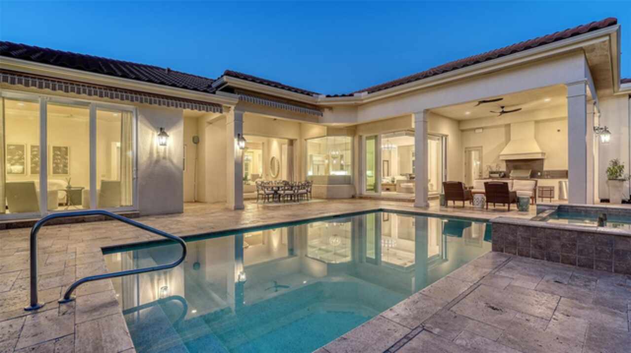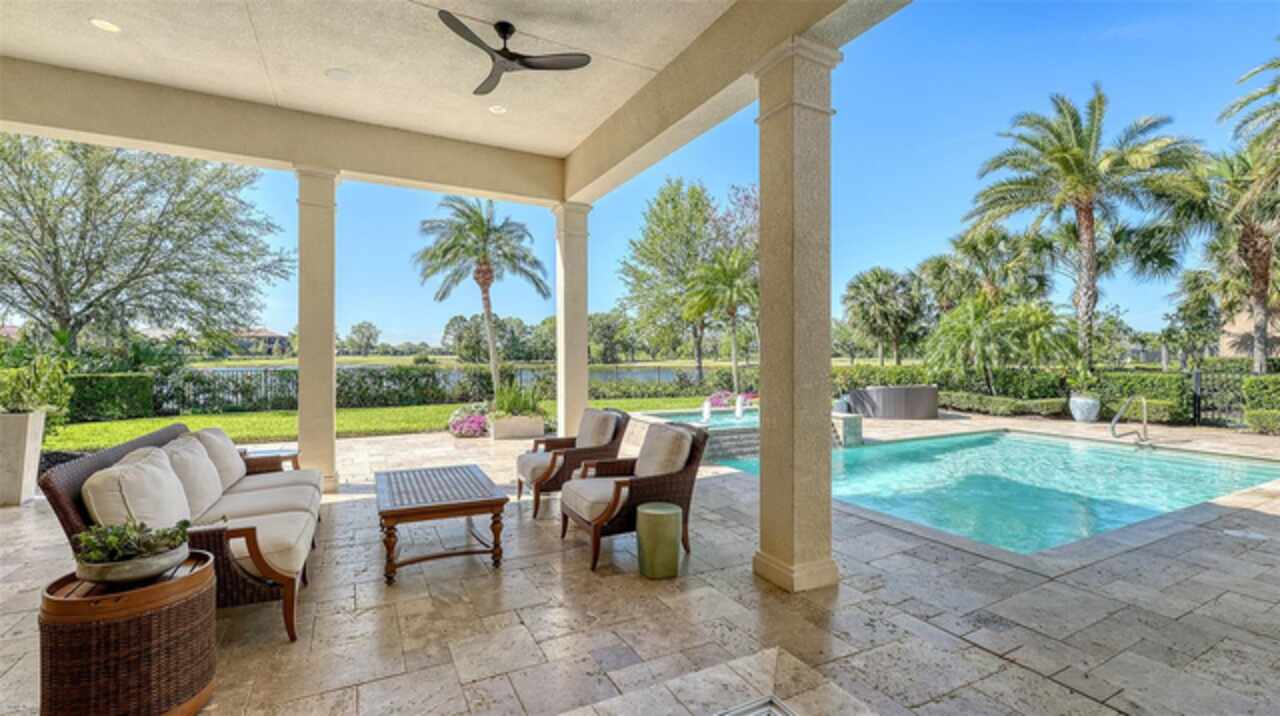 Timeless elegance meets modern luxury in this stunning 4-bedroom, 4.5-bath CERTIFIED FLORIDA GREEN custom home, situated on a private, fenced lot of over half an acre in the prestigious “Estates” section of Sarasota’s finest, The Founders Club. The Founders Club is an award-winning private member-owned golf club community offering 24 hour guarded gate access, just 262 homes nestled along 700 acres of lakes, fairways, and nature preserves. Originally a London Bay showcase model, the owners have transformed the residence into a stunning serene, spa-inspired retreat with one of Sarasota’s top designers, Angela Rodriguez Interiors. Upon entering the grand iron glass double doors, you are immediately captivated by the magnificent setting of the property and its breathtaking views looking out to the pool, pond, preserve and the club’s famous Robert Trent Jones Jr golf course. A dramatic courtyard entry, enhanced by refreshed landscaping and ambient lighting, leads you in through the intricate architectural elements including coffered ceilings, elegant crown moldings, 8-inch baseboards, Phillip Jeffries wall coverings, Serena and Lily décor accents, and chiseled travertine flooring that extends seamlessly to the outdoor living areas through 10-foot disappearing corner sliders. A chef’s kitchen, complete with Cambria quartz countertops, a Calacatta Gold backsplash, cabinet-front Monogram appliances, remote-controlled shades, and a built-in banquette with a custom-crafted wood table (that does convey with the home) flows effortlessly into the great family room. A dedicated dining room and versatile bonus/billiard room add character and function, while the private office supports today’s lifestyle needs. The serene owner’s suite occupies its own private wing. This luxurious space includes a cozy sitting area, expansive walk-in closet, freestanding soaking tub, oversized rain shower, double quartz vanity with makeup station, and refined designer finishes. Outdoors enjoy a true resort-style sanctuary with two covered lanais, an open-air pool, a raised spa with fountains, and a fully equipped outdoor kitchen. Retractable awnings extend shade over the veranda for relaxed dining and entertaining. Throughout the home, fresh paint, statement walls, tongue-and-groove ceilings, and mercury glass details add texture and polish. Additional features include 3 new HVAC systems installed this year, motorized blinds and plantation shutters throughout, hurricane impact windows and sliders, an oversized 3-car motor court garage with temp-controlled storage space. Every inch of this home has been thoughtfully designed to impress not only beauty but peace of mind and energy efficiency, as this home offers a suite of smart and energy-efficient upgrades: a new whole-house gas water heater, Control4 smart lighting and sound, a Halo water purification system, a full-house Generac generator, hurricane impact windows and sliders helping earn its status as a Florida Green Certified Home issued by the Florida Green Building Coalition. Residents of The Founders Club enjoy access to tennis courts, a sports court, playground, and community center. This extraordinary residence exudes refined sophistication, all within a short drive to Sarasota International Airport, shopping, dining and Sarasota’s rich art’s culture such as the Ringling Museum, Marie Selby Gardens, Van Wezel Performing Art Hall, Sarasota Orchestra, Asolo Theater.