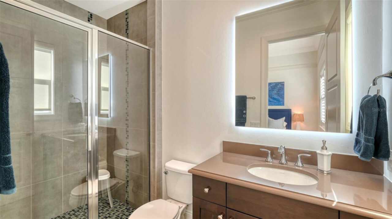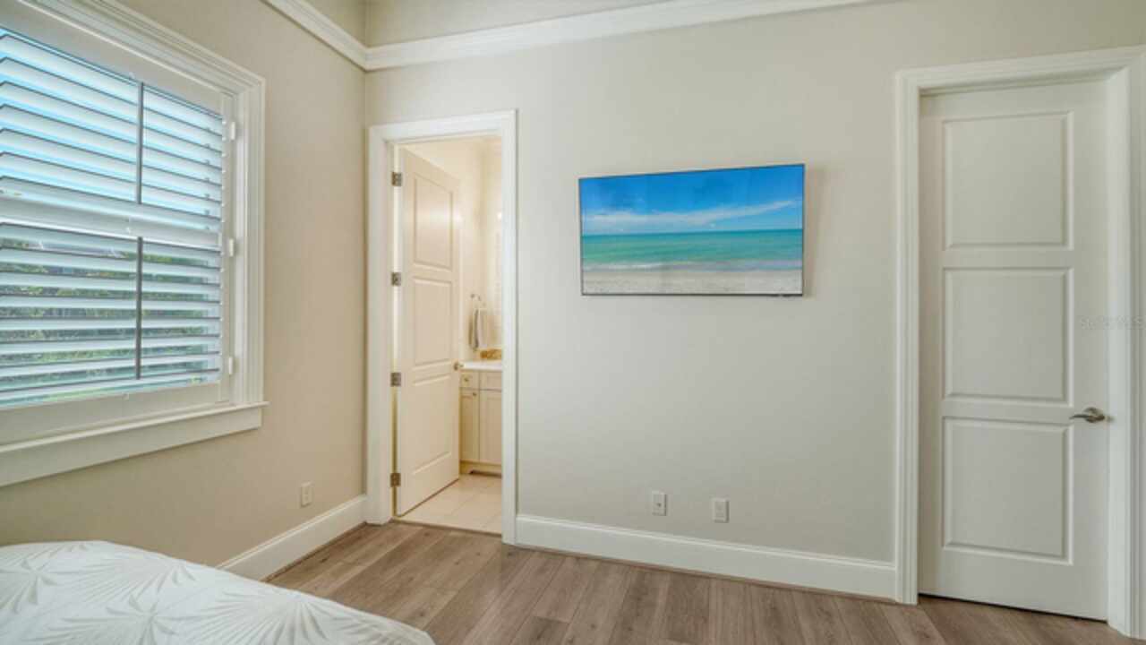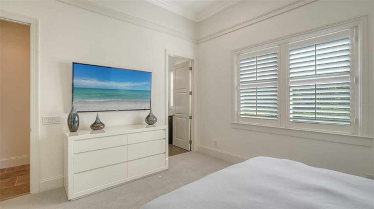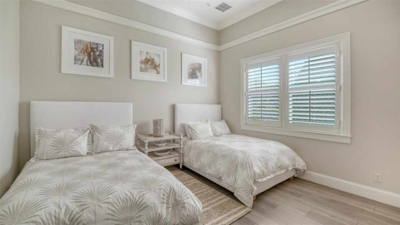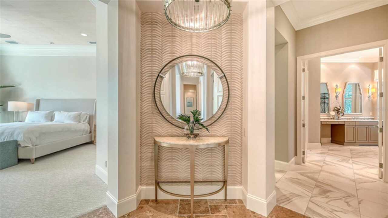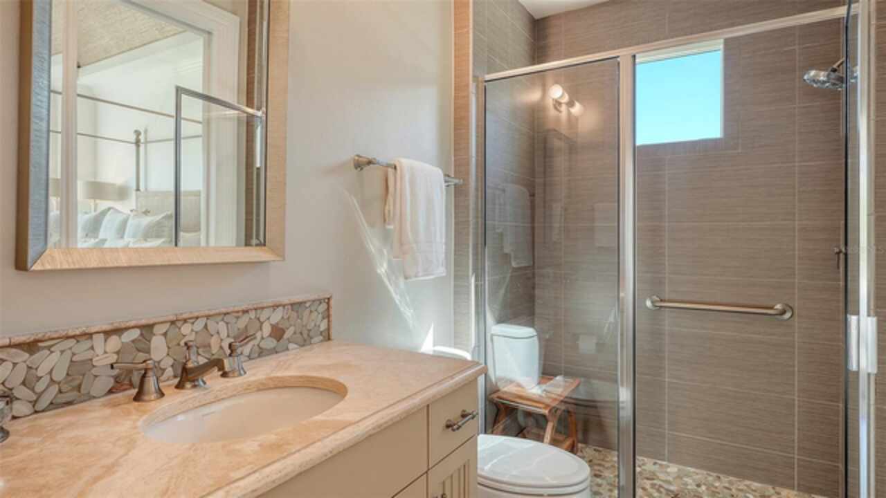 Timeless elegance meets modern luxury in this stunning 4-bedroom, 4.5-bath CERTIFIED FLORIDA GREEN custom home, situated on a private, fenced lot of over half an acre in the prestigious “Estates” section of Sarasota’s finest, The Founders Club. The Founders Club is an award-winning private member-owned golf club community offering 24 hour guarded gate access, just 262 homes nestled along 700 acres of lakes, fairways, and nature preserves. Originally a London Bay showcase model, the owners have transformed the residence into a stunning serene, spa-inspired retreat with one of Sarasota’s top designers, Angela Rodriguez Interiors. Upon entering the grand iron glass double doors, you are immediately captivated by the magnificent setting of the property and its breathtaking views looking out to the pool, pond, preserve and the club’s famous Robert Trent Jones Jr golf course. A dramatic courtyard entry, enhanced by refreshed landscaping and ambient lighting, leads you in through the intricate architectural elements including coffered ceilings, elegant crown moldings, 8-inch baseboards, Phillip Jeffries wall coverings, Serena and Lily décor accents, and chiseled travertine flooring that extends seamlessly to the outdoor living areas through 10-foot disappearing corner sliders. A chef’s kitchen, complete with Cambria quartz countertops, a Calacatta Gold backsplash, cabinet-front Monogram appliances, remote-controlled shades, and a built-in banquette with a custom-crafted wood table (that does convey with the home) flows effortlessly into the great family room. A dedicated dining room and versatile bonus/billiard room add character and function, while the private office supports today’s lifestyle needs. The serene owner’s suite occupies its own private wing. This luxurious space includes a cozy sitting area, expansive walk-in closet, freestanding soaking tub, oversized rain shower, double quartz vanity with makeup station, and refined designer finishes. Outdoors enjoy a true resort-style sanctuary with two covered lanais, an open-air pool, a raised spa with fountains, and a fully equipped outdoor kitchen. Retractable awnings extend shade over the veranda for relaxed dining and entertaining. Throughout the home, fresh paint, statement walls, tongue-and-groove ceilings, and mercury glass details add texture and polish. Additional features include 3 new HVAC systems installed this year, motorized blinds and plantation shutters throughout, hurricane impact windows and sliders, an oversized 3-car motor court garage with temp-controlled storage space. Every inch of this home has been thoughtfully designed to impress not only beauty but peace of mind and energy efficiency, as this home offers a suite of smart and energy-efficient upgrades: a new whole-house gas water heater, Control4 smart lighting and sound, a Halo water purification system, a full-house Generac generator, hurricane impact windows and sliders helping earn its status as a Florida Green Certified Home issued by the Florida Green Building Coalition. Residents of The Founders Club enjoy access to tennis courts, a sports court, playground, and community center. This extraordinary residence exudes refined sophistication, all within a short drive to Sarasota International Airport, shopping, dining and Sarasota’s rich art’s culture such as the Ringling Museum, Marie Selby Gardens, Van Wezel Performing Art Hall, Sarasota Orchestra, Asolo Theater.