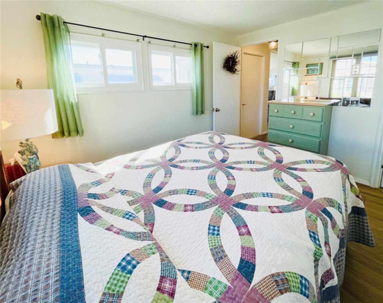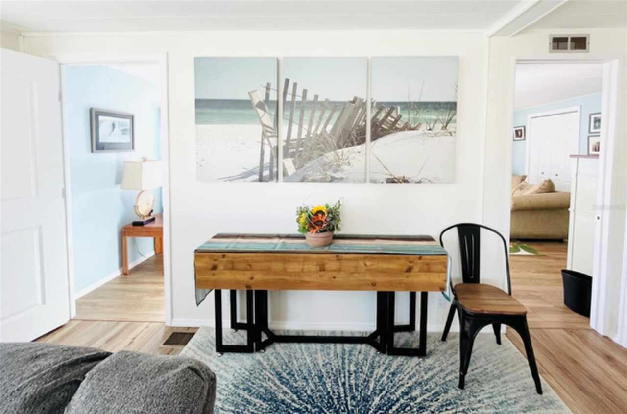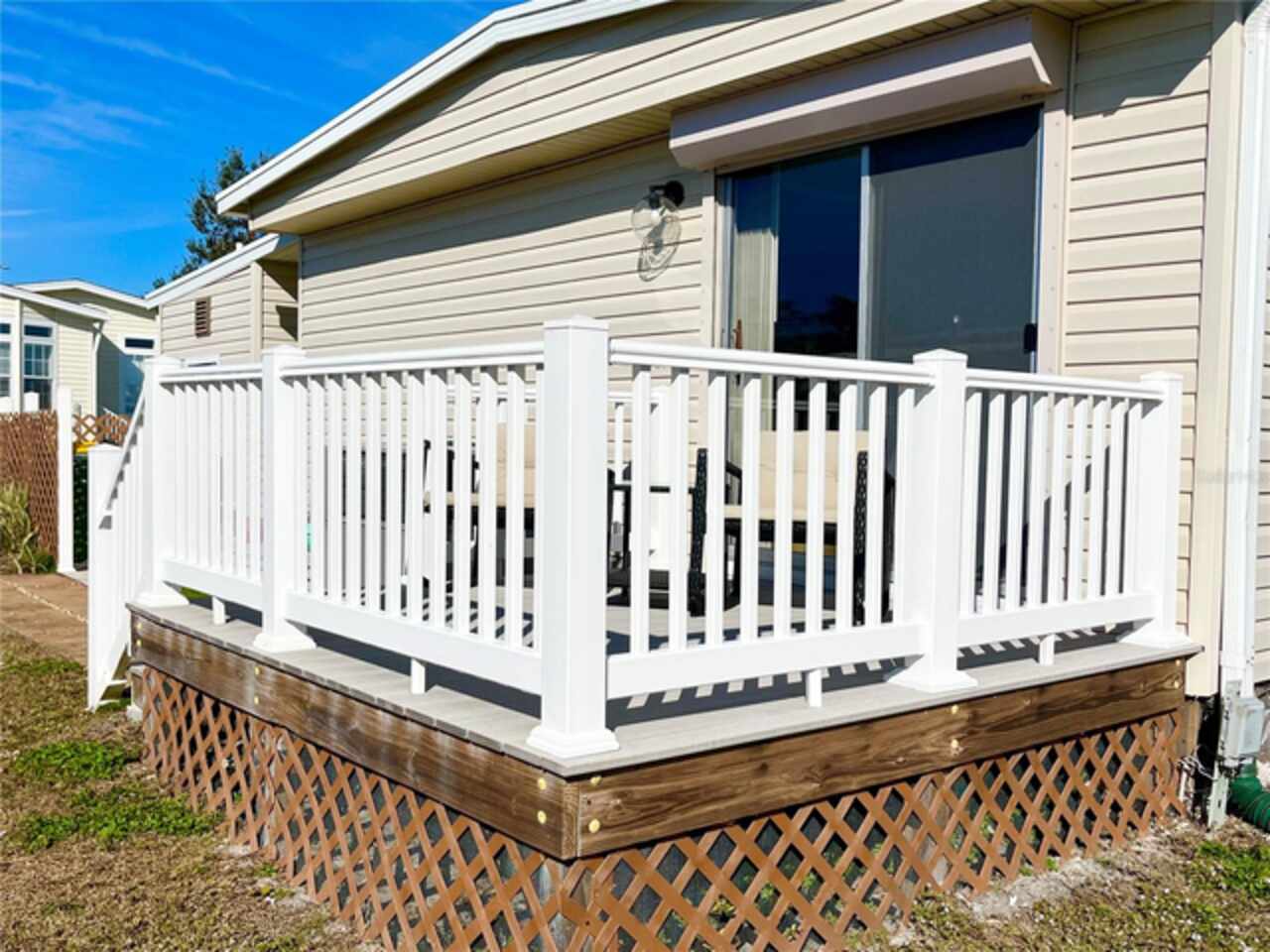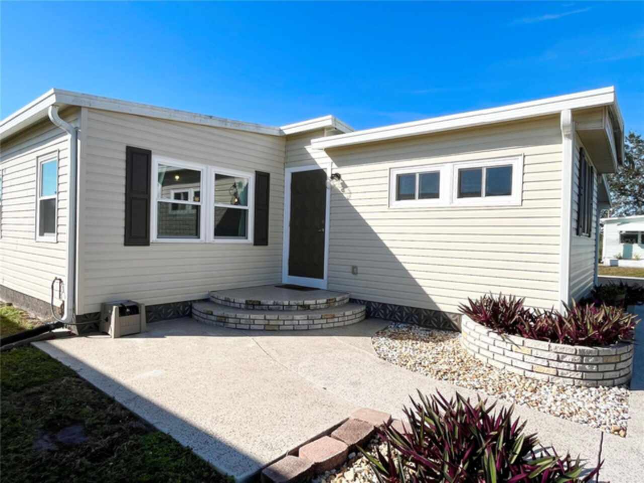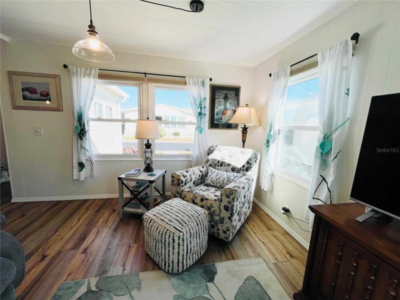 So many pluses to this home! Relax on the back DECK overlooking views of the CANAL and FOUNTAIN on this CORNER lot UPDATED open concept TURNKEY coastal beach style home. Whew that's a lot of pluses and more to add! Welcome your guest thru the epoxy front patio area or from the epoxy drive carport into a tranquil open concept with the spacious kitchen overlooking the living and dining room. The first thing that catches your eye in this remodeled kitchen is the extra large island and gorgeous iridescent glass backsplash. Extra island seating gives ample space for entertaining guest and tackling your favorite recipes. Final touches include the white shaker cabinets, a farm sink and stainless appliances. The living room has comfortable furnishings with 5 places to recline and a flat screen TV. The dining space is quaint and the farm style table is versatile allowing seating for 6 or drop a side and use it as a desk space or buffet serving table. The primary suite is so roomy that there is a king bed set and a cozy living space with love seat recliner and TV. Additionally there are 3 closets, access to the full bath and sliders to the private deck space. The main bathroom has been updated and the farm bench gives that homey touch. The guest bedroom has a queen bed and half bath. The washer and dryer, water heater and utility sink are housed in the 144sf shed that gives plenty of room for additional storage space. Updates include: Galv Metal Roof Over 2018, New carport 2018, Vinyl siding added 2018, Double pane windows approx 2021, HVAC 2011 with replaced blower motor, Vapor barrier was updated and 10 pillars. Kitchen opened to main living and remodeled 2018, Smart core engineered pro luxury vinyl flooring throughout main living-sleeping areas and 3/4" plywood subfloors 2018, Bathrooms have concrete vinyl flooring, Main bathroom remodeled 2018 with access to primary bedroom and main living area. Drywall in parts of living room/bathroom and guest bedroom. Water lines are copper with shutoffs, and the sewer line is original. The gated 90 acre community boast a low maintenance fee with its vast amenities starting with the spacious Clubhouse outfitted with a full commercial cook kitchen, event stage, audio/visual, dance floor, state of the art fitness room, activities hall, library with books/movies/puzzles and a pool table. Outside recreation includes an extra large heated pool with a handicap ramp, a spacious kidney shaped hot tub, ample umbrella tables and lounge chairs and updated shower rooms. Oak trees shade the beautiful park area, picnic tables and a community grill. Additional amenities to enjoy are the community putt putt course, bocce ball, ping pong, horse shoes and corn hole. Oakwood Manor is a vibrant community with numerous social events and activities. Conveniently located adjacent to Legacy Trail and 12 newer pickle ball courts. Just a short drive to our crystal sand beaches, downtown area, the marina, fishing pier, local golf courses, shopping, variety of restaurants, the museum, SRQ airport, SMH and Doctors hospitals. Please note that Oakwood is a 55+, no pet, no motorcycle Park.