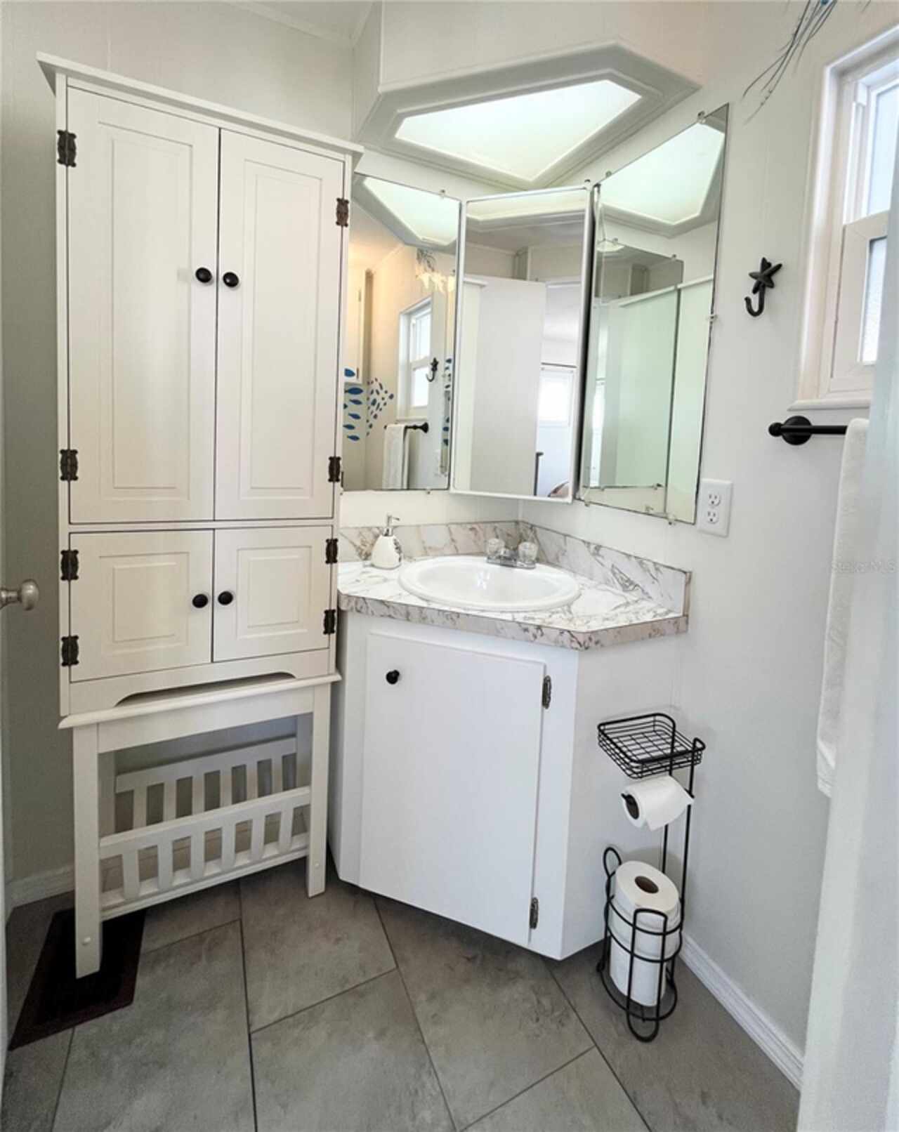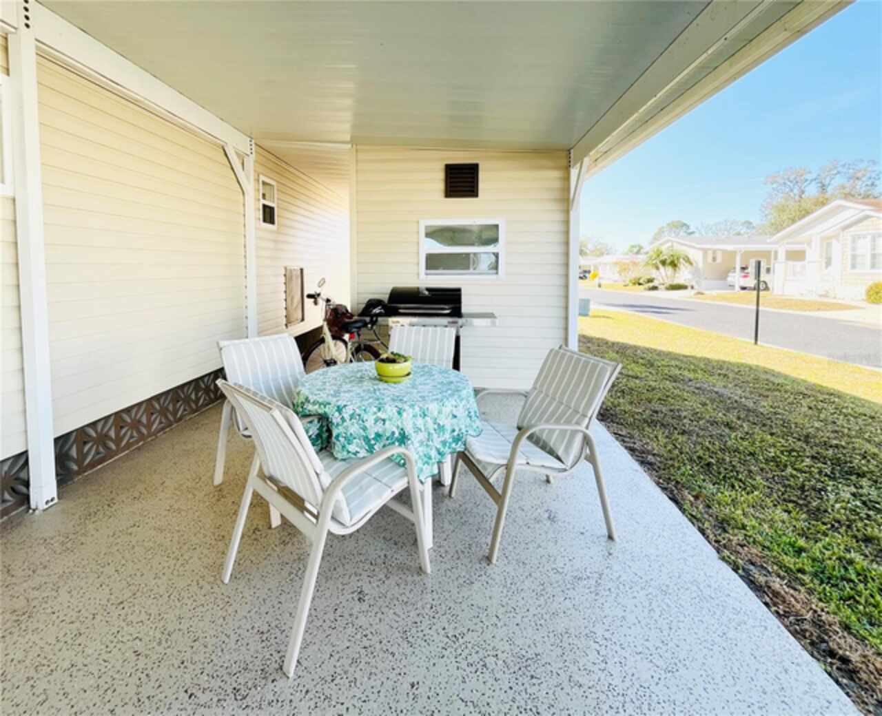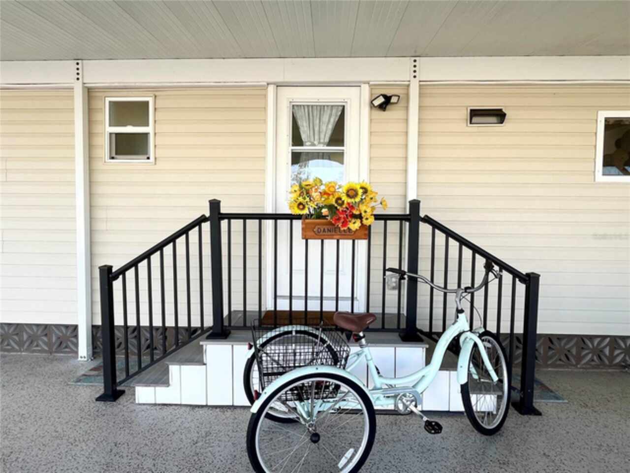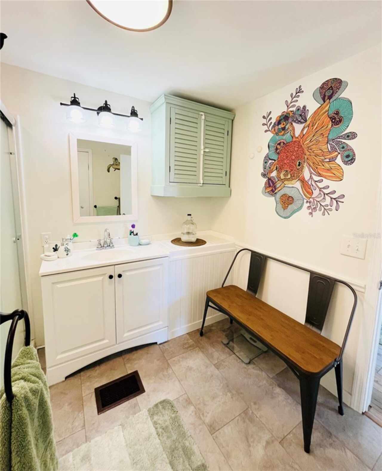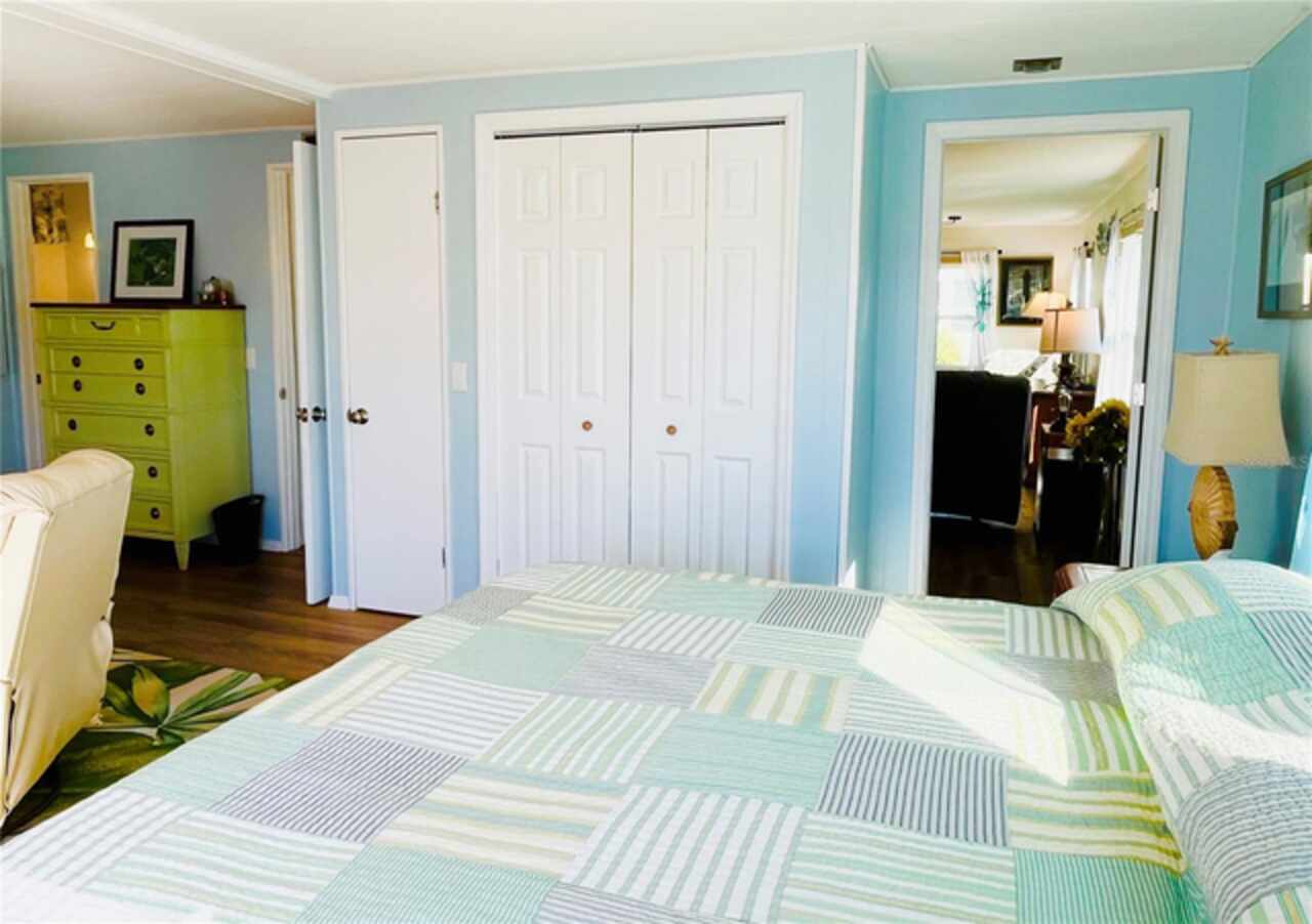 So many pluses to this home! Relax on the back DECK overlooking views of the CANAL and FOUNTAIN on this CORNER lot UPDATED open concept TURNKEY coastal beach style home. Whew that's a lot of pluses and more to add! Welcome your guest thru the epoxy front patio area or from the epoxy drive carport into a tranquil open concept with the spacious kitchen overlooking the living and dining room. The first thing that catches your eye in this remodeled kitchen is the extra large island and gorgeous iridescent glass backsplash. Extra island seating gives ample space for entertaining guest and tackling your favorite recipes. Final touches include the white shaker cabinets, a farm sink and stainless appliances. The living room has comfortable furnishings with 5 places to recline and a flat screen TV. The dining space is quaint and the farm style table is versatile allowing seating for 6 or drop a side and use it as a desk space or buffet serving table. The primary suite is so roomy that there is a king bed set and a cozy living space with love seat recliner and TV. Additionally there are 3 closets, access to the full bath and sliders to the private deck space. The main bathroom has been updated and the farm bench gives that homey touch. The guest bedroom has a queen bed and half bath. The washer and dryer, water heater and utility sink are housed in the 144sf shed that gives plenty of room for additional storage space. Updates include: Galv Metal Roof Over 2018, New carport 2018, Vinyl siding added 2018, Double pane windows approx 2021, HVAC 2011 with replaced blower motor, Vapor barrier was updated and 10 pillars. Kitchen opened to main living and remodeled 2018, Smart core engineered pro luxury vinyl flooring throughout main living-sleeping areas and 3/4" plywood subfloors 2018, Bathrooms have concrete vinyl flooring, Main bathroom remodeled 2018 with access to primary bedroom and main living area. Drywall in parts of living room/bathroom and guest bedroom. Water lines are copper with shutoffs, and the sewer line is original. The gated 90 acre community boast a low maintenance fee with its vast amenities starting with the spacious Clubhouse outfitted with a full commercial cook kitchen, event stage, audio/visual, dance floor, state of the art fitness room, activities hall, library with books/movies/puzzles and a pool table. Outside recreation includes an extra large heated pool with a handicap ramp, a spacious kidney shaped hot tub, ample umbrella tables and lounge chairs and updated shower rooms. Oak trees shade the beautiful park area, picnic tables and a community grill. Additional amenities to enjoy are the community putt putt course, bocce ball, ping pong, horse shoes and corn hole. Oakwood Manor is a vibrant community with numerous social events and activities. Conveniently located adjacent to Legacy Trail and 12 newer pickle ball courts. Just a short drive to our crystal sand beaches, downtown area, the marina, fishing pier, local golf courses, shopping, variety of restaurants, the museum, SRQ airport, SMH and Doctors hospitals. Please note that Oakwood is a 55+, no pet, no motorcycle Park.
