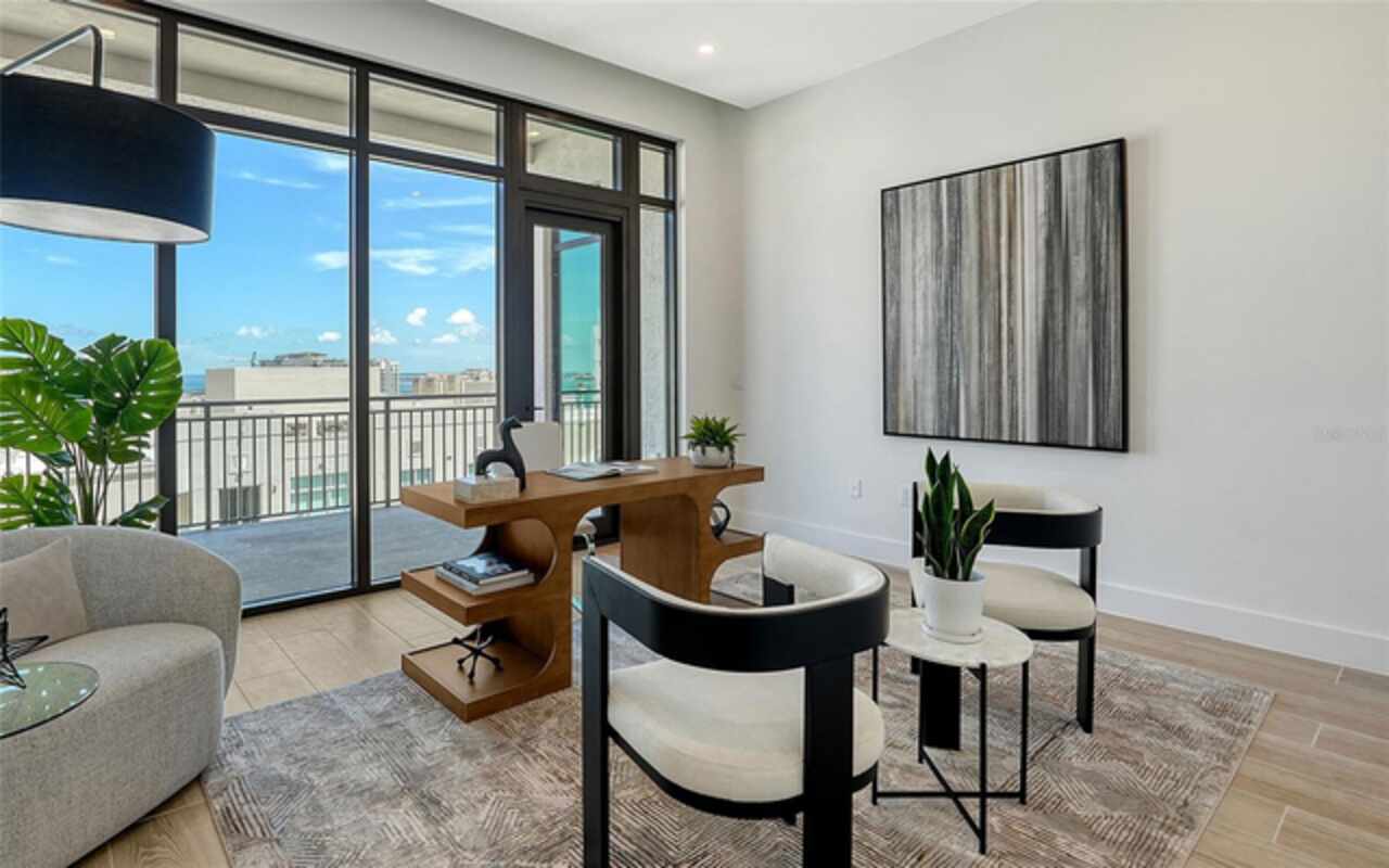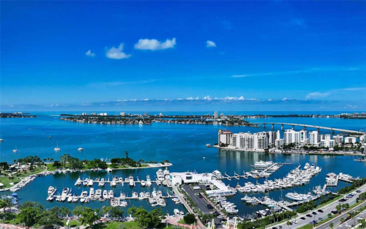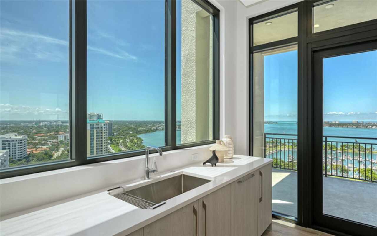 Penthouse Collection residence on the 16th floor of the newly-built DeMarcay, offering sky-high views of the city, Sarasota Bay, Big Pass, and beyond to the Gulf. Best location in the city by the intersection of Main Street and Palm Avenue. Walk to art galleries, restaurants, boutiques, theaters, farmers’ market, city marina, wellness services, live music, and all downtown Sarasota amenities. Only three miles over the Ringling Bridge to St. Armands Circle and Lido Beach. DeMarcay stands alone in Sarasota for raising the amenities and pool to such impressive heights. Residents have exclusive access to a state-of-the-art fitness center and club lounge, as well as an outdoor kitchen, sparkling pool and expansive bi-level terrace on the 18th floor, providing 360-degree vistas of Sarasota’s breathtaking scenery. Located on the 16th floor bayside, this elegant 3, 407-square-foot residence has three private bedroom suites, an office/den, a powder room, an open living area, laundry facilities, and a private bayfront balcony. Volume ceilings and large windows maximize views and natural light throughout. The gourmet kitchen showcases imported Italian cabinetry, quartz countertops, a Miele five-burner gas cooktop, and seamlessly integrated Miele appliances. The primary suite offers a spa-inspired ensuite bath featuring designer Italian cabinets, porcelain undermount sinks, an elegant soaking tub, and a spacious walk-in shower. Residents enjoy 24/7 access to dedicated on-site staff for personalized services. The DeMarcay is an 18-story boutique condominium community of only 39 residences that uniquely blends modern luxury with Sarasota’s rich history. The development thoughtfully preserves and restores the historic facades of the original DeMarcay Hotel, built in 1922, and the Roth Cigar Factory, which operated from 1923 to 1938. This fusion of historic charm and contemporary design creates a distinctive living experience. Live the good life at DeMarcay — luxurious and casual — so Sarasota!