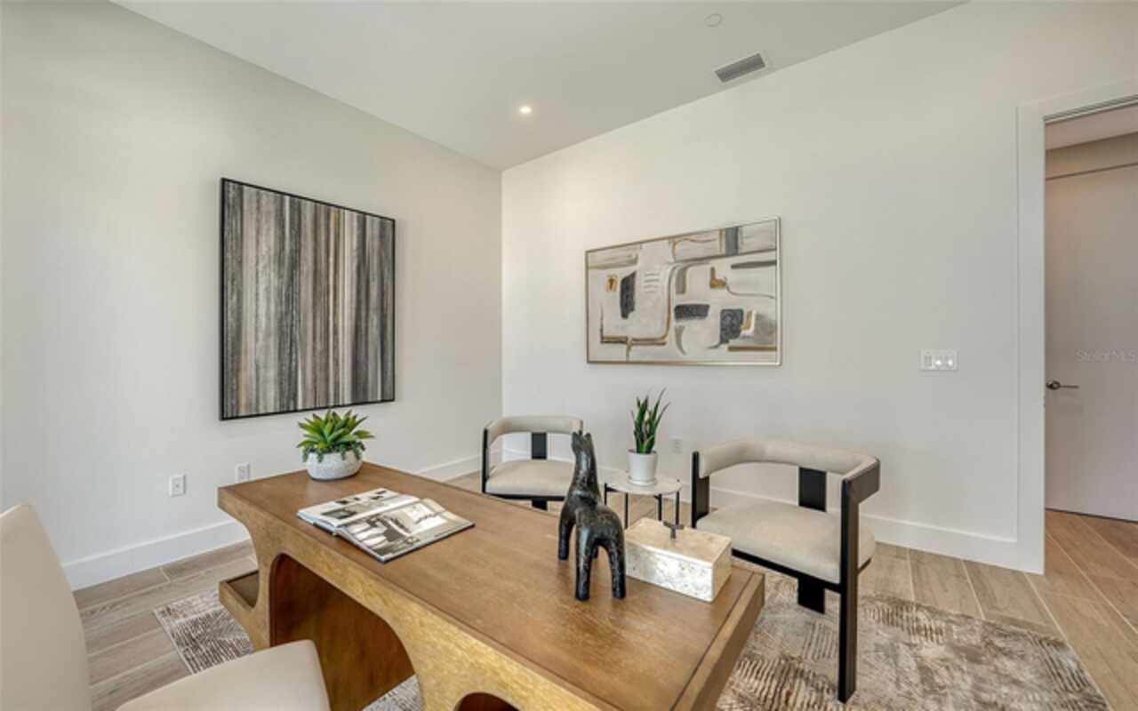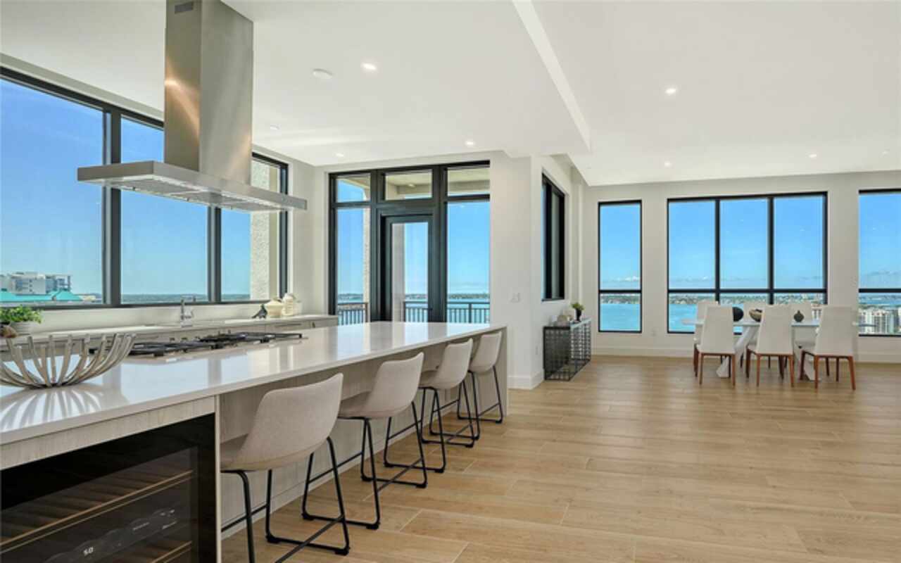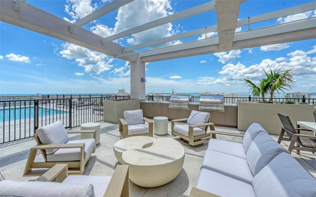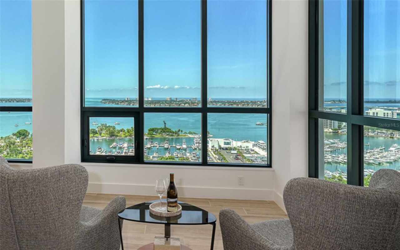 Penthouse Collection residence on the 16th floor of the newly-built DeMarcay, offering sky-high views of the city, Sarasota Bay, Big Pass, and beyond to the Gulf. Best location in the city by the intersection of Main Street and Palm Avenue. Walk to art galleries, restaurants, boutiques, theaters, farmers’ market, city marina, wellness services, live music, and all downtown Sarasota amenities. Only three miles over the Ringling Bridge to St. Armands Circle and Lido Beach. DeMarcay stands alone in Sarasota for raising the amenities and pool to such impressive heights. Residents have exclusive access to a state-of-the-art fitness center and club lounge, as well as an outdoor kitchen, sparkling pool and expansive bi-level terrace on the 18th floor, providing 360-degree vistas of Sarasota’s breathtaking scenery. Located on the 16th floor bayside, this elegant 3, 407-square-foot residence has three private bedroom suites, an office/den, a powder room, an open living area, laundry facilities, and a private bayfront balcony. Volume ceilings and large windows maximize views and natural light throughout. The gourmet kitchen showcases imported Italian cabinetry, quartz countertops, a Miele five-burner gas cooktop, and seamlessly integrated Miele appliances. The primary suite offers a spa-inspired ensuite bath featuring designer Italian cabinets, porcelain undermount sinks, an elegant soaking tub, and a spacious walk-in shower. Residents enjoy 24/7 access to dedicated on-site staff for personalized services. The DeMarcay is an 18-story boutique condominium community of only 39 residences that uniquely blends modern luxury with Sarasota’s rich history. The development thoughtfully preserves and restores the historic facades of the original DeMarcay Hotel, built in 1922, and the Roth Cigar Factory, which operated from 1923 to 1938. This fusion of historic charm and contemporary design creates a distinctive living experience. Live the good life at DeMarcay — luxurious and casual — so Sarasota!