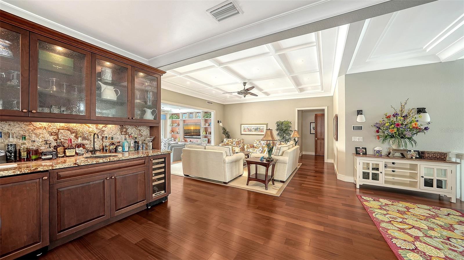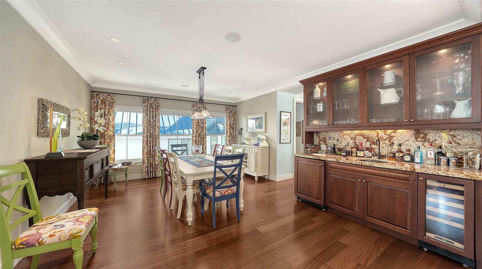 Ceiling Fans(s), Elevator, High Ceilings, Solid Wood Cabinets, Wet Bar, Window Treatments