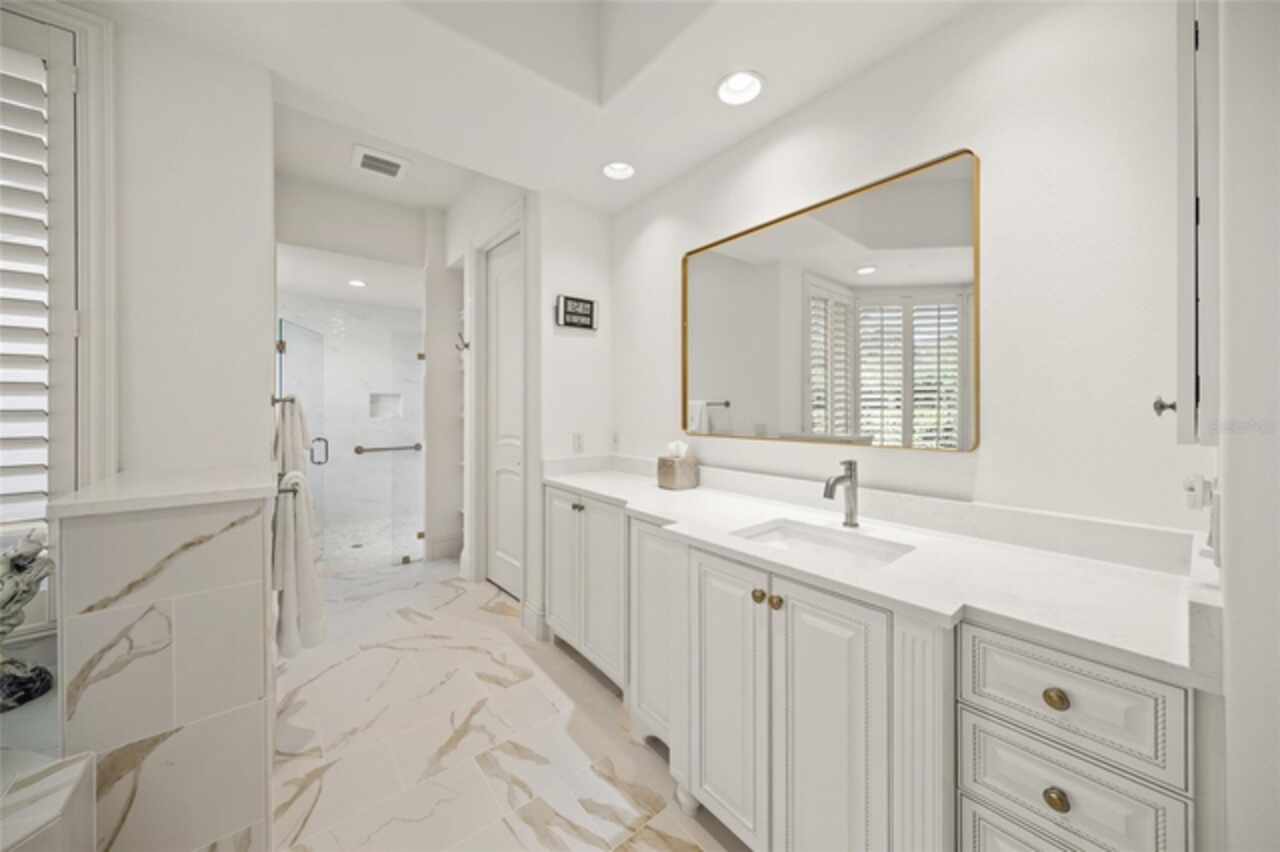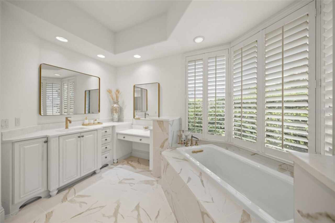 This is the one * WELCOME TO THE FOUNDERS CLUB, ONE OF THE MOST COVETED COUNTRY CLUB COMMUNITIES IN SARASOTA * This Quality Built Lee Wetherington Executive Home features a VERY PRIVATE SETTING ON OVER 1/2 ACRE * PANORAMIC VIEWS OF A TRANQUIL LAKE IN YOUR BACKYARD WITH SERENE GREENBELT VIEWS FROM YOUR FRONT YARD - THIS IS A PREMIER LOCATION * RARELY AVAILABLE in this sought after neighborhood, this BEAUTIFUL HOME has been LOVINGLY RENOVATED * Step into the Grand Foyer and be amazed * Architectural details are at every turn * The current homeowners painstakingly oversaw every step of the NEW CHEF'S KITCHEN WITH A COASTAL CONTEMPORARY DESIGN BOASTING NEW Custom Wood Cabinets, NEW Quartz Countertops, a Waterfall Island, NATURAL GAS COOK-TOP and a Walk-in Pantry * The Kitchen is open to the SPACIOUS Family Room AND an expansive Glass-enclosed A/C Cabana-style Room with three walls of glass sliders (open the doors in the winter time!), screen windows, a natural gas fireplace, plus a wet bar - this is the perfect space for relaxing, entertaining, and it can even be used as a playroom * This FAMILY ESTATE is remarkable with 5, 426+/- A/C SQFT * 4 Bedrooms & 4.5 Baths * Den/Office * Bonus Room * A Multi-use 15x13 Safe Room could be used as a Home Gym or Flex-space * Your Primary Suite features #2 Custom California style Walk-in Closet's and a NEW LOVINGLY RENOVATED Spa-style Bath with custom Cabinets, NEW Garden Tub, and a SPACIOUS Walk-in shower * This THOUGHTFULLY CURATED BATH is a TRUE OWNERS' RETREAT * Formal Living Room * Formal Dining Room * UPSTAIRS FEATURES A BONUS ROOM AND A SEPARATE GUEST BEDROOM + BATH with a Screened Lanai featuring Lake Views * Just a few of the additional features include: Volume ceilings * IMPACT GLASS WINDOWS + STORM SHUTTERS * SOLID CORE DOOR & CUSTOM WOOD TRIM * NEW Exterior Paint 2021 * NEW Interior Paint 2022 * Whole House Water Softener and Reverse Osmosis System * A 40-kilowatt OLYMPIAN NATURAL GAS WHOLE HOUSE GENERATOR * All of this wraps the PRIVATE HEATED POOL & SPA RECENTLY UPDATED with a NEW HEATER IN 2022 AND RESURFACING WAS DONE IN 2021 * The Founders Club is a beautiful low-density 24/7 guard-gated community with over 700 acres of wetlands and preserve and only 262 homes. The renowned Robert Trent Jones Jr. golf course offers members easy tee times and is one of the only walkable courses in the region. Har-Tru tennis courts & pickle ball courts and a picnic pavilion, and playground, basketball court, and fitness center are also on site. Residents enjoy easy access to the cultural venues of downtown Sarasota and attractions of Lakewood Ranch. Optional golf/social memberships. Members enjoy a 24/7 fitness facility, stately clubhouse, community events, and a restaurant with picturesque veranda. Come see this exceptional home and discover an extraordinary lifestyle. ONE LOOK & YOU'LL FALL IN LOVE *