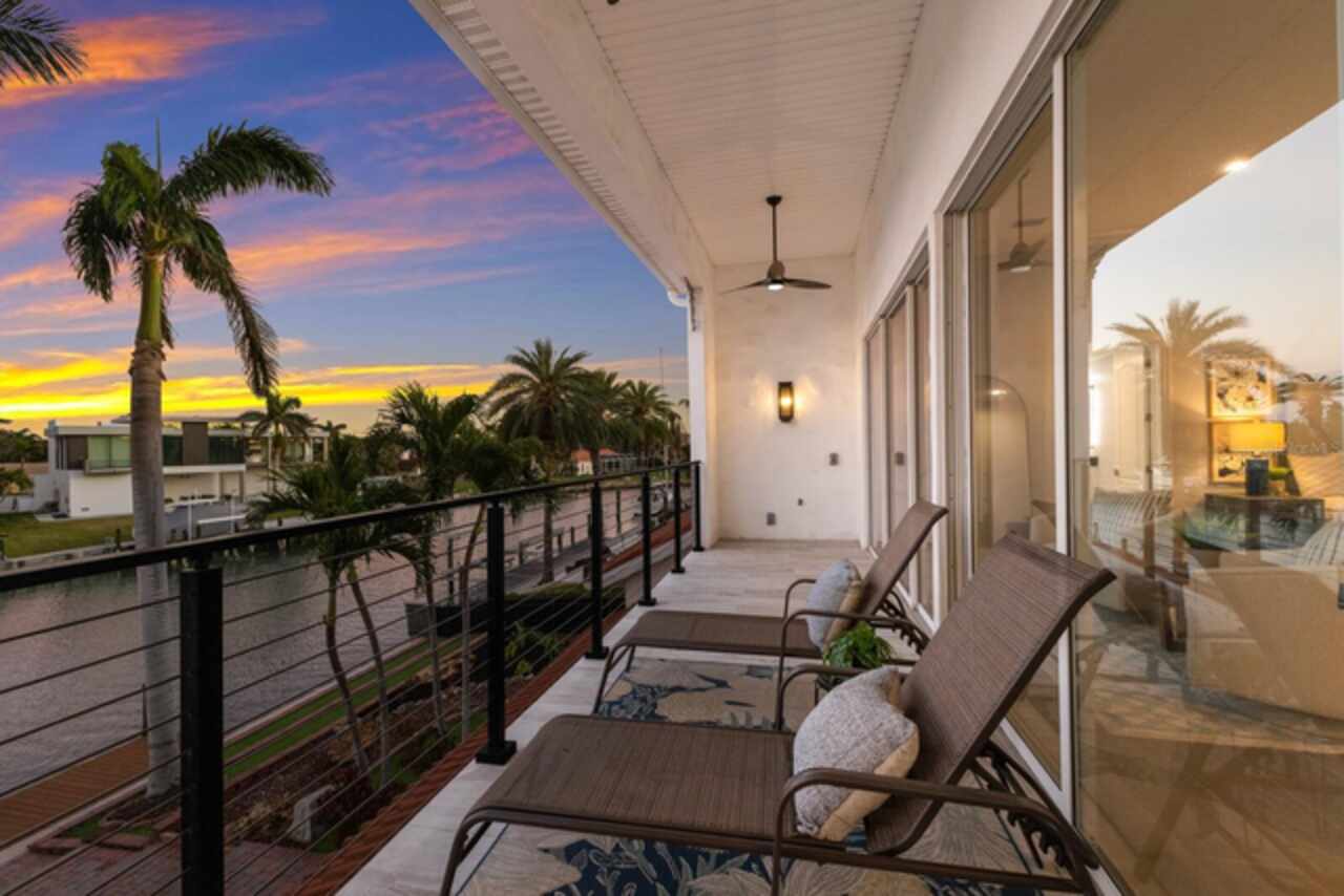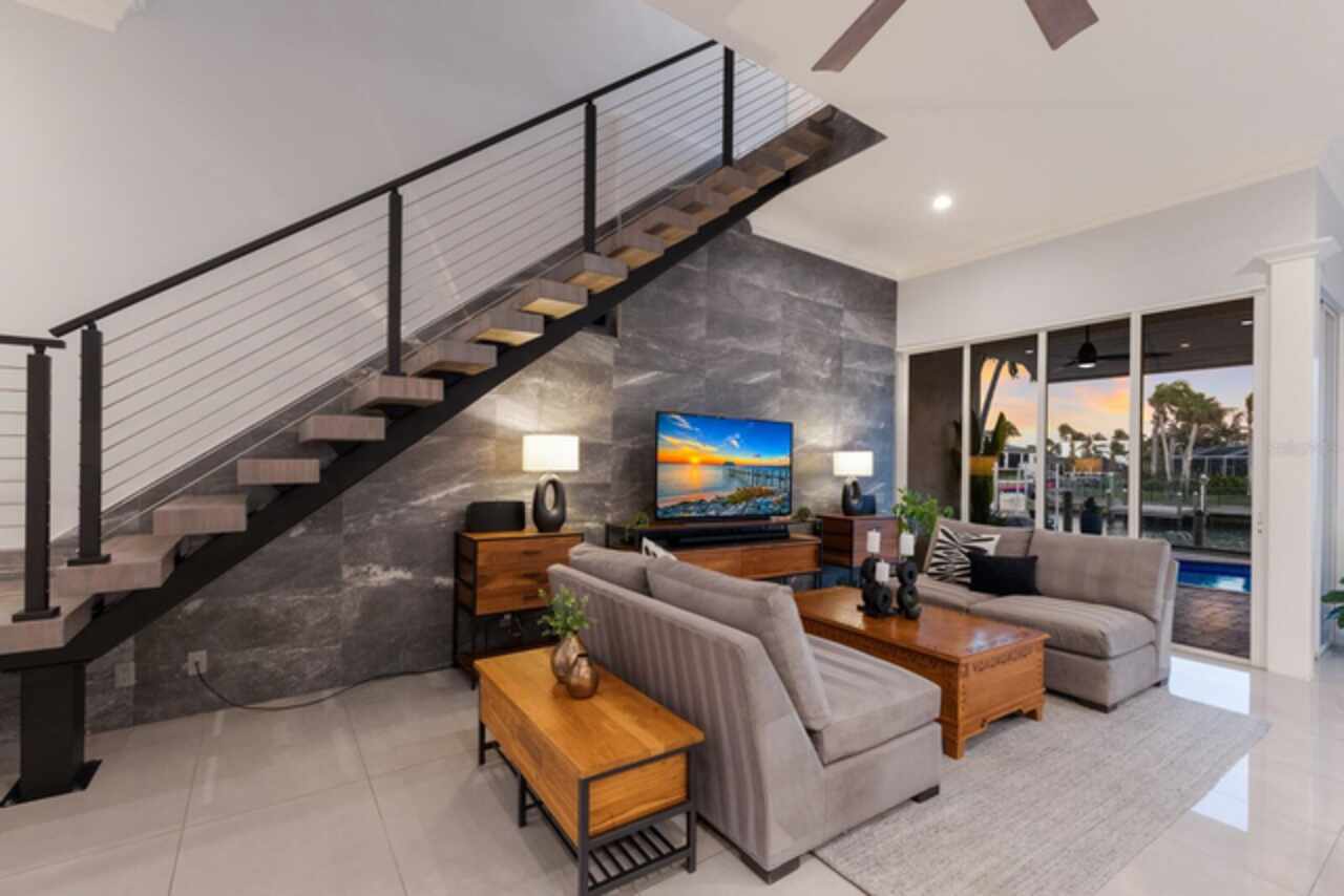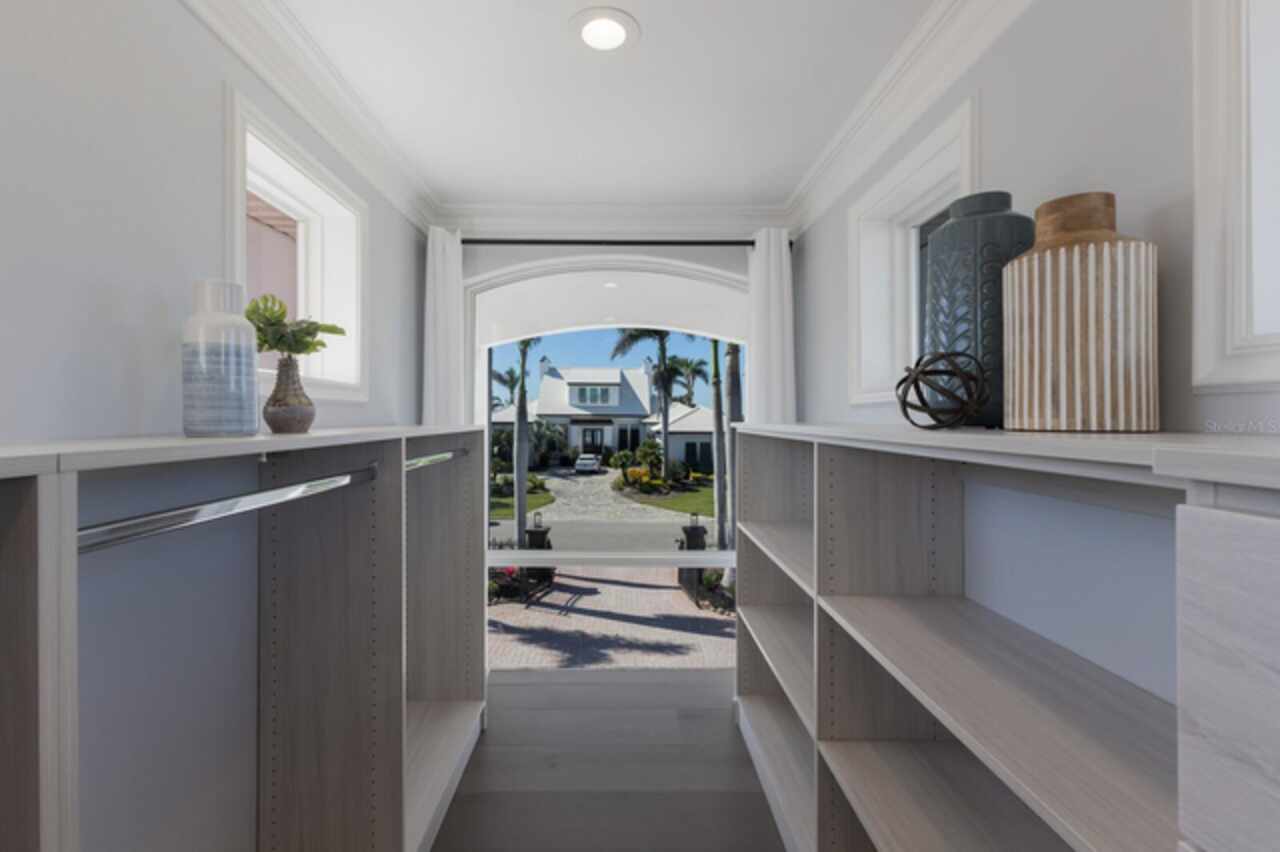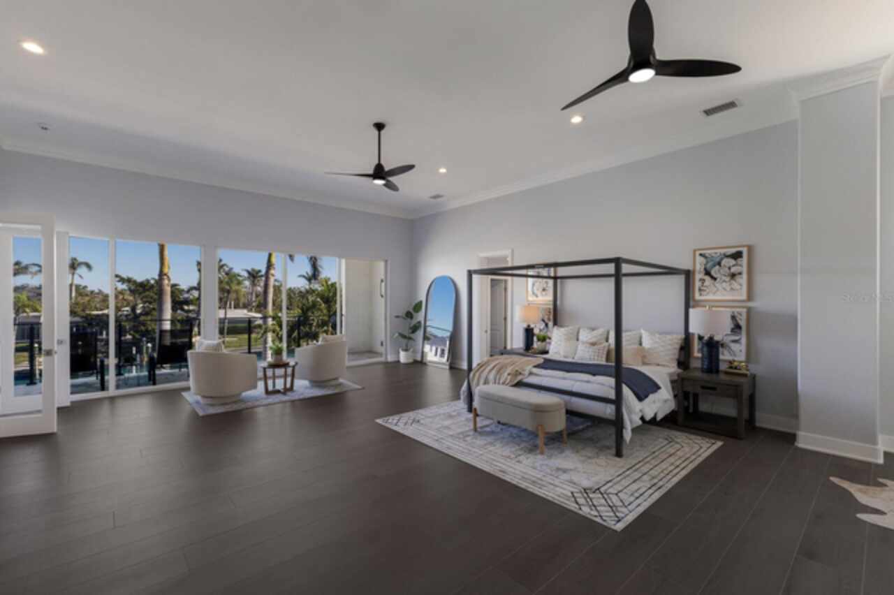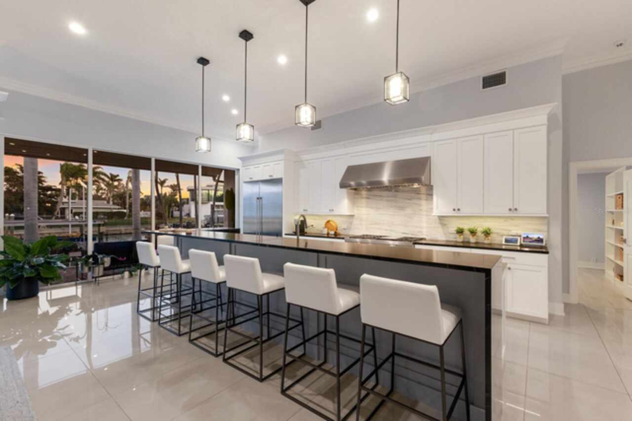LOWEST PRICE PER SQ FT FOR WATERFRONT PROPERTY ON BIRD KEY! A magnificent sanctuary, 12' above sea level, perfectly positioned on the coveted West end of Dolphin Waterway, this home provides unmatched privacy and serenity, framed by 100 feet of SAILBOAT WATER FRONTAGE on Bird Key's DEEPEST AND WIDEST CANAL. BRAND NEW FLAT TILE ROOF was completed August 2025. Home was completely unscathed during the storms. Newly renovated 5, 257 square feet of luxury, this architectural marvel features four bedrooms with two primary suites, one on the main and one on the second level, a yoga/media room, and four full baths. Upon entering, you'll be welcomed by an atmosphere of modern elegance with soaring ceilings and stunning 2' x 4' porcelain tile flooring. As you climb the luxurious custom modern floating metal staircase, uncover an awe-inspiring second primary suite and enter an expansive 33' x 23' retreat. This versatile space includes a full bath; two walk-in closets; sitting area, and access to a private balcony overlooking the sun-drenched pool area, Dolphin Waterway, palm trees, and occasional pelican sighting perched on one of your TWO NEW DOCKS, one with a 20, 000lb lift and one personal watercraft 4500lb lift with space for two jet skis or kayaks. The grand entrance effortlessly flows into the open dining and living rooms. An expansive redesigned contemporary kitchen is at the heart of the home, a chef's dream outfitted with stainless steel Wolf Pro Series appliances, including a dual-fed six-burner natural gas stove with an electric oven, vent, and a sleek drawer microwave. A Sub-Zero Designer Series refrigerator/freezer, Sub Zero dual-controlled refrigerators, and a Cove dishwasher famous for its whisper-quiet operation enhance your culinary experience. The soapstone waterfall island with seating for eight is highlighted by a luxurious Brazilian Marble backsplash, and solid wood Campbell cabinetry adds a touch of timeless elegance. A custom-designed kitchen pantry room and storage or prep area perfect for private parties provide all the extra space needed to keep your kitchen organized, efficient, and clutter-free. The open kitchen and family rooms make this the perfect space for entertaining guests and watching your favorite movie or sporting event. Highlighted by a warm tile accent wall and crown molding, you can enjoy the sweeping waterfront views and stunning skies from this inviting space. Retreat to the private main floor suite through double doors into a water-view sanctuary with a primary bath featuring beautiful porcelain wood texture tile, contemporary lighting, soapstone counters, dual sinks, and a spacious glass-enclosed shower. A custom-built walk-in closet further enhances this suite. Two additional bedrooms and two resort-style baths are situated on the opposite side of this split plan. An additional flex space on the second level is perfect for a theater room, yoga room, or office. Situated on a secluded cul-de-sac with two side-load garages and space for four cars. This exquisite, gated residence offers immediate access to the pristine waters of Sarasota Bay and the Gulf. Perfectly situated near St. Armands Circle, Bird Key Yacht Club, and vibrant downtown Sarasota, you will enjoy coastal living and the Bird Key lifestyle all year round. Paradise is found in this exceptional Sarasota sanctuary. Make this coastal haven your new home!