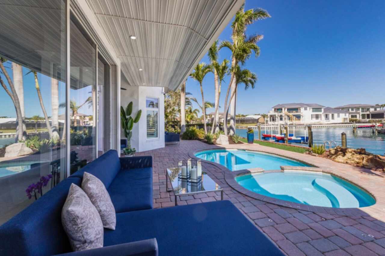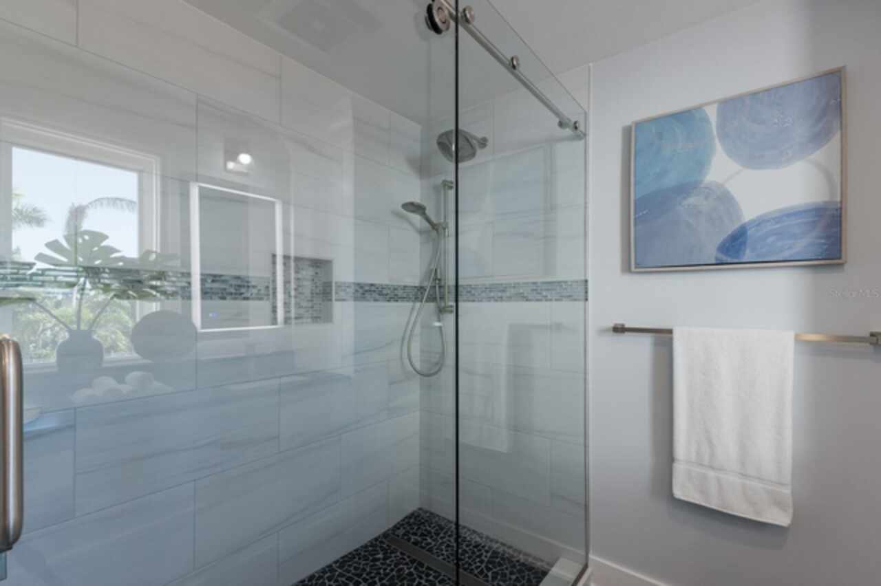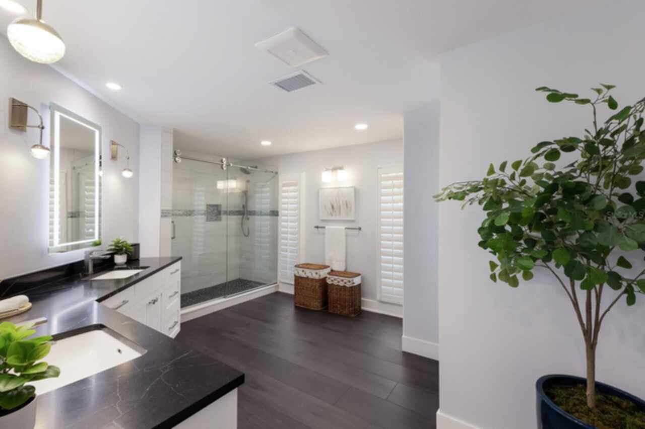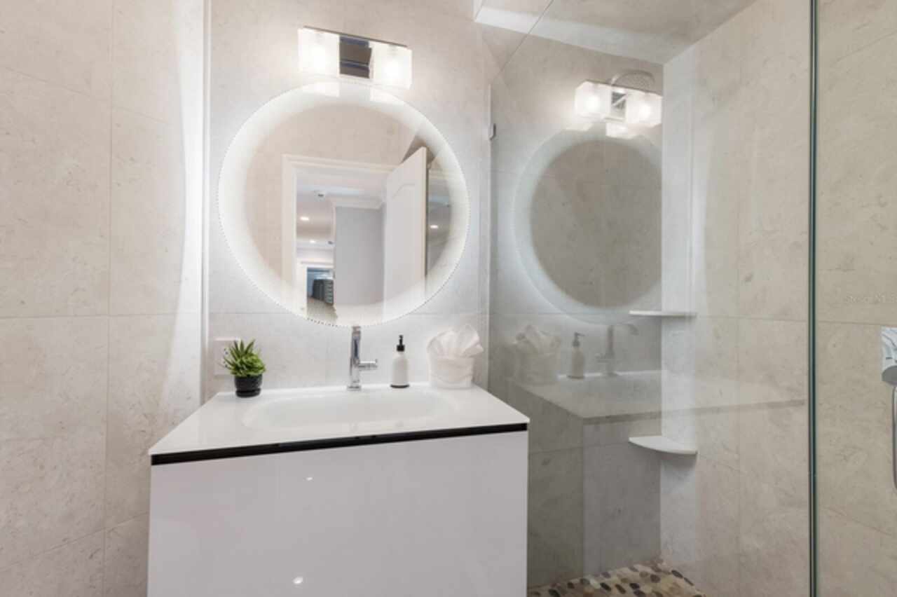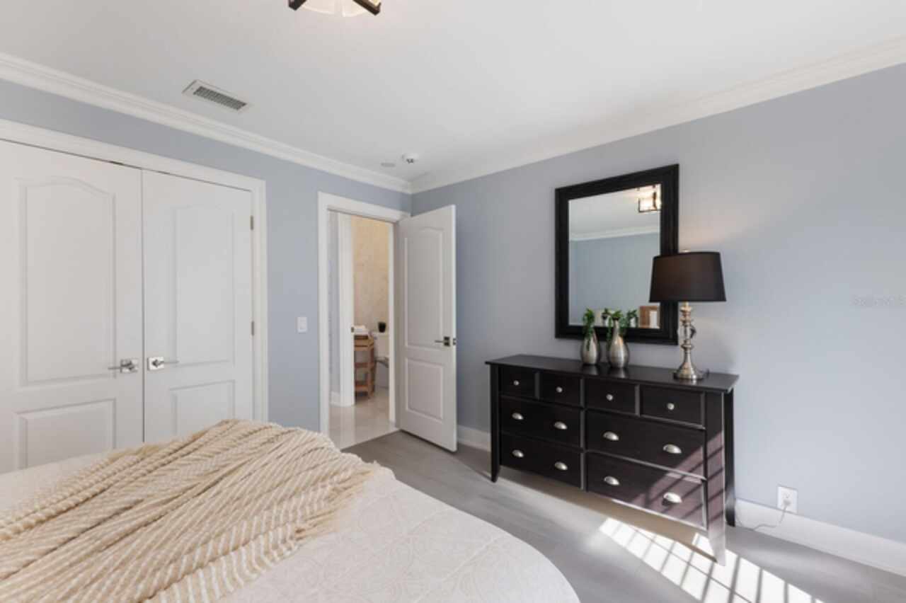 LOWEST PRICE PER SQ FT FOR WATERFRONT PROPERTY ON BIRD KEY! A magnificent sanctuary, 12' above sea level, perfectly positioned on the coveted West end of Dolphin Waterway, this home provides unmatched privacy and serenity, framed by 100 feet of SAILBOAT WATER FRONTAGE on Bird Key's DEEPEST AND WIDEST CANAL. BRAND NEW FLAT TILE ROOF was completed August 2025. Home was completely unscathed during the storms. Newly renovated 5, 257 square feet of luxury, this architectural marvel features four bedrooms with two primary suites, one on the main and one on the second level, a yoga/media room, and four full baths. Upon entering, you'll be welcomed by an atmosphere of modern elegance with soaring ceilings and stunning 2' x 4' porcelain tile flooring. As you climb the luxurious custom modern floating metal staircase, uncover an awe-inspiring second primary suite and enter an expansive 33' x 23' retreat. This versatile space includes a full bath; two walk-in closets; sitting area, and access to a private balcony overlooking the sun-drenched pool area, Dolphin Waterway, palm trees, and occasional pelican sighting perched on one of your TWO NEW DOCKS, one with a 20, 000lb lift and one personal watercraft 4500lb lift with space for two jet skis or kayaks. The grand entrance effortlessly flows into the open dining and living rooms. An expansive redesigned contemporary kitchen is at the heart of the home, a chef's dream outfitted with stainless steel Wolf Pro Series appliances, including a dual-fed six-burner natural gas stove with an electric oven, vent, and a sleek drawer microwave. A Sub-Zero Designer Series refrigerator/freezer, Sub Zero dual-controlled refrigerators, and a Cove dishwasher famous for its whisper-quiet operation enhance your culinary experience. The soapstone waterfall island with seating for eight is highlighted by a luxurious Brazilian Marble backsplash, and solid wood Campbell cabinetry adds a touch of timeless elegance. A custom-designed kitchen pantry room and storage or prep area perfect for private parties provide all the extra space needed to keep your kitchen organized, efficient, and clutter-free. The open kitchen and family rooms make this the perfect space for entertaining guests and watching your favorite movie or sporting event. Highlighted by a warm tile accent wall and crown molding, you can enjoy the sweeping waterfront views and stunning skies from this inviting space. Retreat to the private main floor suite through double doors into a water-view sanctuary with a primary bath featuring beautiful porcelain wood texture tile, contemporary lighting, soapstone counters, dual sinks, and a spacious glass-enclosed shower. A custom-built walk-in closet further enhances this suite. Two additional bedrooms and two resort-style baths are situated on the opposite side of this split plan. An additional flex space on the second level is perfect for a theater room, yoga room, or office. Situated on a secluded cul-de-sac with two side-load garages and space for four cars. This exquisite, gated residence offers immediate access to the pristine waters of Sarasota Bay and the Gulf. Perfectly situated near St. Armands Circle, Bird Key Yacht Club, and vibrant downtown Sarasota, you will enjoy coastal living and the Bird Key lifestyle all year round. Paradise is found in this exceptional Sarasota sanctuary. Make this coastal haven your new home!