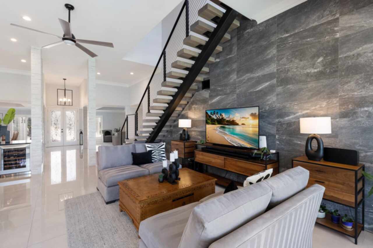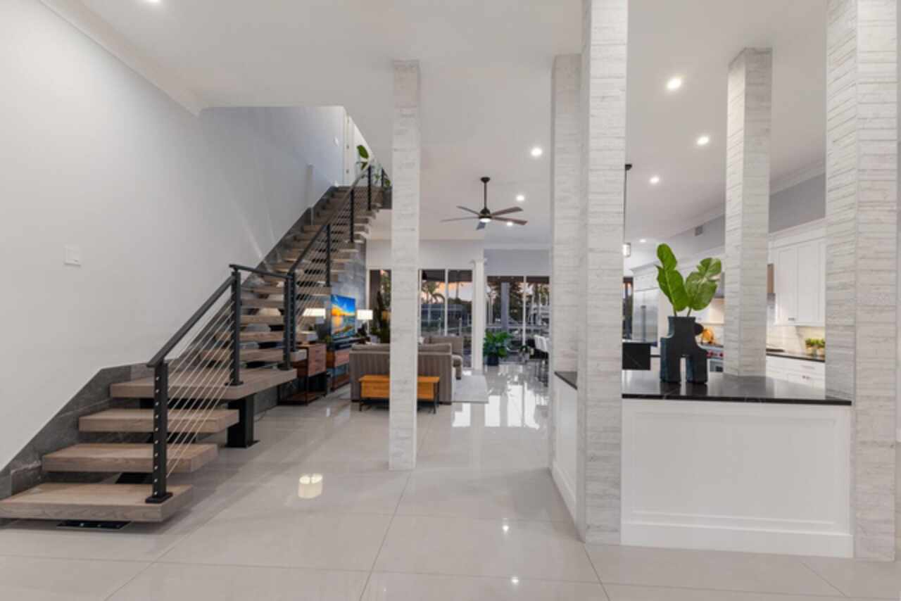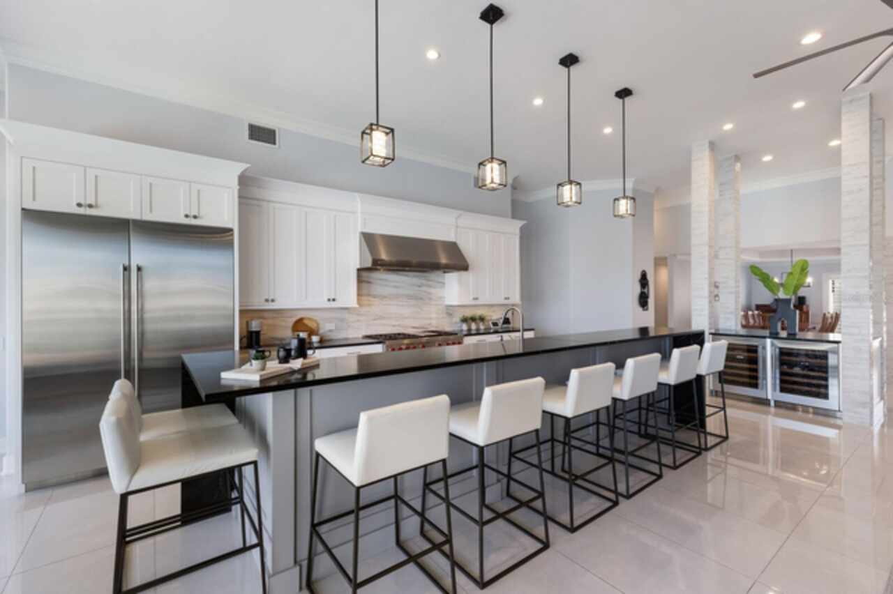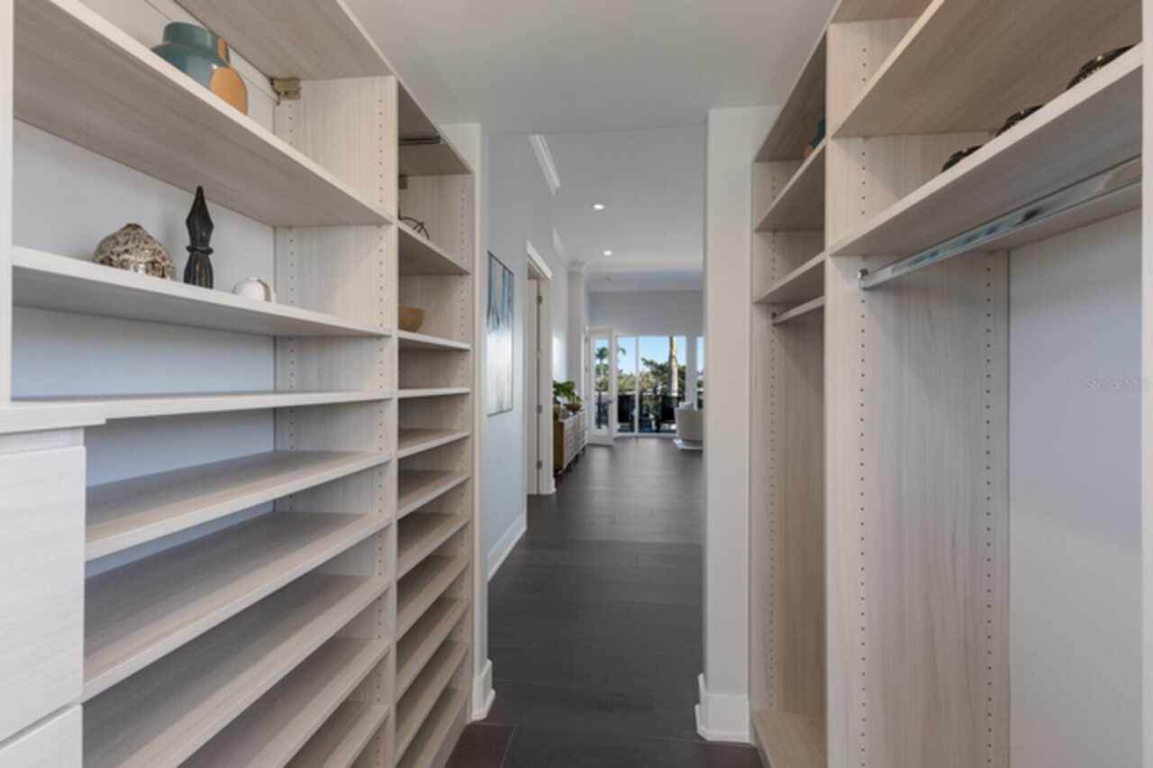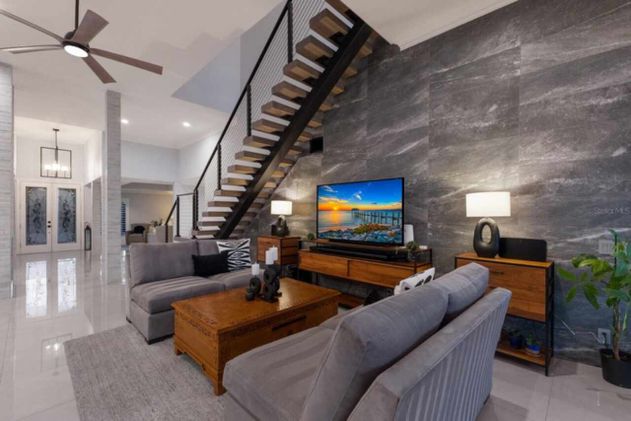 LOWEST PRICE PER SQ FT FOR WATERFRONT PROPERTY ON BIRD KEY! A magnificent sanctuary, 12' above sea level, perfectly positioned on the coveted West end of Dolphin Waterway, this home provides unmatched privacy and serenity, framed by 100 feet of SAILBOAT WATER FRONTAGE on Bird Key's DEEPEST AND WIDEST CANAL. BRAND NEW FLAT TILE ROOF was completed August 2025. Home was completely unscathed during the storms. Newly renovated 5, 257 square feet of luxury, this architectural marvel features four bedrooms with two primary suites, one on the main and one on the second level, a yoga/media room, and four full baths. Upon entering, you'll be welcomed by an atmosphere of modern elegance with soaring ceilings and stunning 2' x 4' porcelain tile flooring. As you climb the luxurious custom modern floating metal staircase, uncover an awe-inspiring second primary suite and enter an expansive 33' x 23' retreat. This versatile space includes a full bath; two walk-in closets; sitting area, and access to a private balcony overlooking the sun-drenched pool area, Dolphin Waterway, palm trees, and occasional pelican sighting perched on one of your TWO NEW DOCKS, one with a 20, 000lb lift and one personal watercraft 4500lb lift with space for two jet skis or kayaks. The grand entrance effortlessly flows into the open dining and living rooms. An expansive redesigned contemporary kitchen is at the heart of the home, a chef's dream outfitted with stainless steel Wolf Pro Series appliances, including a dual-fed six-burner natural gas stove with an electric oven, vent, and a sleek drawer microwave. A Sub-Zero Designer Series refrigerator/freezer, Sub Zero dual-controlled refrigerators, and a Cove dishwasher famous for its whisper-quiet operation enhance your culinary experience. The soapstone waterfall island with seating for eight is highlighted by a luxurious Brazilian Marble backsplash, and solid wood Campbell cabinetry adds a touch of timeless elegance. A custom-designed kitchen pantry room and storage or prep area perfect for private parties provide all the extra space needed to keep your kitchen organized, efficient, and clutter-free. The open kitchen and family rooms make this the perfect space for entertaining guests and watching your favorite movie or sporting event. Highlighted by a warm tile accent wall and crown molding, you can enjoy the sweeping waterfront views and stunning skies from this inviting space. Retreat to the private main floor suite through double doors into a water-view sanctuary with a primary bath featuring beautiful porcelain wood texture tile, contemporary lighting, soapstone counters, dual sinks, and a spacious glass-enclosed shower. A custom-built walk-in closet further enhances this suite. Two additional bedrooms and two resort-style baths are situated on the opposite side of this split plan. An additional flex space on the second level is perfect for a theater room, yoga room, or office. Situated on a secluded cul-de-sac with two side-load garages and space for four cars. This exquisite, gated residence offers immediate access to the pristine waters of Sarasota Bay and the Gulf. Perfectly situated near St. Armands Circle, Bird Key Yacht Club, and vibrant downtown Sarasota, you will enjoy coastal living and the Bird Key lifestyle all year round. Paradise is found in this exceptional Sarasota sanctuary. Make this coastal haven your new home!