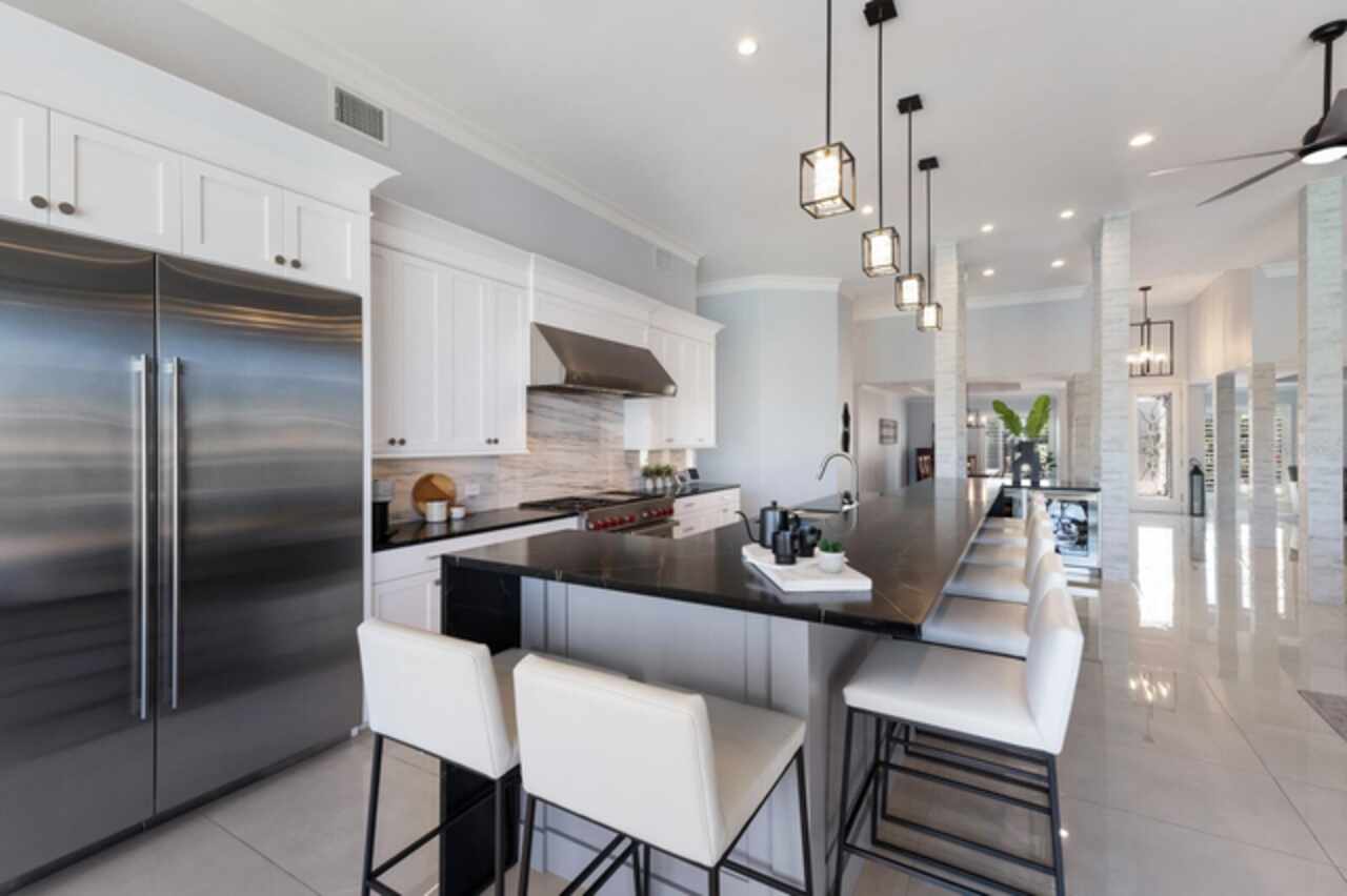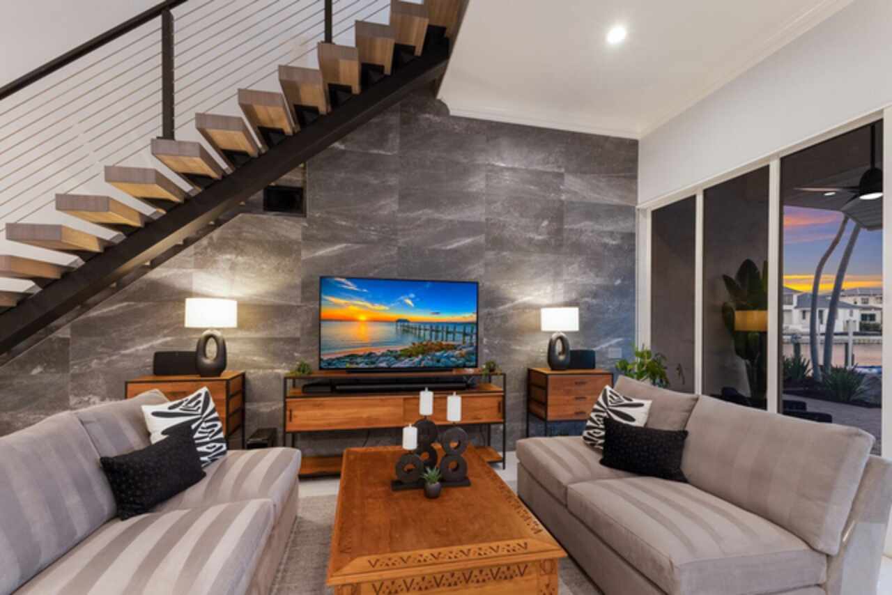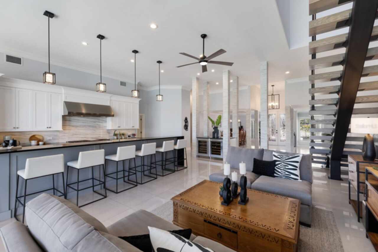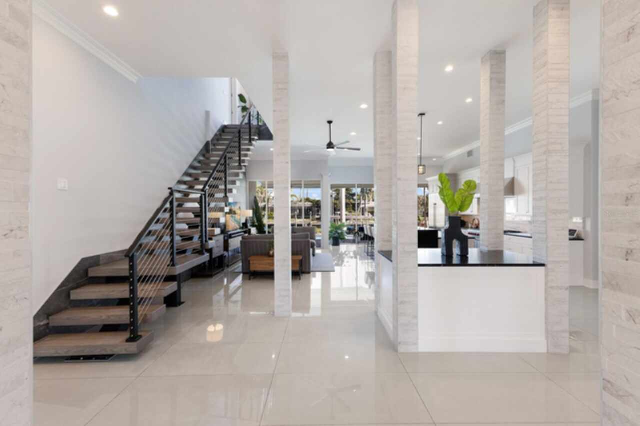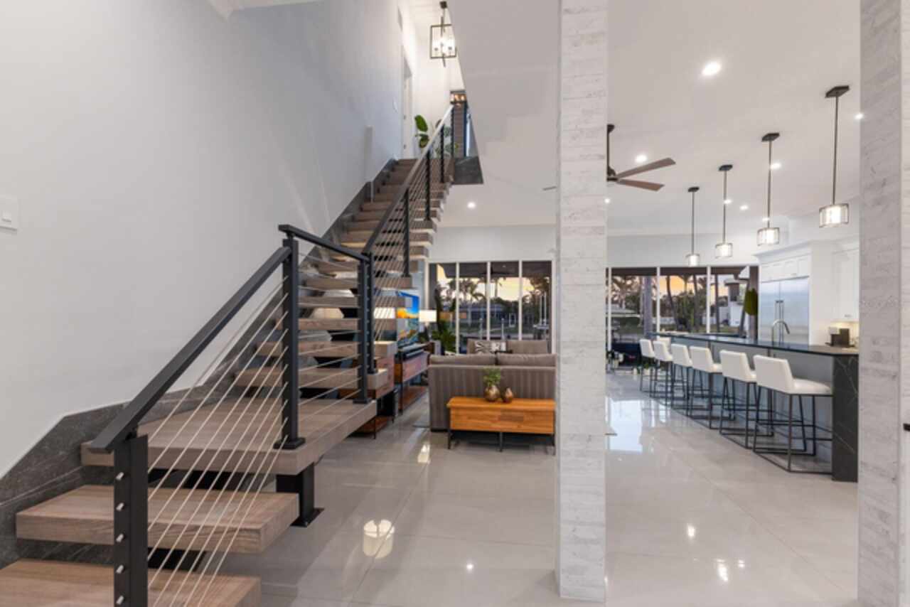 LOWEST PRICE PER SQ FT FOR WATERFRONT PROPERTY ON BIRD KEY! A magnificent sanctuary, 12' above sea level, perfectly positioned on the coveted West end of Dolphin Waterway, this home provides unmatched privacy and serenity, framed by 100 feet of SAILBOAT WATER FRONTAGE on Bird Key's DEEPEST AND WIDEST CANAL. BRAND NEW FLAT TILE ROOF was completed August 2025. Home was completely unscathed during the storms. Newly renovated 5, 257 square feet of luxury, this architectural marvel features four bedrooms with two primary suites, one on the main and one on the second level, a yoga/media room, and four full baths. Upon entering, you'll be welcomed by an atmosphere of modern elegance with soaring ceilings and stunning 2' x 4' porcelain tile flooring. As you climb the luxurious custom modern floating metal staircase, uncover an awe-inspiring second primary suite and enter an expansive 33' x 23' retreat. This versatile space includes a full bath; two walk-in closets; sitting area, and access to a private balcony overlooking the sun-drenched pool area, Dolphin Waterway, palm trees, and occasional pelican sighting perched on one of your TWO NEW DOCKS, one with a 20, 000lb lift and one personal watercraft 4500lb lift with space for two jet skis or kayaks. The grand entrance effortlessly flows into the open dining and living rooms. An expansive redesigned contemporary kitchen is at the heart of the home, a chef's dream outfitted with stainless steel Wolf Pro Series appliances, including a dual-fed six-burner natural gas stove with an electric oven, vent, and a sleek drawer microwave. A Sub-Zero Designer Series refrigerator/freezer, Sub Zero dual-controlled refrigerators, and a Cove dishwasher famous for its whisper-quiet operation enhance your culinary experience. The soapstone waterfall island with seating for eight is highlighted by a luxurious Brazilian Marble backsplash, and solid wood Campbell cabinetry adds a touch of timeless elegance. A custom-designed kitchen pantry room and storage or prep area perfect for private parties provide all the extra space needed to keep your kitchen organized, efficient, and clutter-free. The open kitchen and family rooms make this the perfect space for entertaining guests and watching your favorite movie or sporting event. Highlighted by a warm tile accent wall and crown molding, you can enjoy the sweeping waterfront views and stunning skies from this inviting space. Retreat to the private main floor suite through double doors into a water-view sanctuary with a primary bath featuring beautiful porcelain wood texture tile, contemporary lighting, soapstone counters, dual sinks, and a spacious glass-enclosed shower. A custom-built walk-in closet further enhances this suite. Two additional bedrooms and two resort-style baths are situated on the opposite side of this split plan. An additional flex space on the second level is perfect for a theater room, yoga room, or office. Situated on a secluded cul-de-sac with two side-load garages and space for four cars. This exquisite, gated residence offers immediate access to the pristine waters of Sarasota Bay and the Gulf. Perfectly situated near St. Armands Circle, Bird Key Yacht Club, and vibrant downtown Sarasota, you will enjoy coastal living and the Bird Key lifestyle all year round. Paradise is found in this exceptional Sarasota sanctuary. Make this coastal haven your new home!