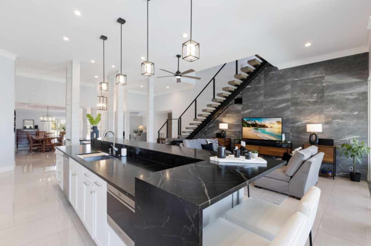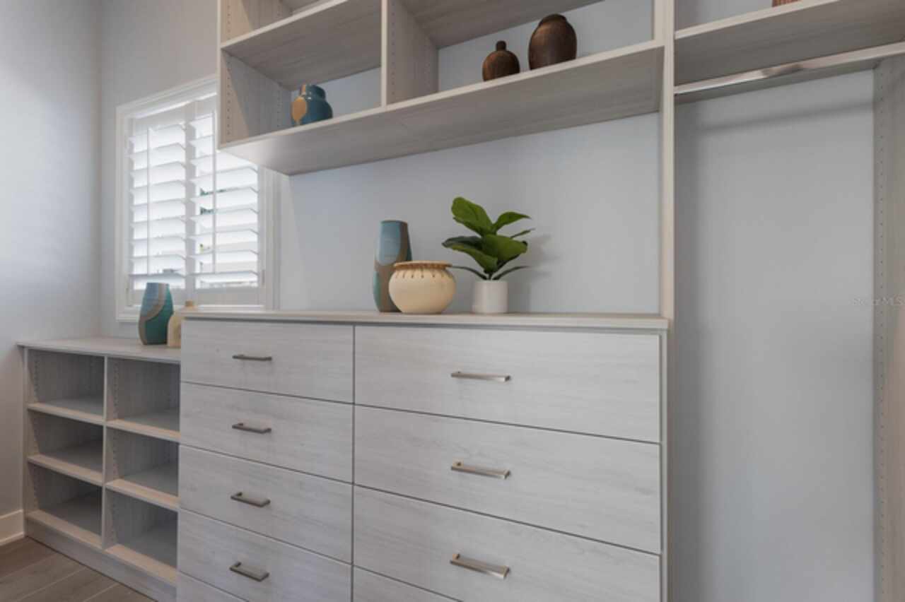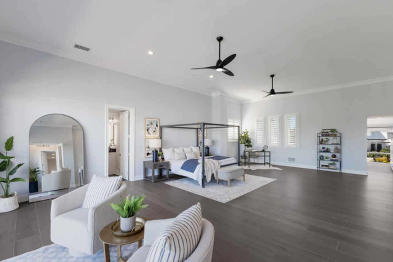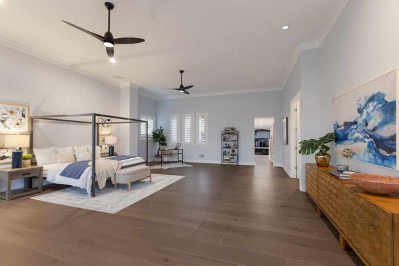 Ceiling Fans(s), Crown Molding, Eat-in Kitchen, High Ceilings, Kitchen/Family Room Combo, Living Room/Dining Room Combo, Open Floorplan, Primary Bedroom Main Floor, PrimaryBedroom Upstairs, Solid Surface Counters, Split Bedroom, Stone Counters, Walk-In Closet(s)