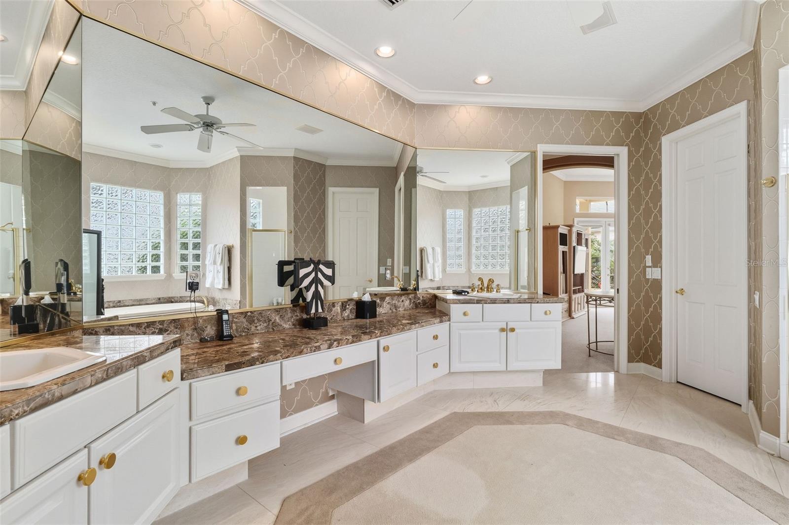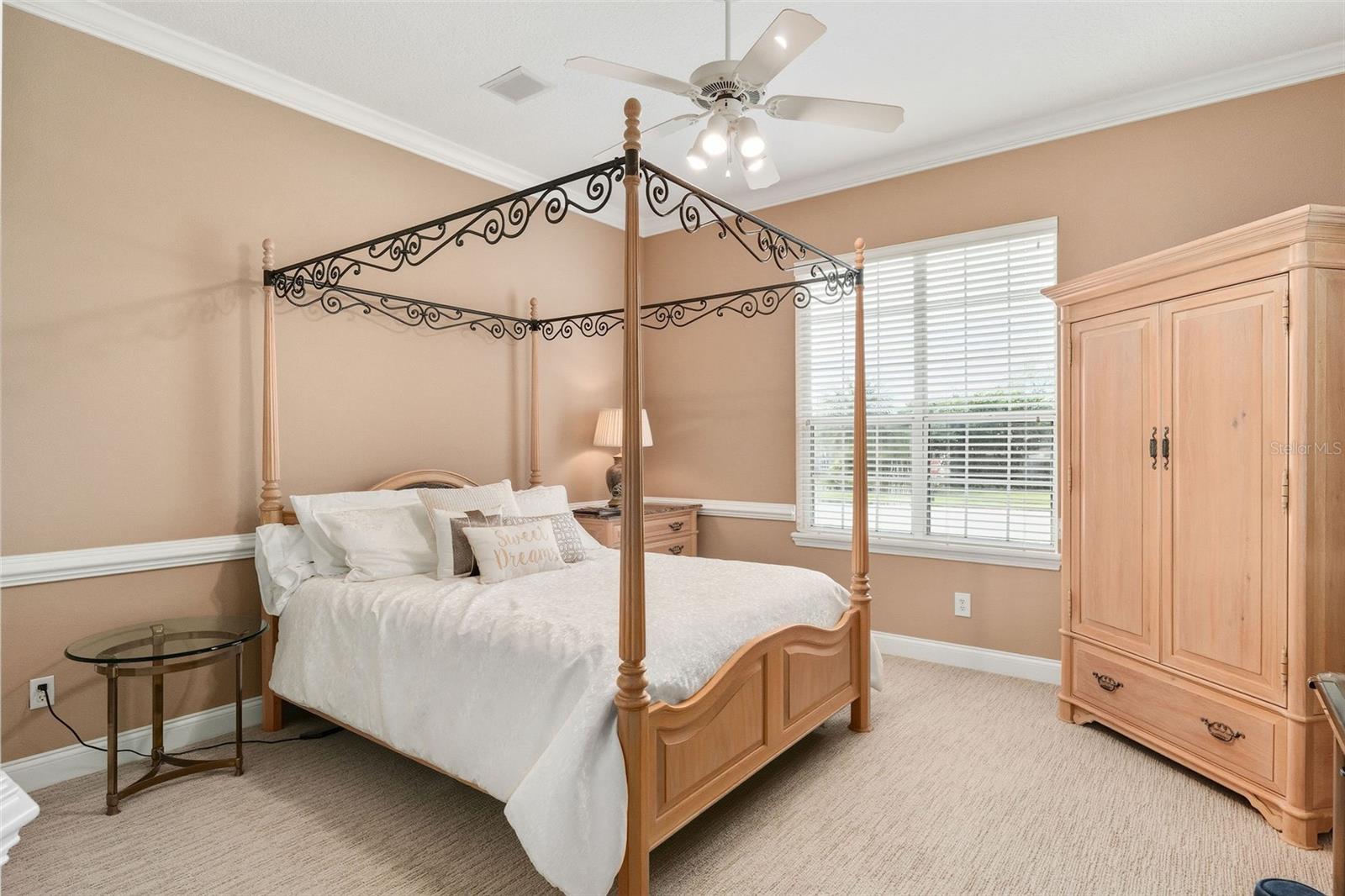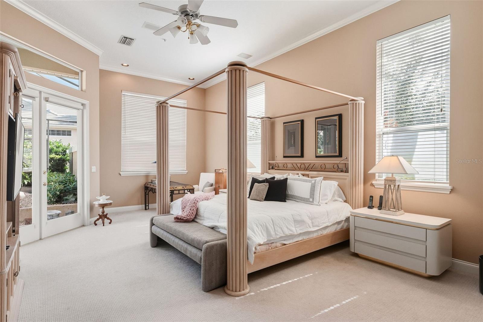 Built-in Features, Cathedral Ceiling(s), Ceiling Fans(s), Crown Molding, Open Floorplan, Solid Wood Cabinets, Split Bedroom, Stone Counters, Tray Ceiling(s), Walk-In Closet(s), Window Treatments