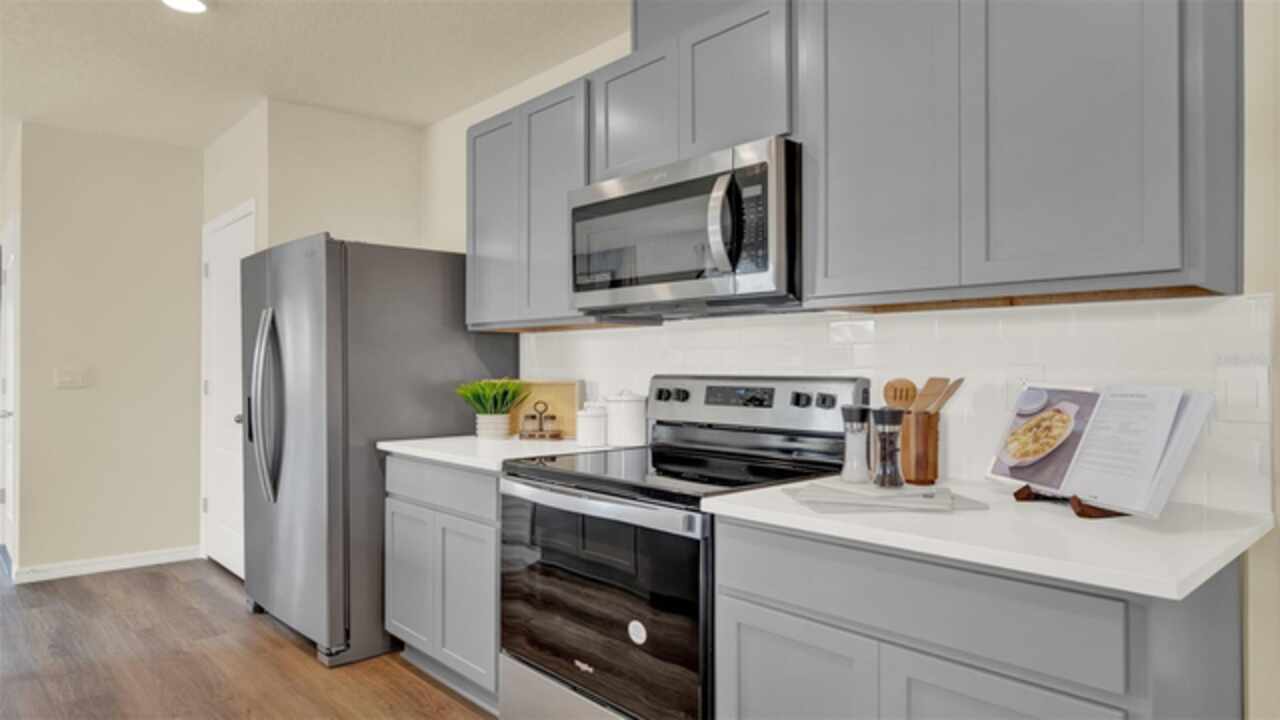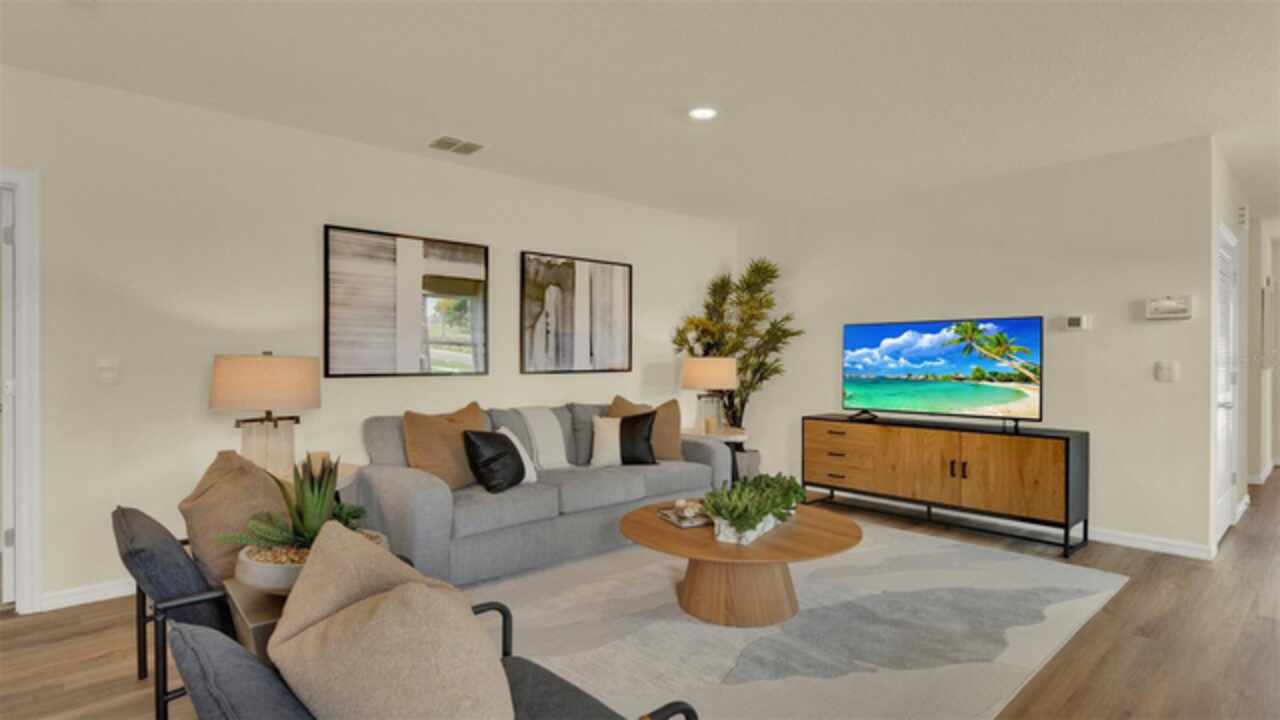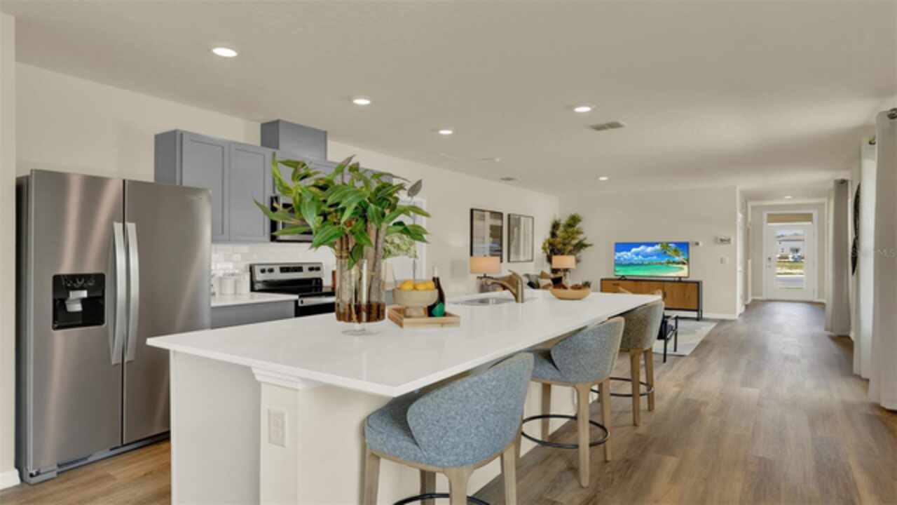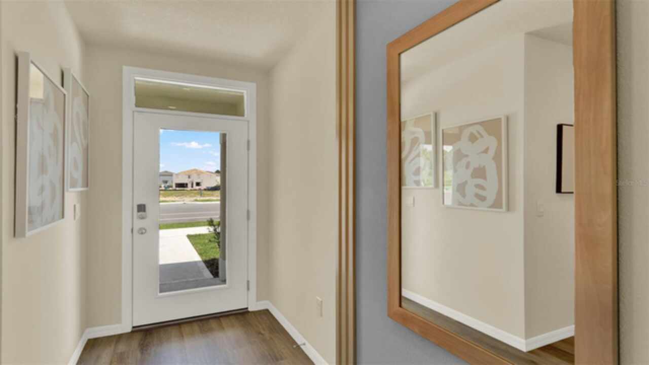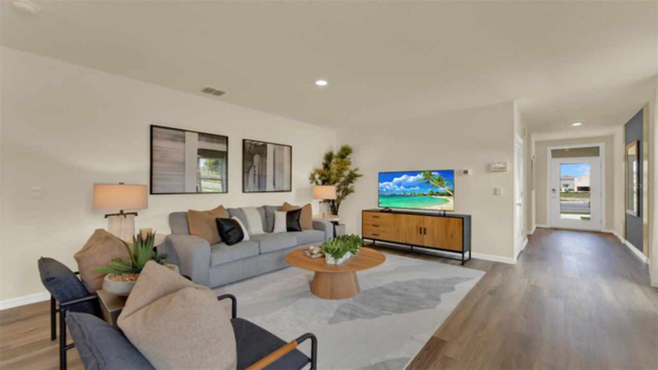 "Welcome to the Baldwin, a stunning four-bedroom, two-bathroom home located in the Crossroads at Kelly Park community. As you enter the foyer to this beautifully designed home, you are greeted by with an open concept living space featuring carpet and luxury vinyl flooring throughout. The kitchen overlooks the dining and living room, while having a view to the oversized outdoor living space. The well-appointed kitchen features an island with bar seating, plentiful cabinet with beautiful quartz countertops and stainless-steel appliances, making entertaining a breeze. Bedroom one, located off the living space, has an en suite bathroom with double vanity and spacious walk-in closet providing ample space for storage. Three additional bedrooms and one full bath are located at the front of the home along with a closet and laundry room. The Baldwin seamlessly integrates smart home technology, offering convenience and enhanced living experiences. With its spacious layout and contemporary finishes, the Baldwin in Crossroads at Kelly Park provides the perfect blend of style and functionality for today's discerning homeowner." *Photos are of similar model but not that of exact house. Pictures, photographs, colors, features, and sizes are for illustration purposes only and will vary from the homes as built. Home and community information including pricing, included features, terms, availability and amenities are subject to change and prior sale at any time without notice or obligation. Please note that no representations or warranties are made regarding school districts or school assignments; you should conduct your own investigation regarding current and future schools and school boundaries.*