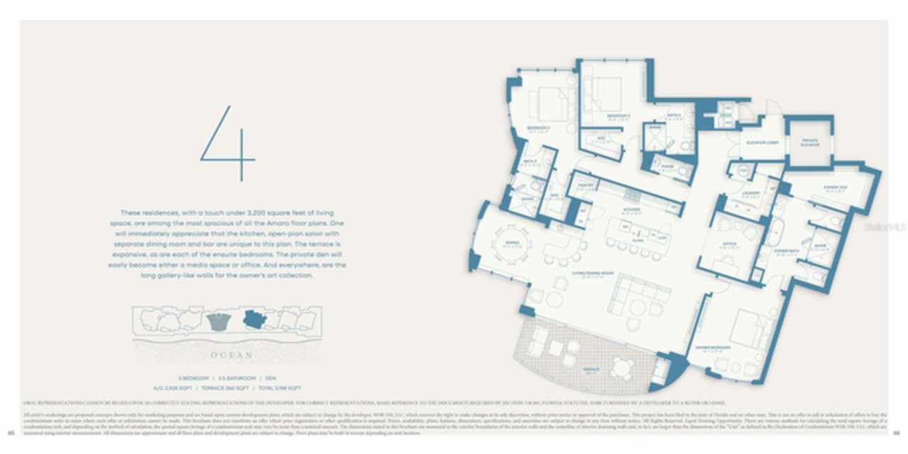 One or more photo(s) has been virtually staged. Pre-Construction. To be built. The attractions of Amara, diverse and extraordinary, know no equal. This begins with its Golden Gate address – for the Point is one of those rarest of natural wonders – enclave that looks across the bay and back to the city – once-in-a-lifetime views that are yours everyday. Amara offers a collection of 54 stylized residences with floor to ceiling glass windows throughout to take in the unobstructed views over Sarasota Bay. Floor Plans vary from 2, 272 to 3, 429 square feet of living space complete with spacious sunset terraces. Level two offers a very rare opportunity of only five one-of-a-kind terrace residences showcasing exquisitely private outdoor living spaces, with private pool and spa set above Amara’s lush esplanade and marina. Sophisticated design by MHK Architecture and DWJA Landscape Architects. An elegant and elevated interior design by Lillian Wu Studio, NYC. This thoughtfully designed residence offers a touch under 3, 200 square feet of indoor/outdoor living space, among the most spacious of all the Amara floor plans. One will immediately appreciate that the kitchen, open-plan salon with the separate dining room and bar are unique to this plan. The terrace is expansive, as are each of the ensuite bedrooms. The private den will easily become a media or office space. Inside you will also find long gallery-like walls for the owner’s art collection. Residences are appointed with luxurious finishes including Wolf and Sub-Zero appliances, Gessi plumbing fixtures, Richelieu hardware, Neff cabinets and stone countertops with island waterfall and full height-backsplash. Outdoor summer kitchens include a built-in Artisan gas grill. Exceptional indoor and outdoor amenities include a breathtaking esplanade with infinity pool terrace, social and game room, private lushly landscaped marina and bayside terrace, kayak and paddleboard launch, fire table seating, intimate waterside seating area, bocce ball court, putting green, and dog walking area. The spacious state of the art fitness center offers Techno-gym equipment, hot and cold plunges, steam and sauna rooms, a yoga garden, massage treatment room and dual locker rooms. By the water, in the water, on the water. Whenever you wish. Wherever you want. This is the incomparable life Amara, unquestionably, Sarasota’s most exciting and remarkable residences, ever.