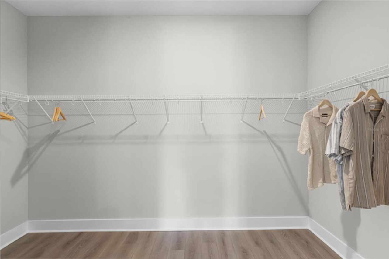 High Ceilings, Primary Bedroom Main Floor, Solid Surface Counters, Thermostat, Tray Ceiling(s), Walk-In Closet(s)