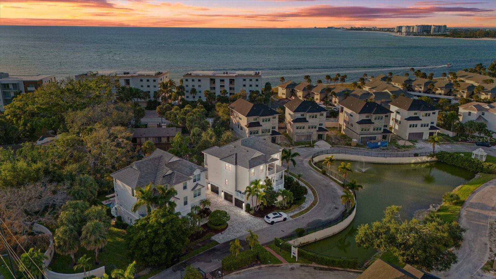 Under contract-accepting backup offers. Welcome to La Linda Siesta Key Estates, an exclusive gated enclave that defines the pinnacle of coastal luxury living. Just one block from the sparkling waters of Siesta Key, this custom-built, three-story masterpiece spans 3, 796 square feet and offers 4 bedrooms, 4.5 baths, a private elevator, and a spacious 4-car garage, a rare feature on the island. Designed with both elegance and endurance in mind, this home is constructed with solid concrete block, impact-rated windows and doors, and superior structural integrity to withstand even the wildest forces of Mother Nature. Despite recent storms in the area, this residence remained completely unaffected, a true testament to its exceptional build quality and engineering. Inside, every inch of the home showcases high-end custom craftsmanship, from exquisite flooring and designer lighting to handcrafted cabinetry and architectural detailing that exude sophistication. The gourmet kitchen is a show-stopping centerpiece, featuring premium appliances, quartz countertops, and a large island perfect for entertaining. The open-concept living spaces flow effortlessly onto multiple balconies and outdoor areas, blurring the line between interior comfort and the beauty of the Florida coast. Each bedroom offers its own private en-suite bath, while the primary suite boasts a spa-inspired bathroom, expansive walk-in closets, and a private terrace ideal for morning coffee or evening sunsets. Step outside to your personal resort-style paradise, complete with a heated pool and spa, custom tiki bar, and private putting green, all surrounded by lush tropical landscaping designed for both privacy and pleasure. Perfectly positioned near Ocean Boulevard and the Village of Siesta Key, you’ll enjoy easy access to boutique shopping, award-winning restaurants, and the world-famous Siesta Key Beach. Whether it’s a serene morning walk along the shoreline, a day spent boating on the Gulf, or an evening out in downtown Sarasota, this home embodies the ultimate coastal lifestyle-luxurious, resilient, and truly unforgettable.