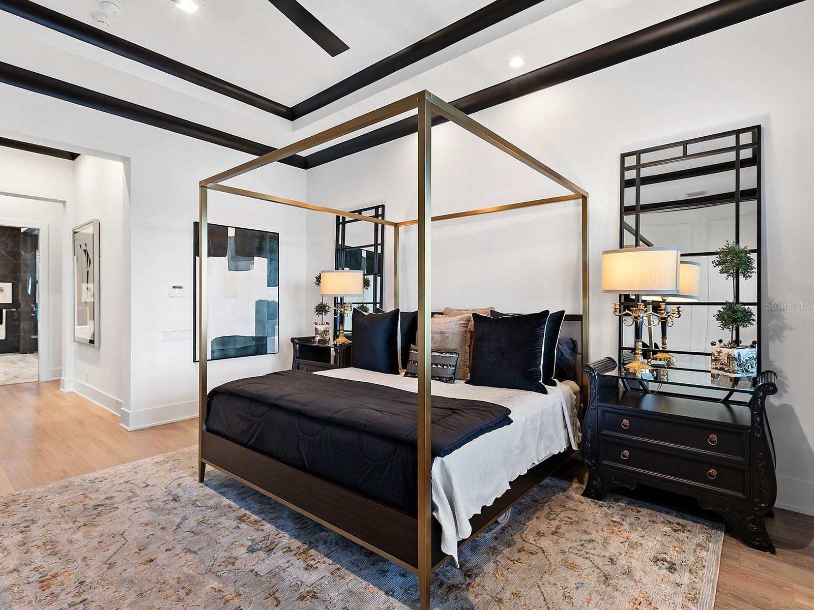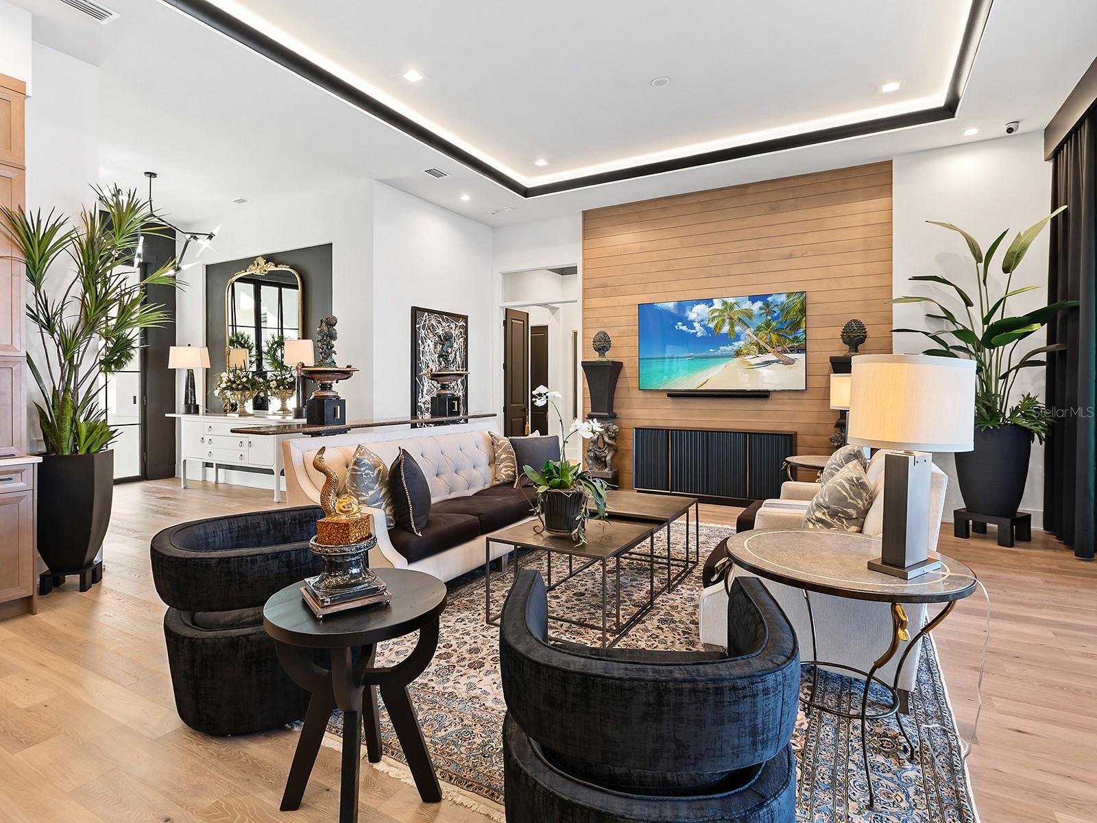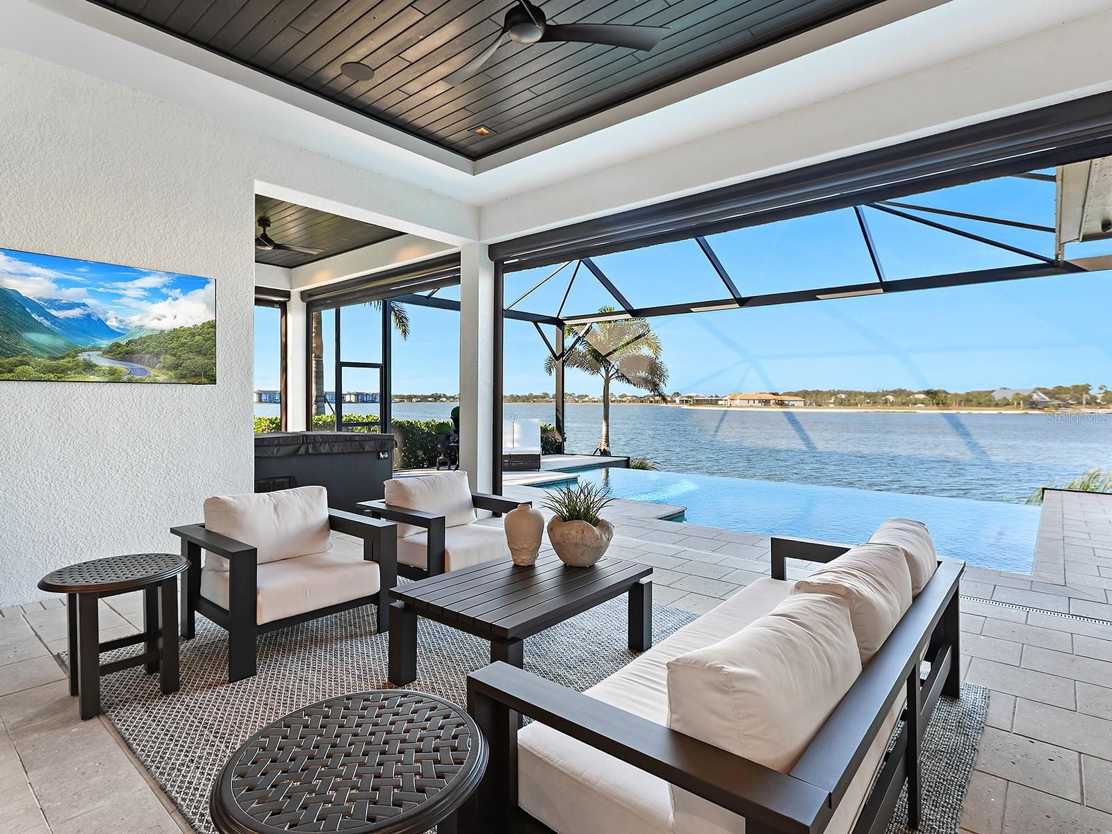 Sophisticated, elegant, and timeless - this completely custom 2023 Arthur Rutenberg residence is the home of your dreams. Inspired by California design, this modern/mid-century residence is filled with clean lines, plus elements of wood, stone, and bathed in glass to capture the views and provide seamless indoor-outdoor living on an exceptionally private lakeside lanai. With only 12 homes on this desirable street in Lakehouse Cove you'll be close to the clubhouse and amenities, plus all of the advantages of Waterside Place just 2 miles away. This home features open entertaining space plus a private study, and multi-functional bonus room. From the long driveway with meticulous landscaping, you’re welcomed home to a sweeping foyer displaying the fine features you’ll find throughout this residence including oak wood flooring, custom ceilings with crown molding, modern square recessed lighting, designer light fixtures, and lake views that can be seen from almost every room. The central great room is the heart of the home with a warm wood feature wall, disappearing corner impact sliding glass doors to the lanai, and custom window treatments. The lanai is reminiscent of a five-star luxury resort with its heated saltwater infinity edge pool, separate above ground heated spa, private cold plunge, and panoramic views of the lake. The covered entertaining areas have wood ceilings, speakers, remote control hurricane screens, and custom outdoor kitchen. Enjoy your meals alfresco, or in the expansive indoor dining room with dry bar, and its own impact sliders with lake views. The kitchen is the penultimate chef’s experience with multiple lit tray ceilings, central island with apron sink, two-tone modern wood cabinetry to the ceiling, full-height quartz backsplash and counters, and cleverly hidden walk-in pantry completely lined with cabinetry and its own full-size refrigerator. The Thermador professional-grade stainless steel appliance suite makes preparing every meal a delight with 36” gas cooktop with 6 burners, dishwasher, built-in wall oven and microwave, plus 36” refrigerator, 36” freezer, and a full-size wine refrigerator. Even working from home is enjoyable with a private study featuring custom cabinetry with lots of storage and built-in quartz desk. The multi-functional rear bonus room is suitable for any activity with a lofted desk area featuring custom cabinetry, media space with lake views, and dry bar with wine cooler. Ultimate relaxation is found within the hotel-inspired primary suite with fabulous lake views, oversized walk-in closets, and an en-suite bathroom that rivals the Ritz complete with floor-to-ceiling tile, dual sinks on split vanities, modern freestanding tub, and the walk-in shower of your dreams with rain shower head and steam functions. Guests will find comfort in their two guest bedrooms with en-suite bathrooms, one of which has access as a pool bathroom. Rounding out this one-of-a-kind residence is a large laundry room with plentiful storage cabinetry and 3-car air-conditioned garage with a private infrared sauna, workshop, and 2 EV chargers. Peace of mind is ensured with impact windows and doors throughout, additional hurricane screens on the lanai for added convenience, and a whole house generator. Lakehouse Cove offers the best amenities in Waterside with an upscale clubhouse, lakeside pool and spa, fitness center, playground, dog park, walking trails, and dock house for lake access and kayak storage.