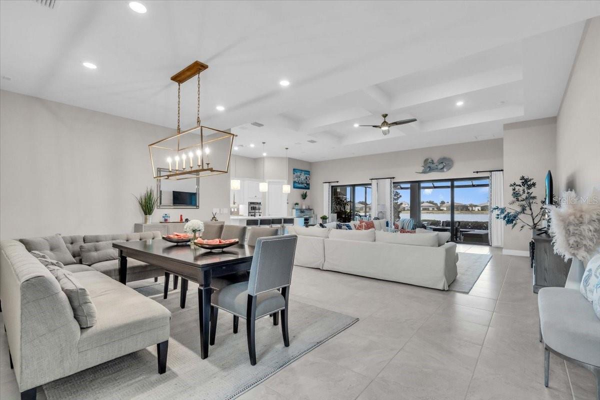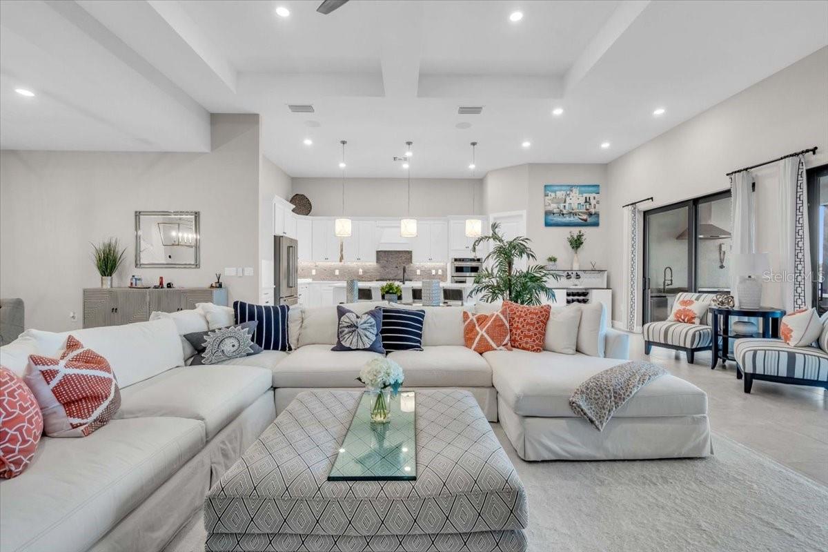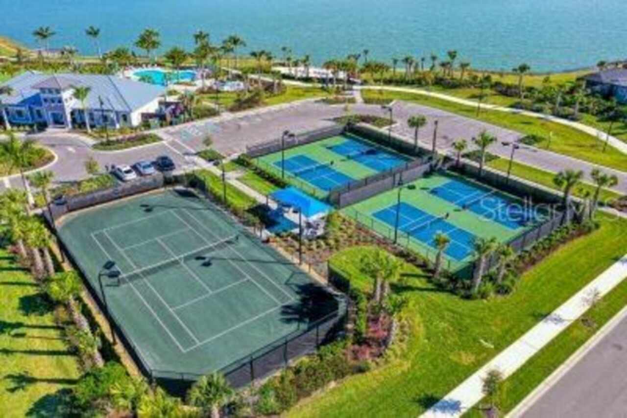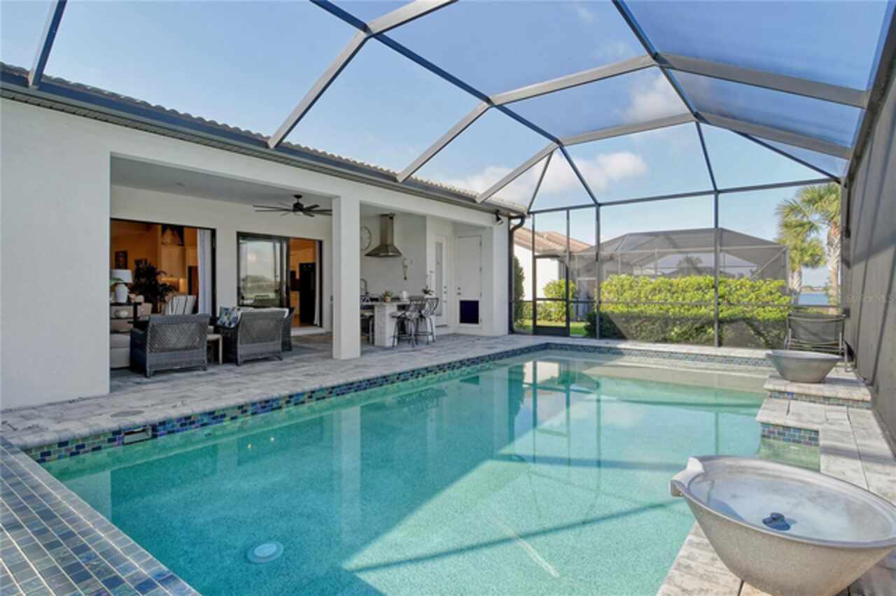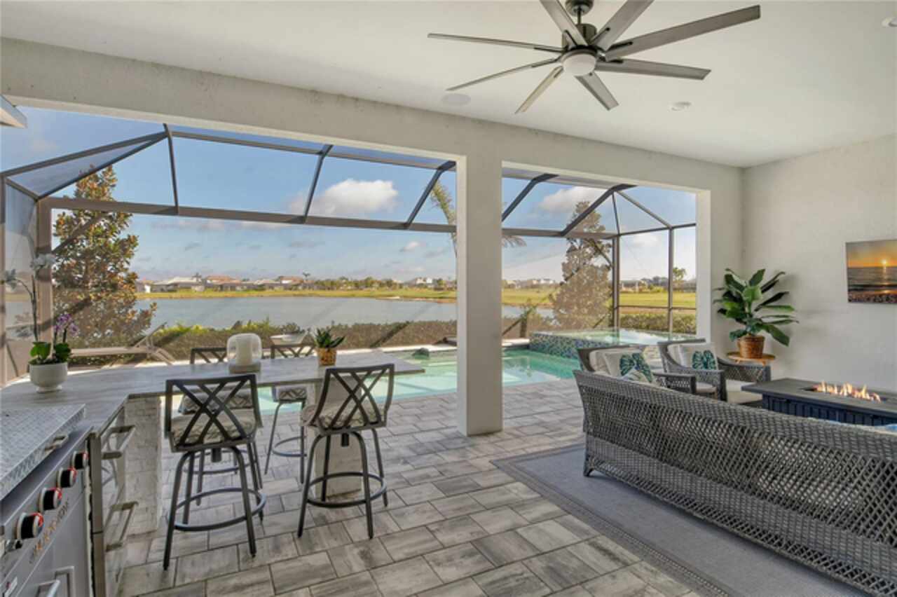 Grand residence on Grande Shores! This home is located in the Shoreview neighborhood in the Waterside Place area of Lakewood Ranch. Built in 2021, this floorplan features a loft for flexible living. This lakefront home has four bedrooms and a flex space with built-in bar seating currently being used as a media room. This home boasts over 4, 000 square feet of living space, with an luxurious extended lanai with outdoor kitchen. The open floor plan with high ceilings, oversized impact windows, and impact glass sliders flood the space with natural light. The kitchen is a dream with a large island, breakfast bar, pendant lighting, stainless steel appliances, quartz countertops, and a walk-in pantry complete with high end shelving. Split bedroom floorplan grants privacy for all bedrooms. The primary suite has tranquil pool and lake views, a tray ceiling, and a walk-in closet with built-in shelves. Going upstairs, you will find a loft perfect for a game area or another living space. The loft is complete with the fourth bedroom and fourth full bathroom. The beautiful lanai features a Clearview screen around the luxurious, heated, saltwater infinity edge pool. This pool comes complete with a sun shelf, waterfalls, and a large built in spa. The lanai has access to a half bath for convenience: keeping wet swimsuits out of your home. Your outdoor oasis is complete with an equipped kitchen featuring a Blackstone grill, television, icemaker, and refrigerator drawers. This property offers the potential to add a dock. Plenty of parking and storage with a wide driveway and extended three-car garage with epoxy flooring. Resort style amenities await you at Shoreview at Lakewood Ranch Waterside. This community offers a clubhouse, an outdoor bar, grilling areas, heated community swimming pool, spa, fitness center, a lakefront deck, tennis and pickleball courts, fishing, walking trails, a beach area, and much more. Not only do you have amazing amenities in your neighborhood, you are also near everything Waterside Place has to offer. Waterside is an amazing city center with restaurants, shopping, Sunday Farmer's Market, Ranch Nite Wednesdays with food trucks and endless activities. Easy access to University Town Center, I-75, and about 14 miles to the nearest beach (Lido Key). This home puts you in the center of it all!