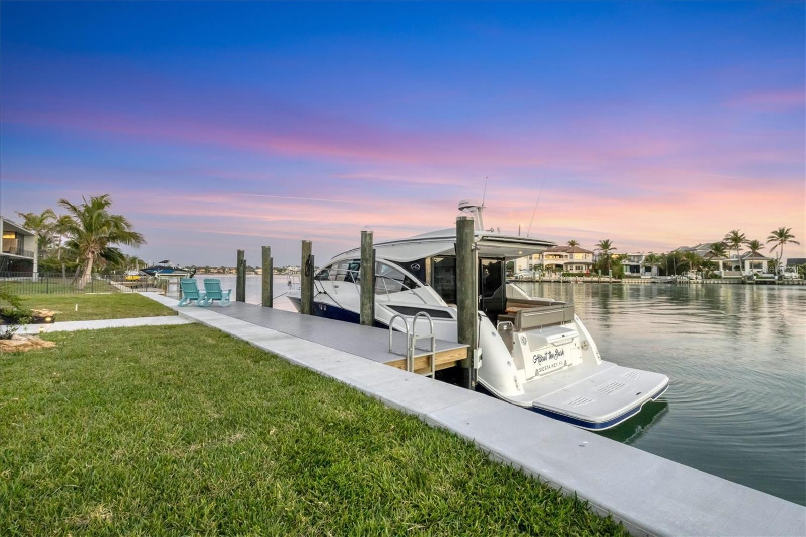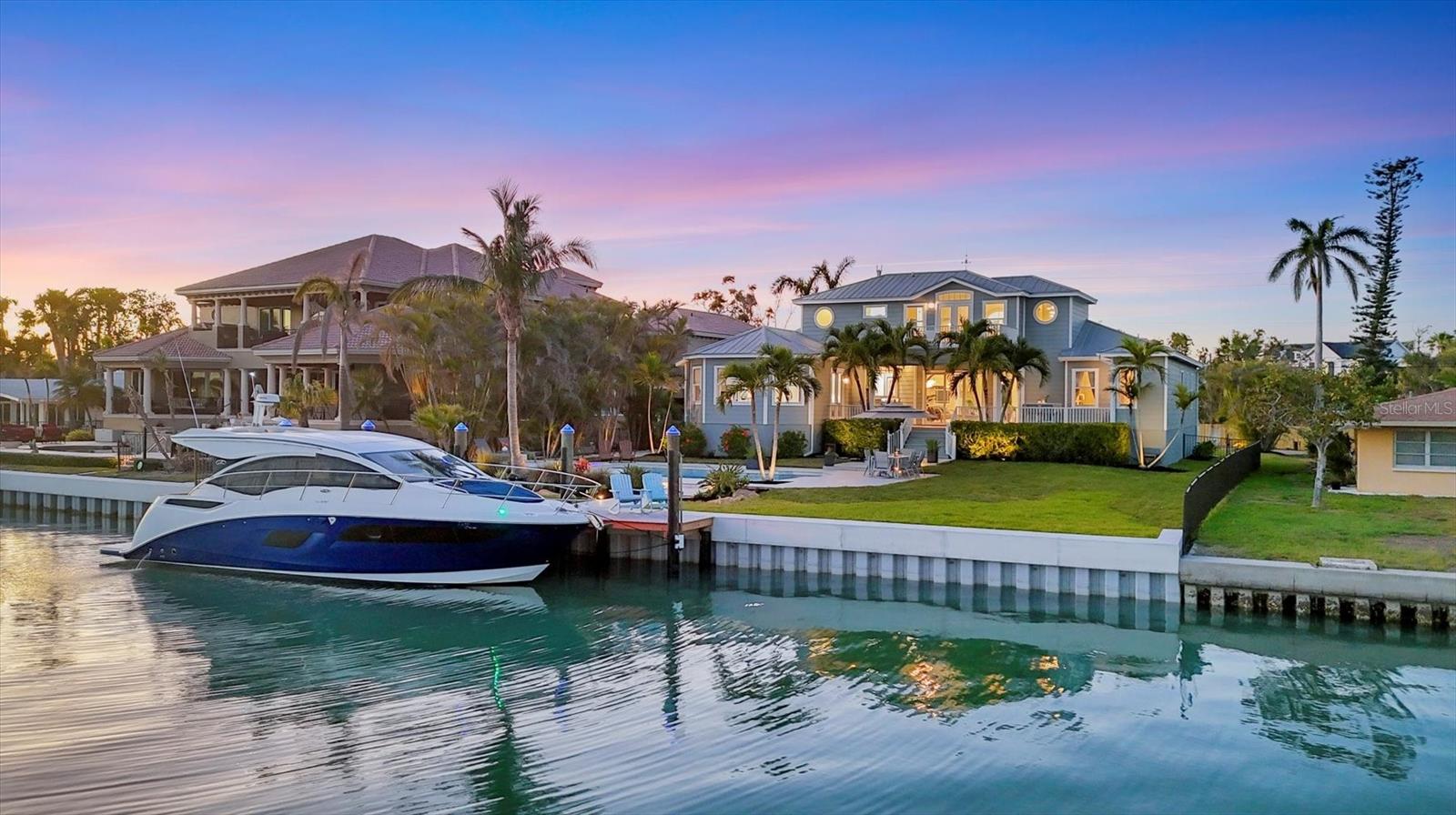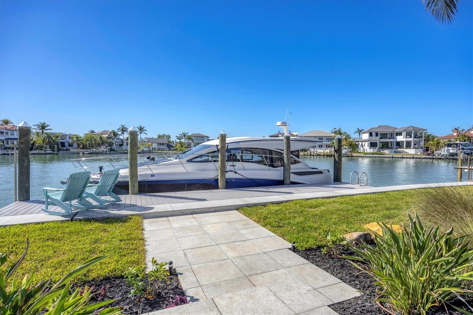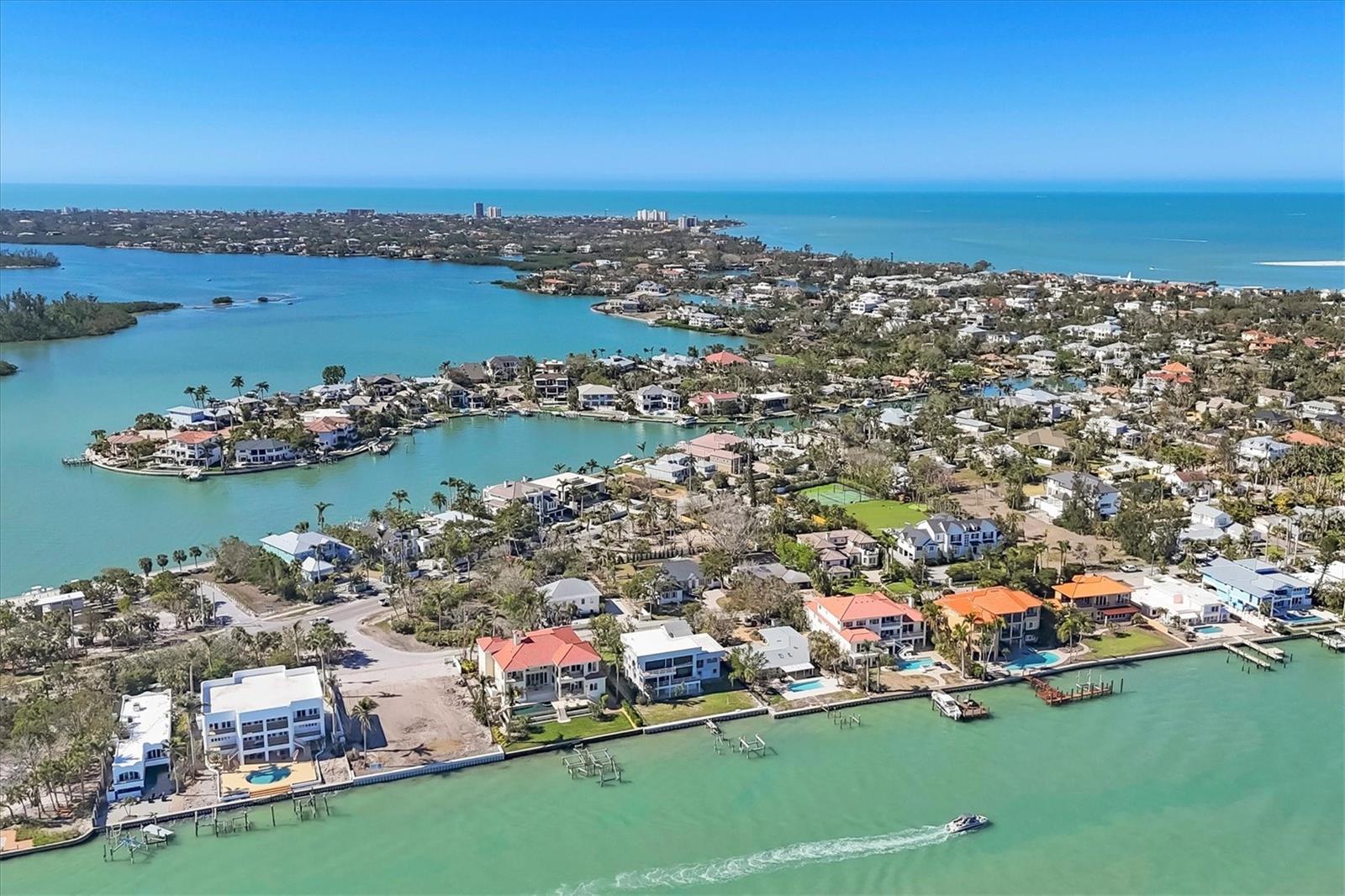 Under contract-accepting backup offers. Look no further. Welcome home to your coastal Siesta Key waterfront retreat, a boater’s dream come true. On the desired north end of Siesta Key, this four-bedroom, four-bath residence spans 4, 622 square feet of meticulously designed living space. Elevated above flood plain, the residence blends architectural craftsmanship with a premier waterfront lifestyle. Directly on the Intracoastal Waterway with no fixed bridges, the property offers swift access to Big Pass and open Gulf waters. The dock presents panoramic bay views and a new 95-foot seawall with a 40-foot slip equipped with power, water and solar lit pilings, ideal for boating or serene sunrise and sunset viewing. The outdoor experience is elevated by a heated saltwater pool and spa, complete with smart controls, waterfall features and porcelain shellstone decking. Inside, a gourmet kitchen centers the home, featuring a Sub-Zero refrigerator, six-burner Dacor gas range with stainless vent hood, Advantium microwave-convection oven, wine refrigerator, wet bar, soft-close cabinetry with glass uppers, decorator granite surfaces, expansive island and illuminated custom cabinetry. The open-concept family room showcases a cathedral ceiling with sweeping bay vistas, creating a striking indoor-outdoor connection. The expansive primary suite features a private waterfront balcony, new carpet, custom walk-in closet and a spa-style en-suite with a deep soaking tub, frameless rain shower, and dual vanities. Two guest bedrooms are on the first floor, including a rear en-suite with a private entrance that also serves as a dedicated pool bath. A bonus room used as a game and fitness space offers flexible potential and can easily be converted into a fourth bedroom. This residence is within the city limits, allowing for potential short-term rental income, making it an attractive opportunity for personal enjoyment and investment. Additional highlights include hurricane-impact windows and doors, Hunter Douglas custom treatments, crown molding, Brazilian cherry wood flooring and refined interior finishes throughout. Professionally landscaped grounds with new sod, an irrigation system and hardscape pathways complete the setting. Minutes from Siesta Key Beach and Village and a short drive to Southside Village and downtown Sarasota, this residence merges waterfront access with design, privacy and location, offering a rare opportunity to own a premier property on Florida’s Gulf Coast. Click on the fly-through video and Matterport walk-through for more images. Live where every day feels like a resort vacation, make it come true!