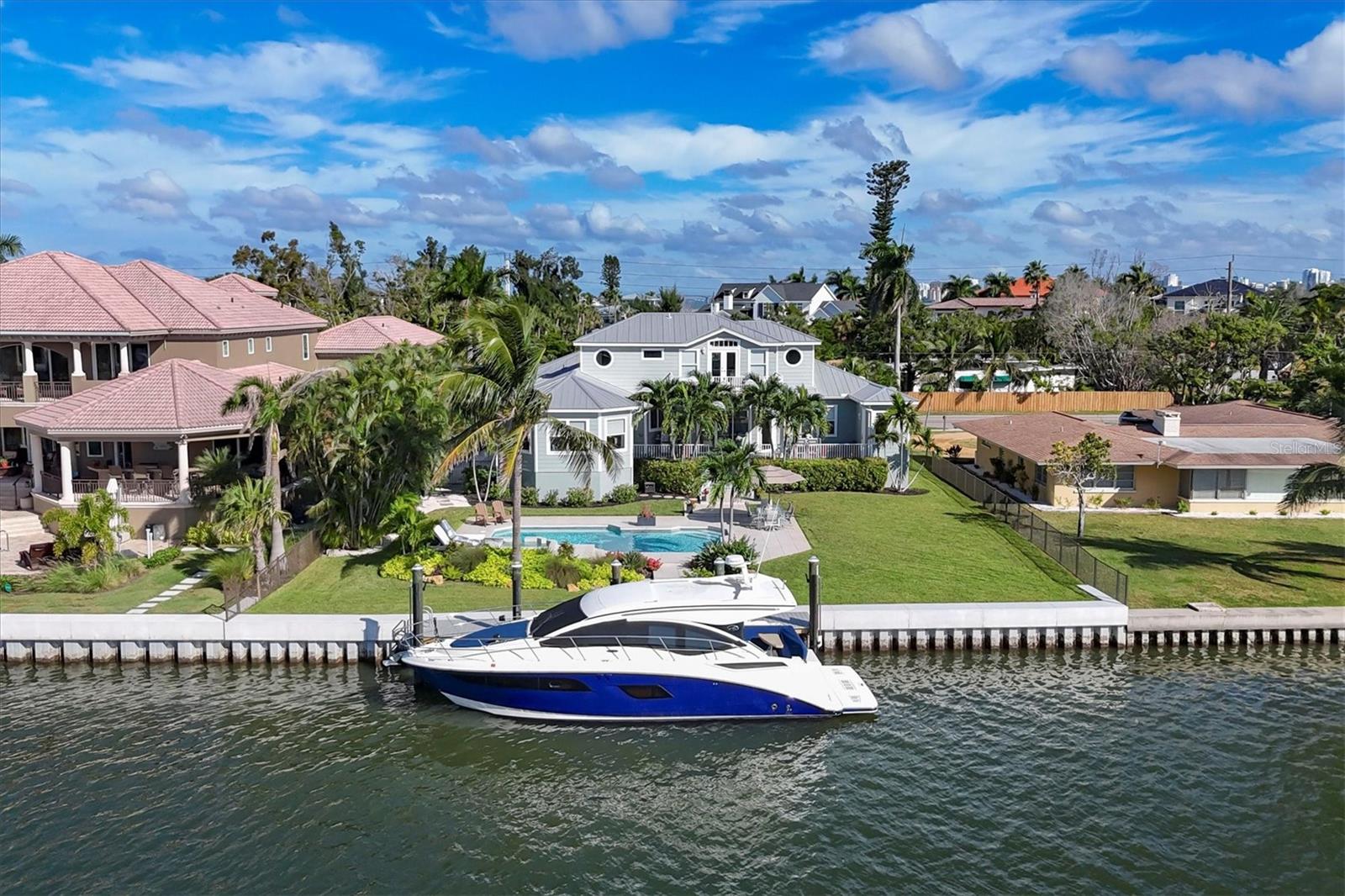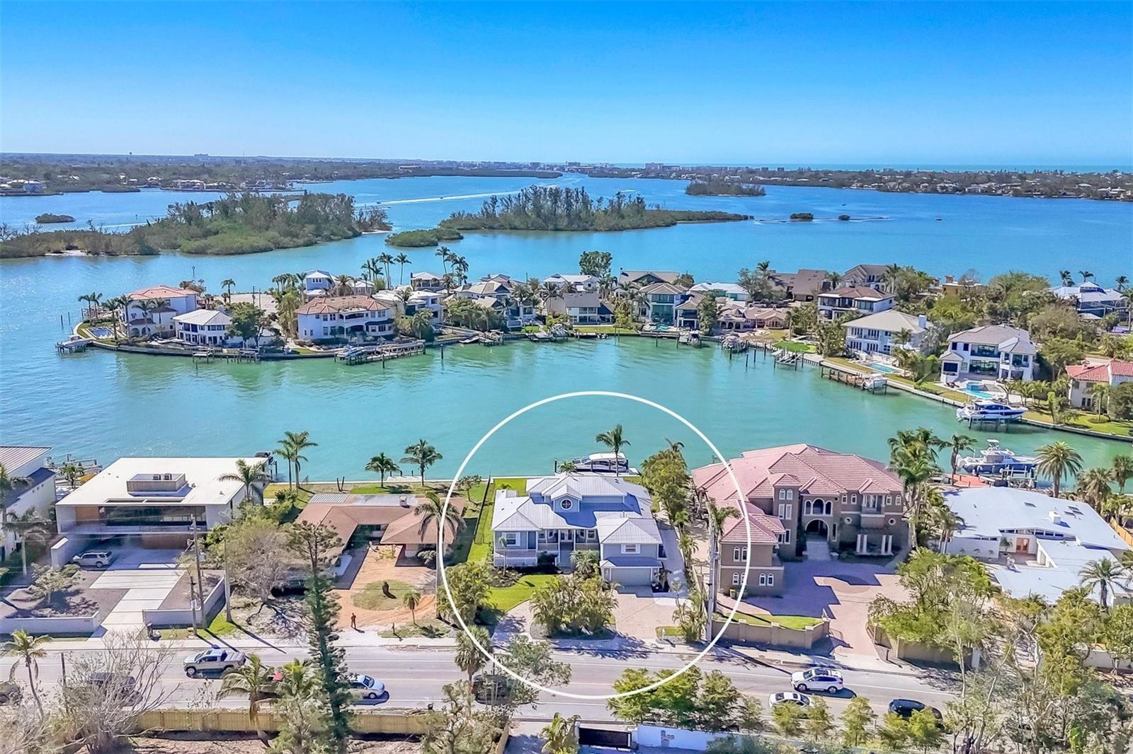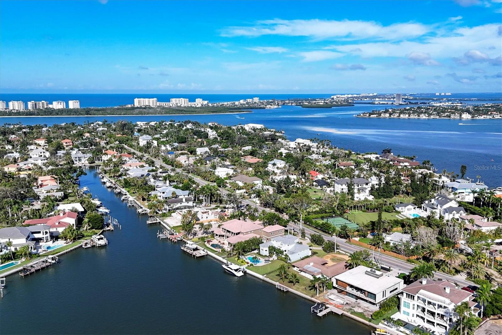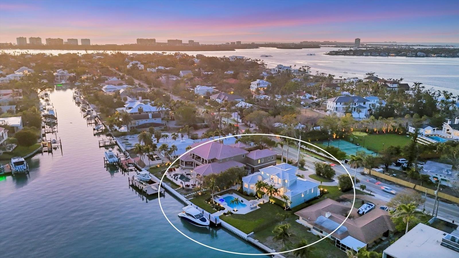 Under contract-accepting backup offers. Look no further. Welcome home to your coastal Siesta Key waterfront retreat, a boater’s dream come true. On the desired north end of Siesta Key, this four-bedroom, four-bath residence spans 4, 622 square feet of meticulously designed living space. Elevated above flood plain, the residence blends architectural craftsmanship with a premier waterfront lifestyle. Directly on the Intracoastal Waterway with no fixed bridges, the property offers swift access to Big Pass and open Gulf waters. The dock presents panoramic bay views and a new 95-foot seawall with a 40-foot slip equipped with power, water and solar lit pilings, ideal for boating or serene sunrise and sunset viewing. The outdoor experience is elevated by a heated saltwater pool and spa, complete with smart controls, waterfall features and porcelain shellstone decking. Inside, a gourmet kitchen centers the home, featuring a Sub-Zero refrigerator, six-burner Dacor gas range with stainless vent hood, Advantium microwave-convection oven, wine refrigerator, wet bar, soft-close cabinetry with glass uppers, decorator granite surfaces, expansive island and illuminated custom cabinetry. The open-concept family room showcases a cathedral ceiling with sweeping bay vistas, creating a striking indoor-outdoor connection. The expansive primary suite features a private waterfront balcony, new carpet, custom walk-in closet and a spa-style en-suite with a deep soaking tub, frameless rain shower, and dual vanities. Two guest bedrooms are on the first floor, including a rear en-suite with a private entrance that also serves as a dedicated pool bath. A bonus room used as a game and fitness space offers flexible potential and can easily be converted into a fourth bedroom. This residence is within the city limits, allowing for potential short-term rental income, making it an attractive opportunity for personal enjoyment and investment. Additional highlights include hurricane-impact windows and doors, Hunter Douglas custom treatments, crown molding, Brazilian cherry wood flooring and refined interior finishes throughout. Professionally landscaped grounds with new sod, an irrigation system and hardscape pathways complete the setting. Minutes from Siesta Key Beach and Village and a short drive to Southside Village and downtown Sarasota, this residence merges waterfront access with design, privacy and location, offering a rare opportunity to own a premier property on Florida’s Gulf Coast. Click on the fly-through video and Matterport walk-through for more images. Live where every day feels like a resort vacation, make it come true!